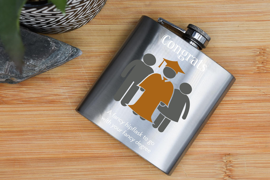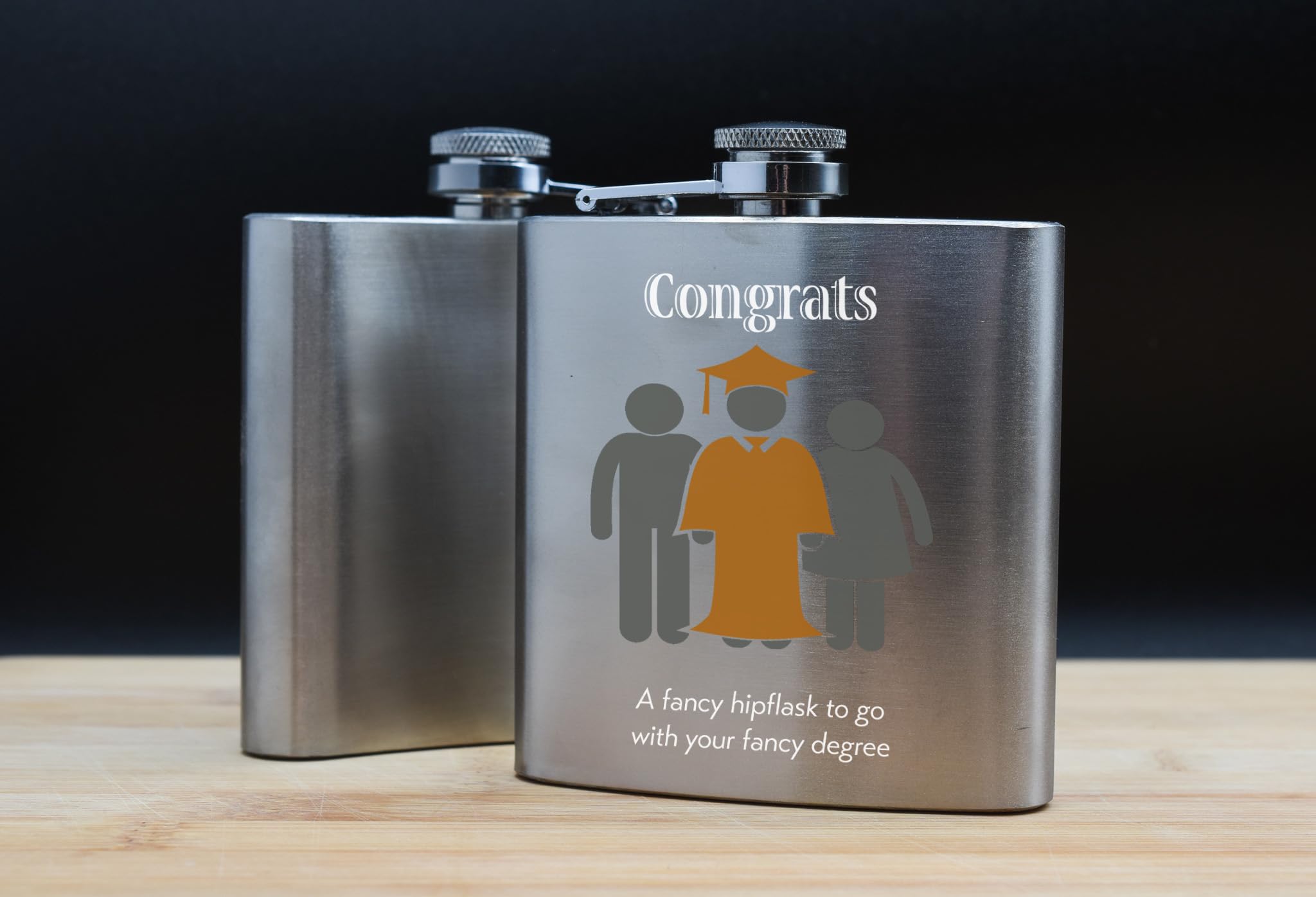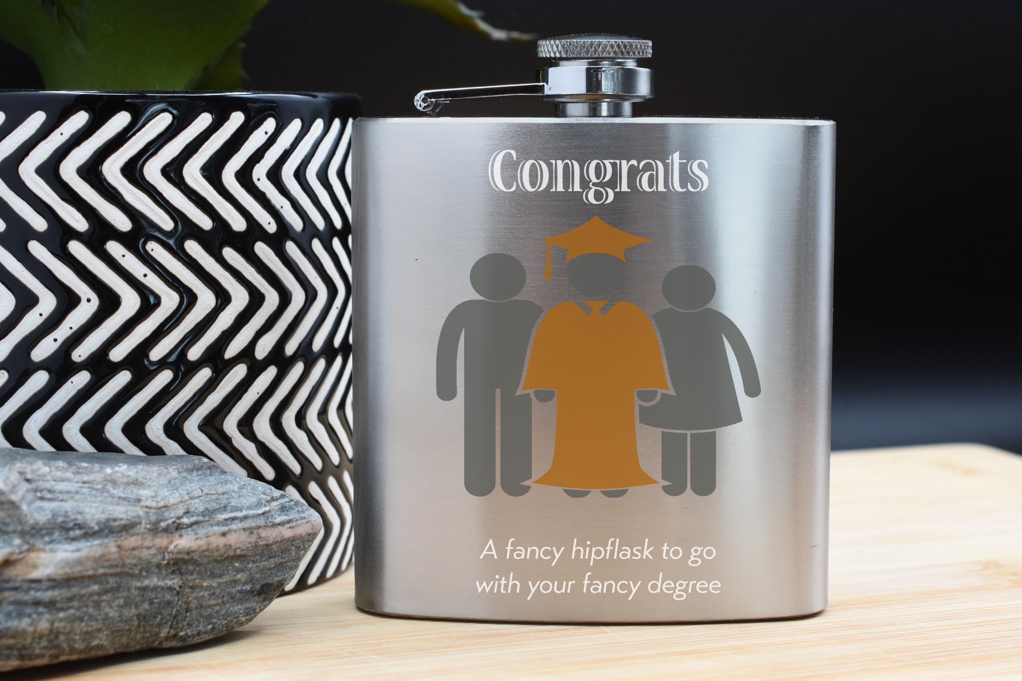 Celebrate your graduation in style with this Congrats! Full Colour Graduation Stainless Steel Hip Flask. Crafted with durable stainless steel, this hip flask is perfect for enjoying your favorite alcoholic beverages on the go. The flask features a full colour design that reads 'Congrats' to commemorate your fancy degree. It makes a great travel accessory and a thoughtful graduation gift. So, whether you prefer whiskey or any other spirit, grab this fancy flask and prioritise your whiskey time!