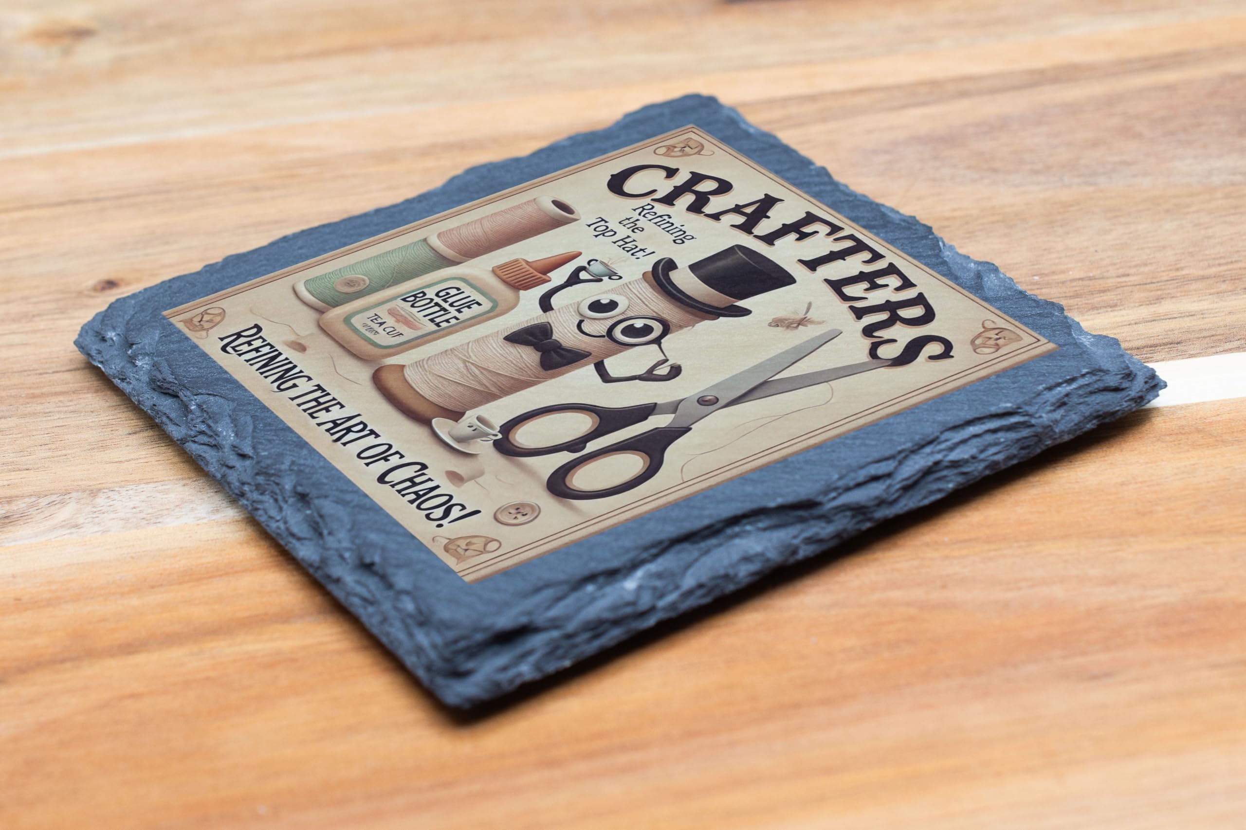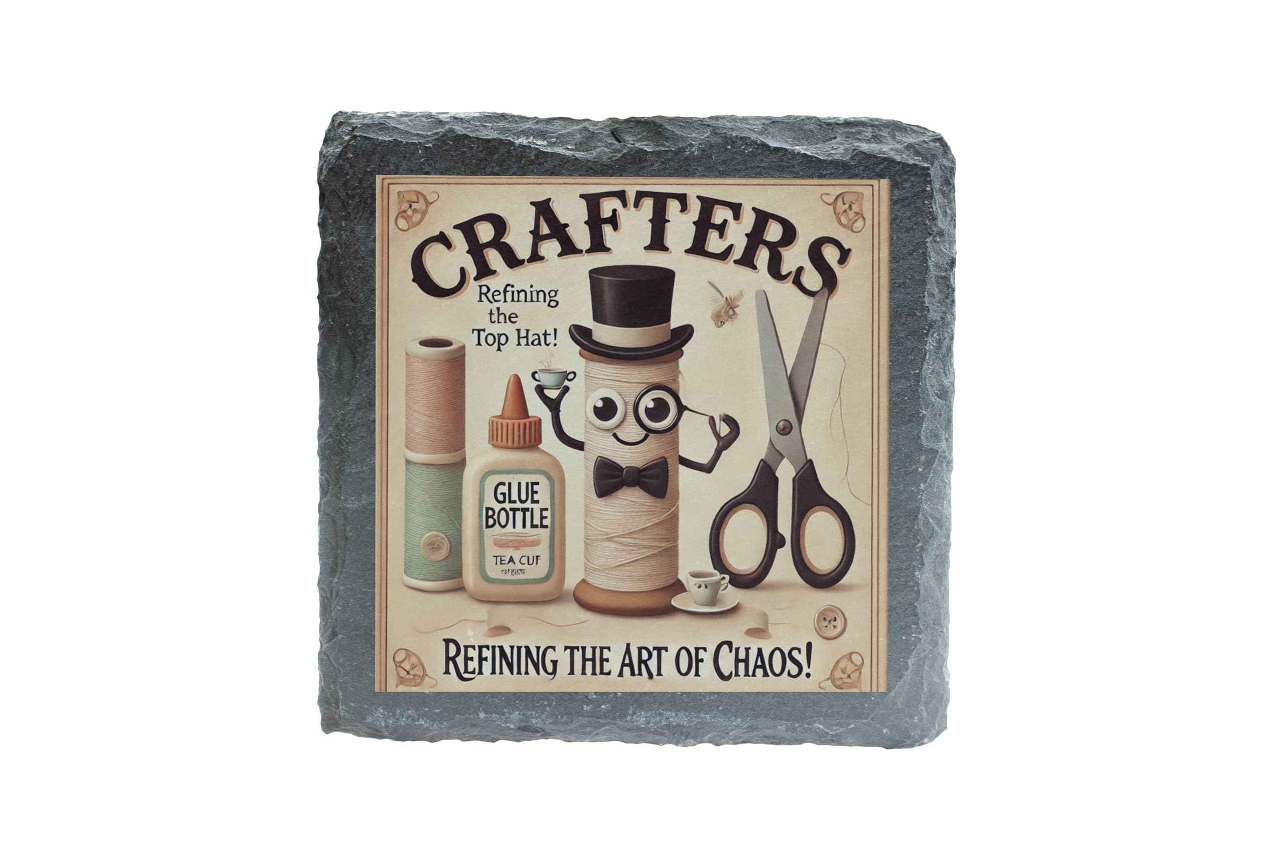 Celebrate the creativity and chaos of crafting with this delightful slate display, featuring a charming illustration of crafting tools brought to life. With its vintage-inspired design, this piece is perfect for adding a touch of whimsy to any crafter's workspace or home. Made from high-quality natural slate, this freestanding display offers a rustic and durable finish. Whether you?re gifting it to a crafty friend or decorating your own space, this slate plaque captures the essence of the artistic process ? refined chaos at its finest!