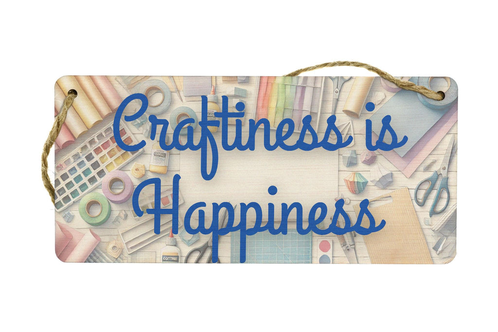 - Inspiring quote 'Craftiness is Happiness' to promote creative expression and happiness