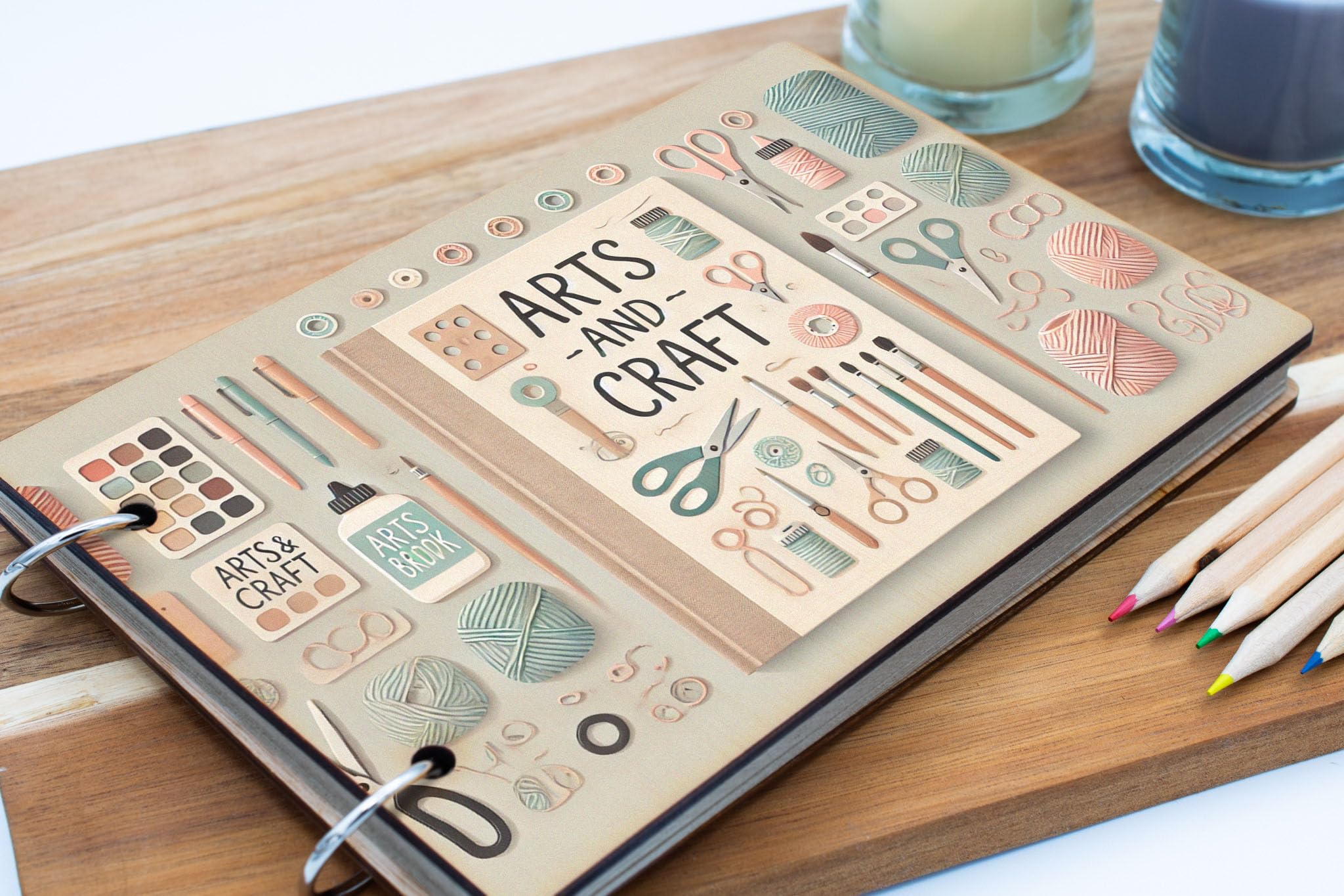 - Wooden cover adds a rustic touch to your craftwork