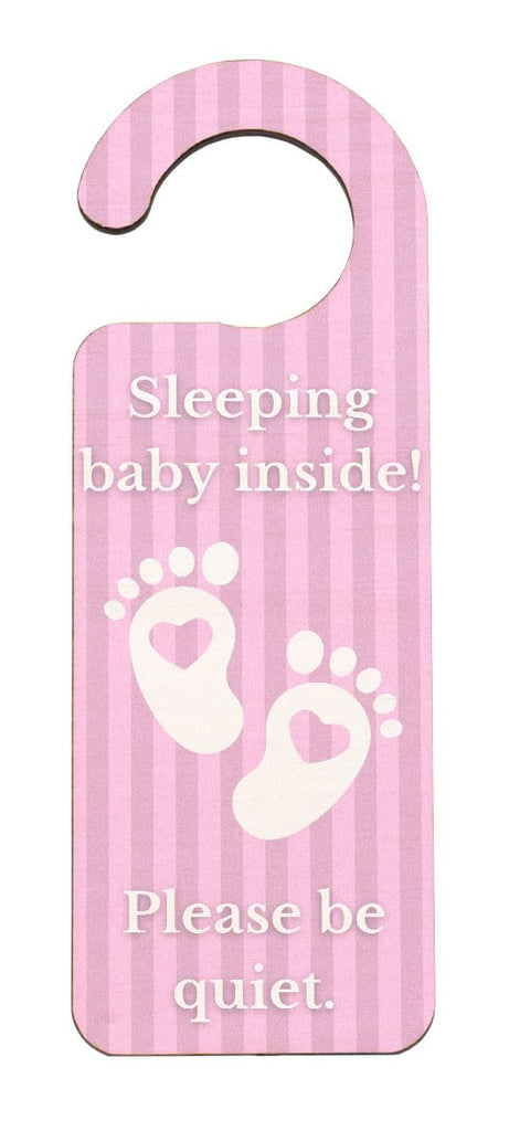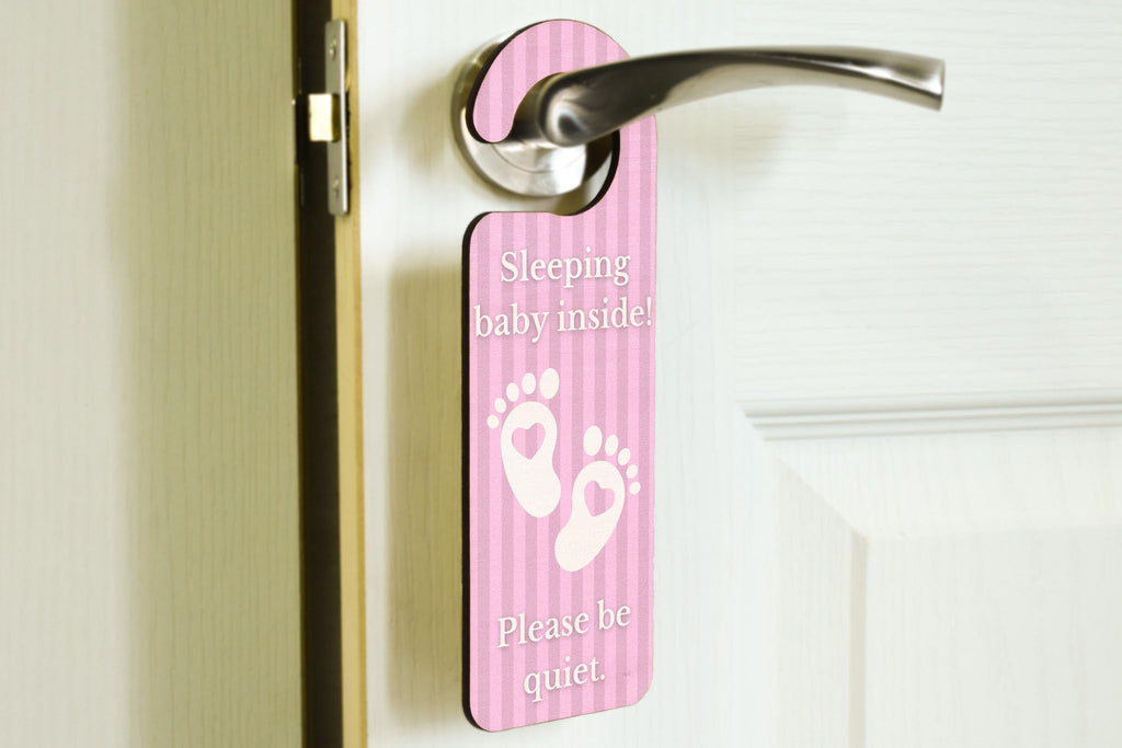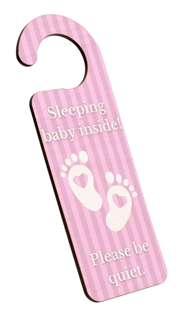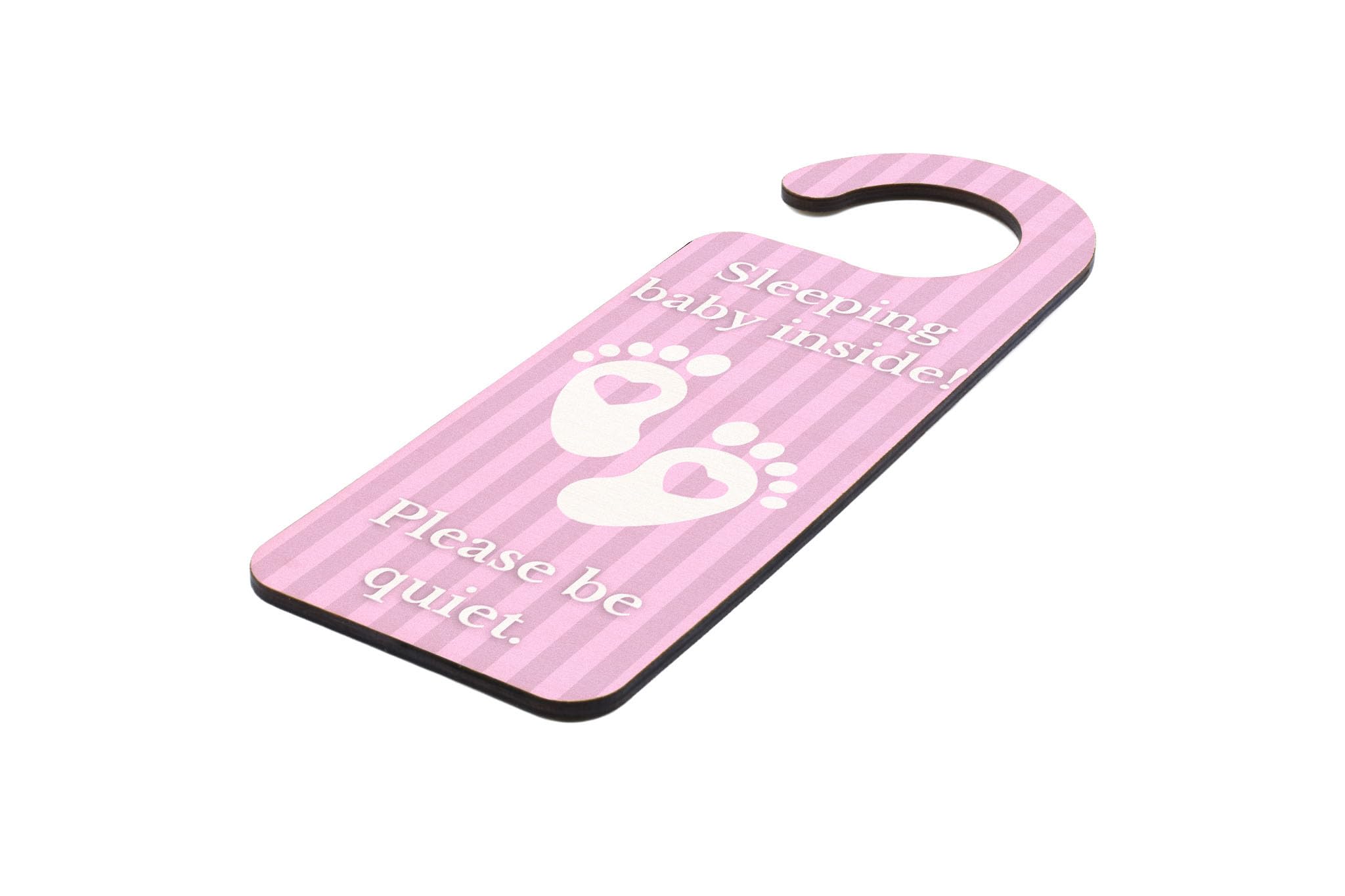 Introducing our Cute Pink Baby Sleeping Door Sign for New Parents! This adorable nursery door accessory is the perfect novelty item for new parents who want to create a quiet zone for their little one. The Baby Sleeping Door Sign is a must-have baby room door hanger to alert visitors to the fact that the baby is having a peaceful nap time. Made of quality stainless steel, this baby safety door accessory features a UV printed design that reads 'sleeping baby inside - please be quiet'. Add a touch of cute nursery decor to your infant's room with this full-colour novelty bottle opener showing a cute pink baby themed design. Prioritise your baby's sleep and create a quiet environment with our Cute Pink Baby Sleeping Door Sign!