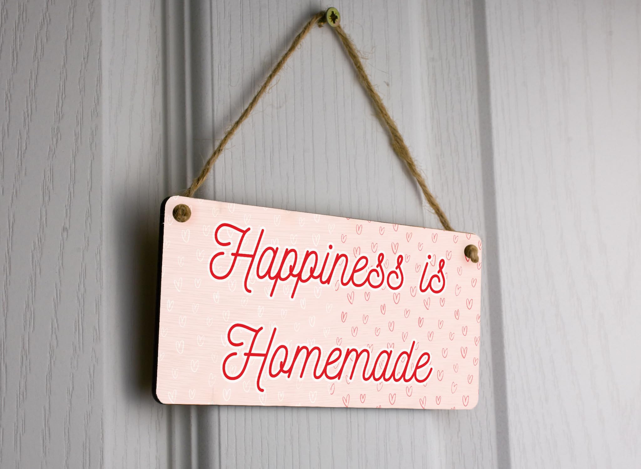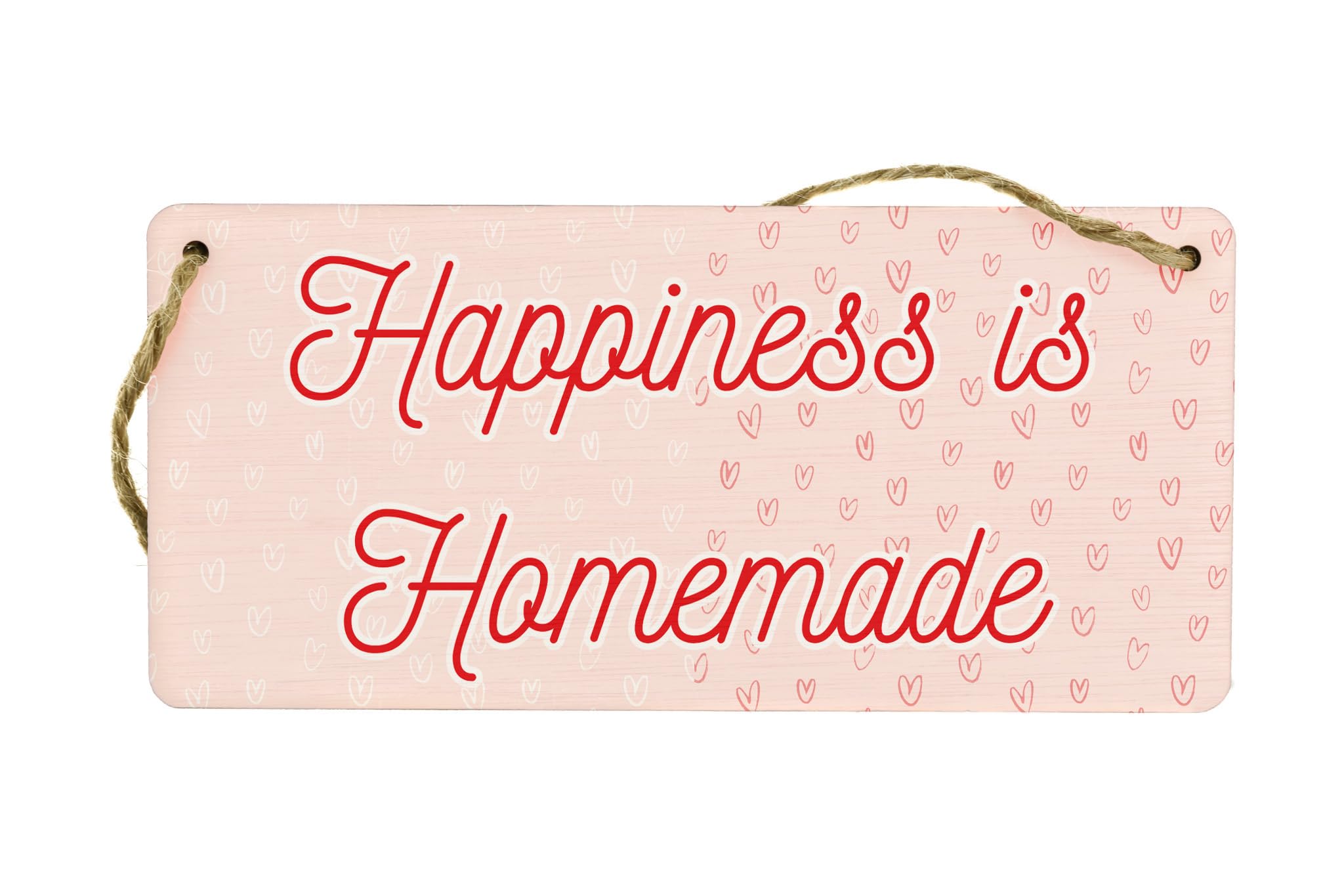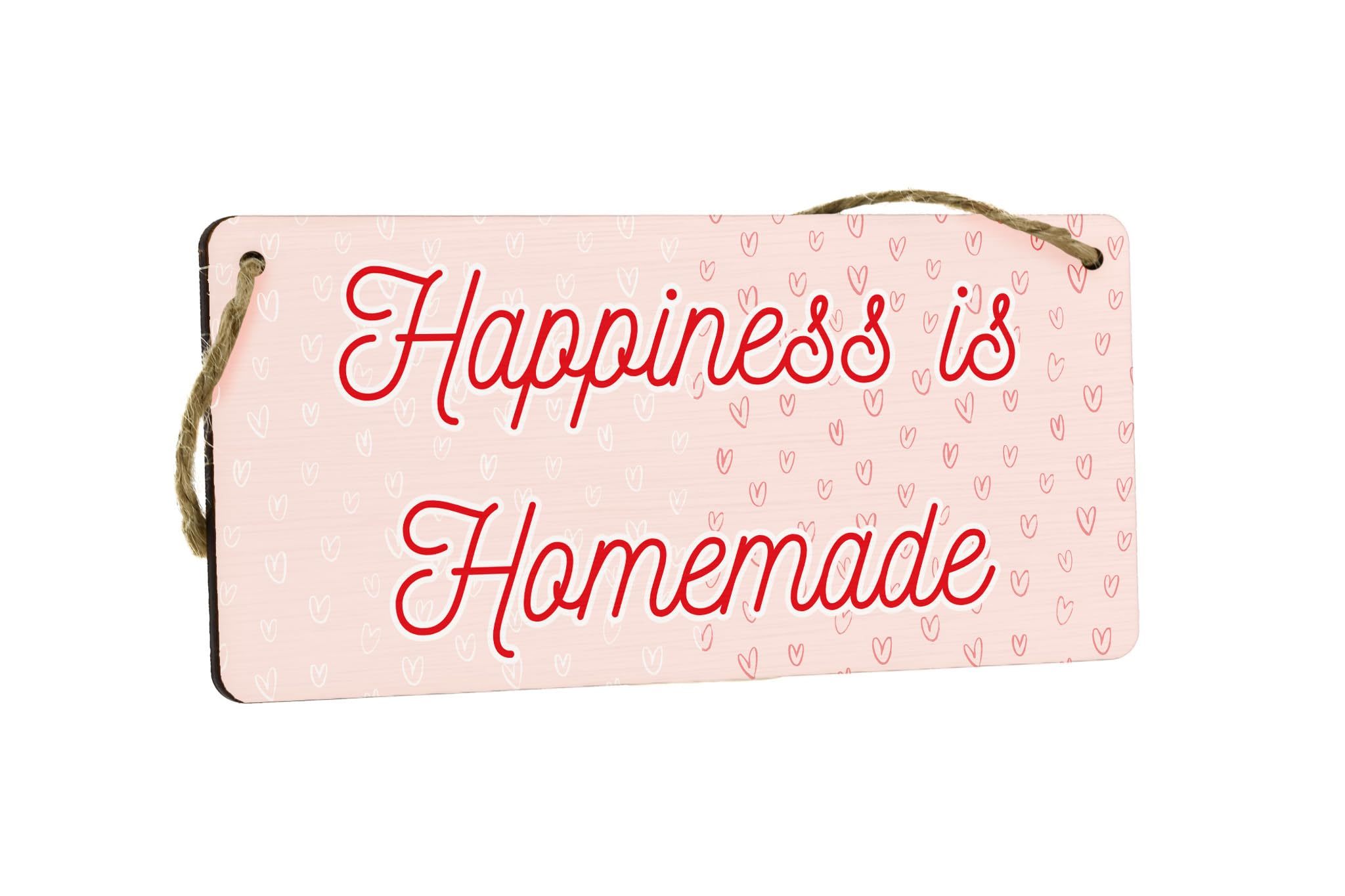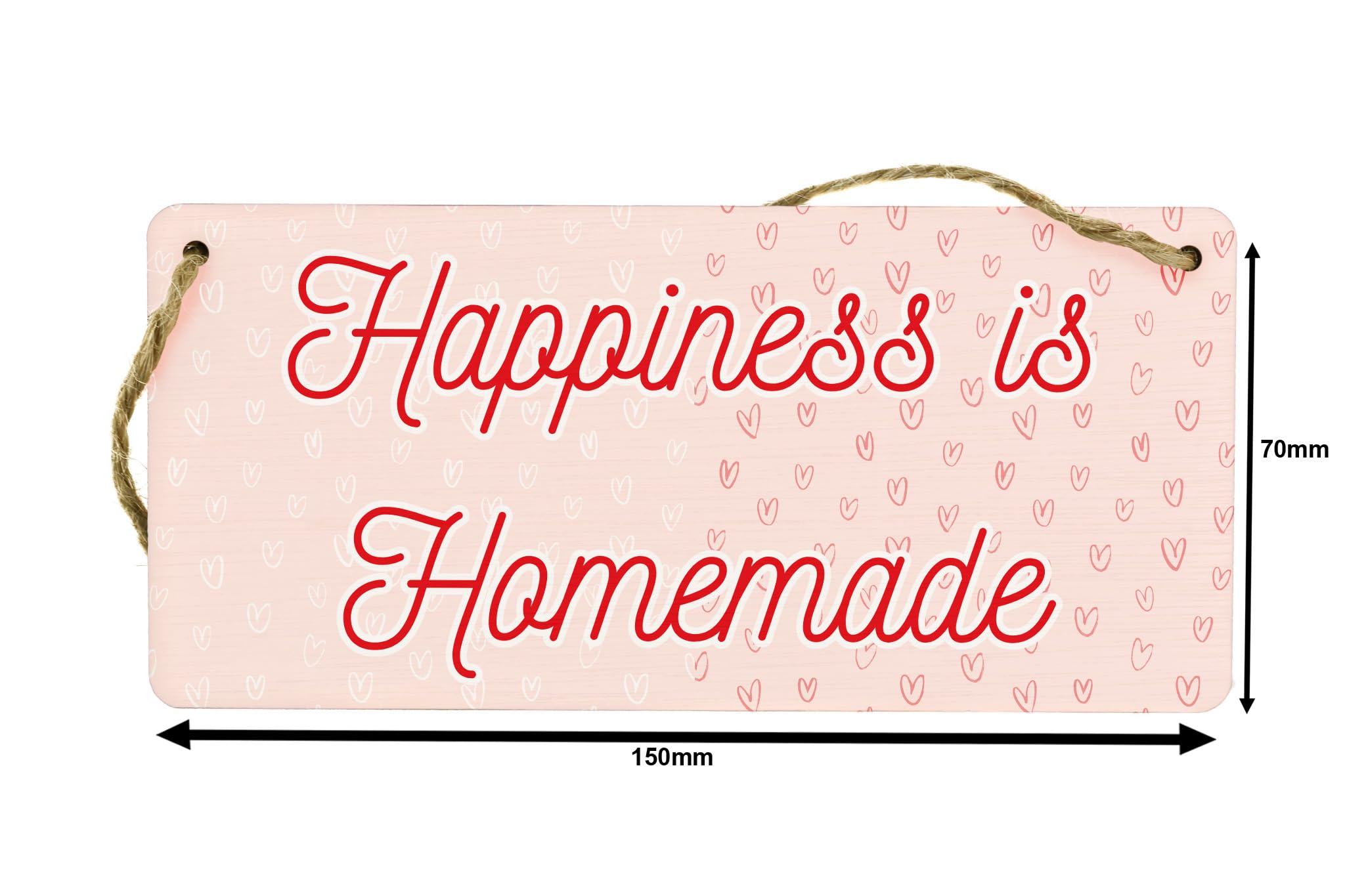 - Reads 'Happiness is Homemade' - a heartfelt message that brings joy to your home
