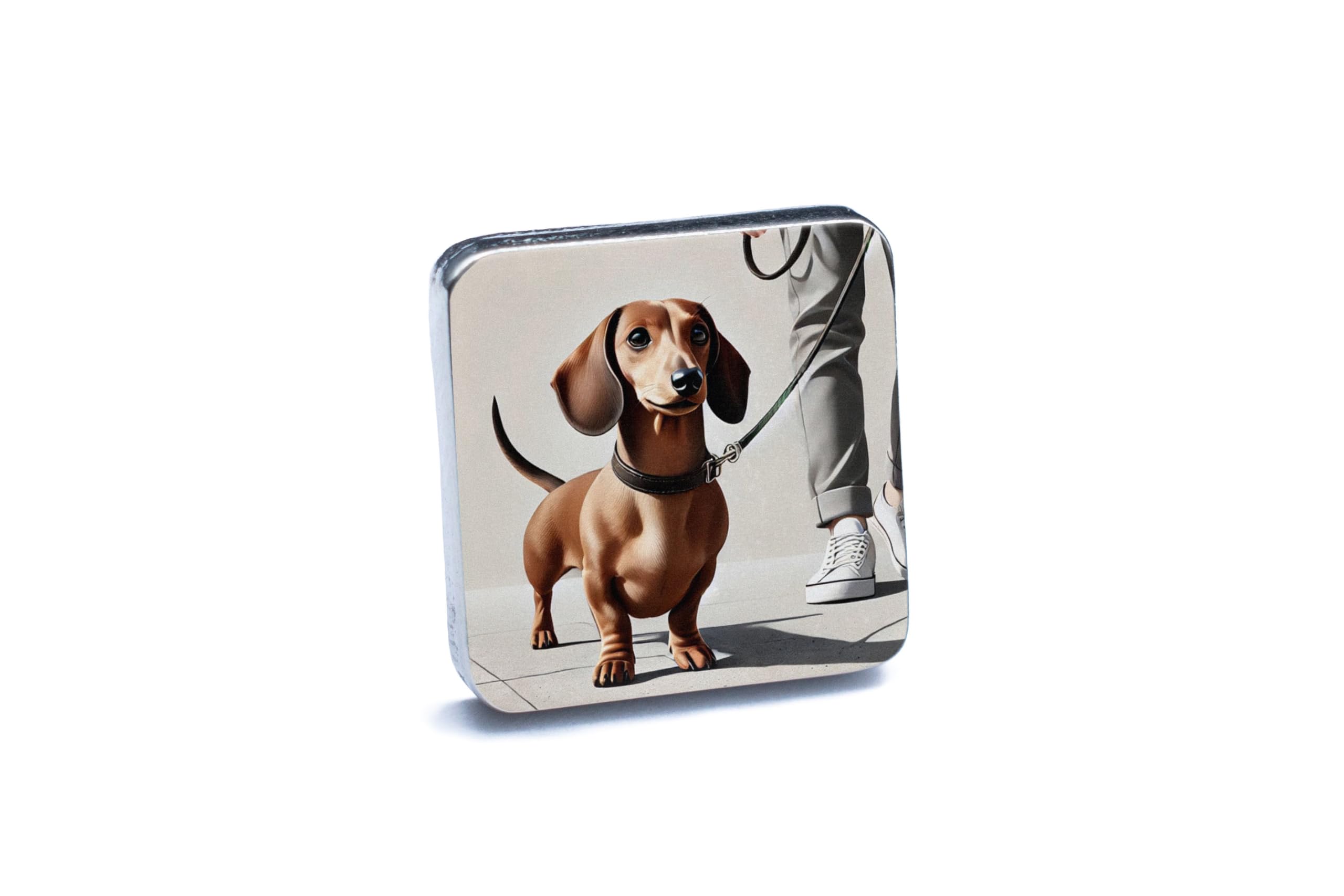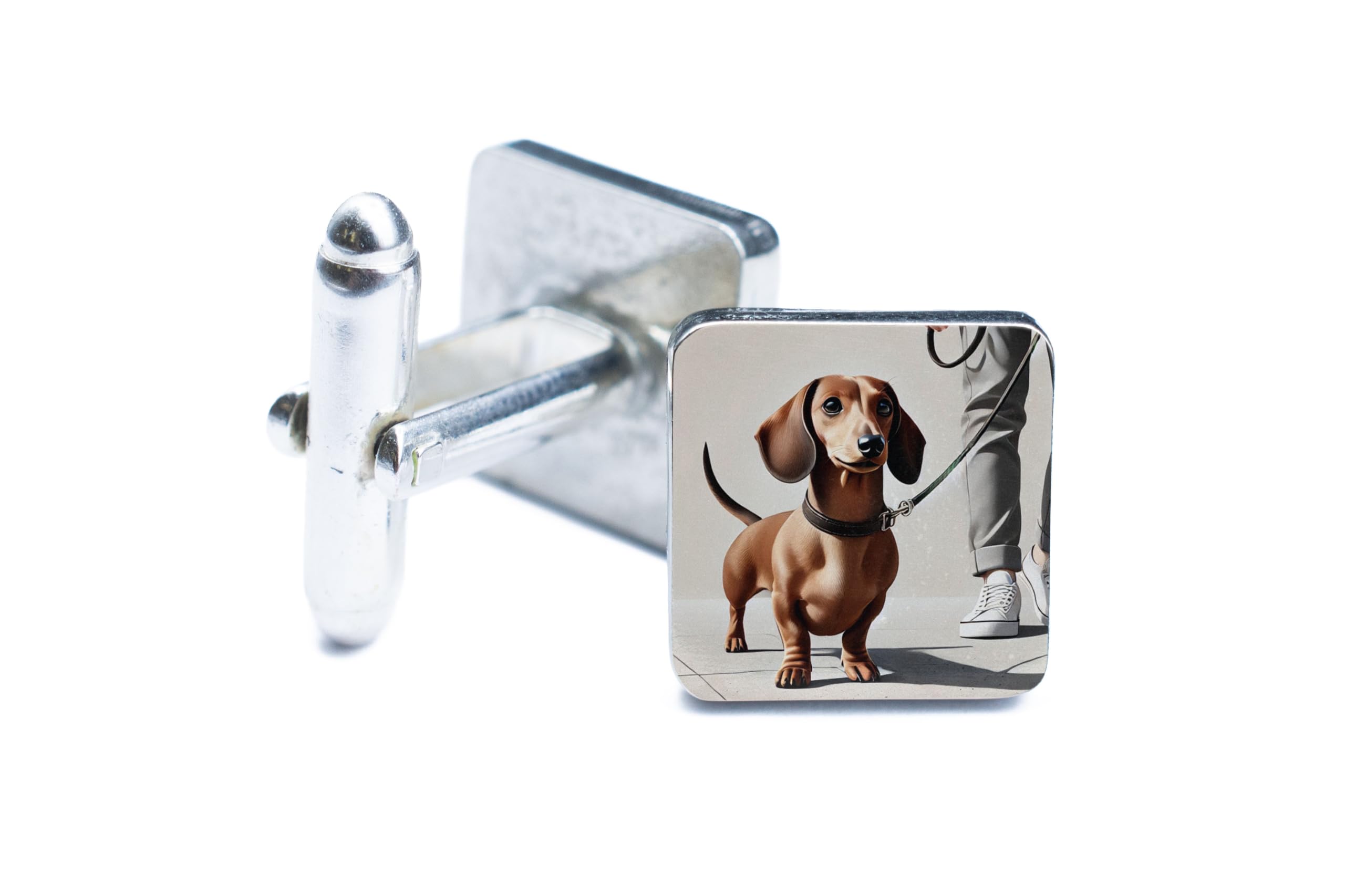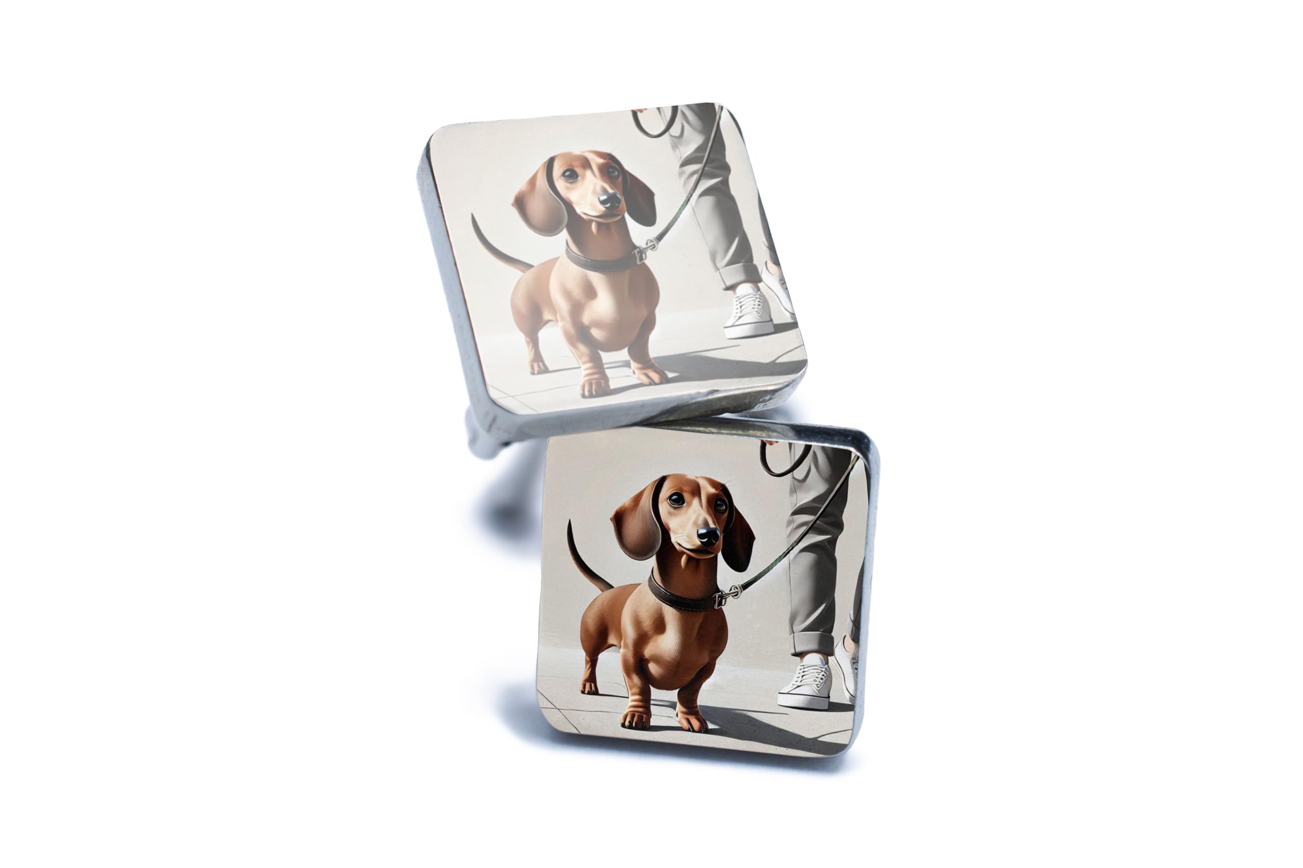 Celebrate your love for dogs with these delightful Dachshund walking cufflinks. The design showcases a cheerful Dachshund on a walk, beautifully capturing the essence of joy and companionship that dogs bring to our lives. The polished silver finish ensures a sophisticated look, making these cufflinks a standout accessory for any formal or semi-formal occasion. Crafted with attention to detail and durability, these cufflinks are perfect for dog lovers and pet owners looking to express their passion in a stylish way. Whether you?re attending a business meeting, a wedding, or simply want to add a unique touch to your outfit, these cufflinks are the perfect accessory. Presented in a stylish gift box, they make an excellent gift for Dachshund enthusiasts or anyone who appreciates the charm of our furry friends. Add a playful yet elegant flair to your wardrobe with these Dachshund-themed cufflinks!
