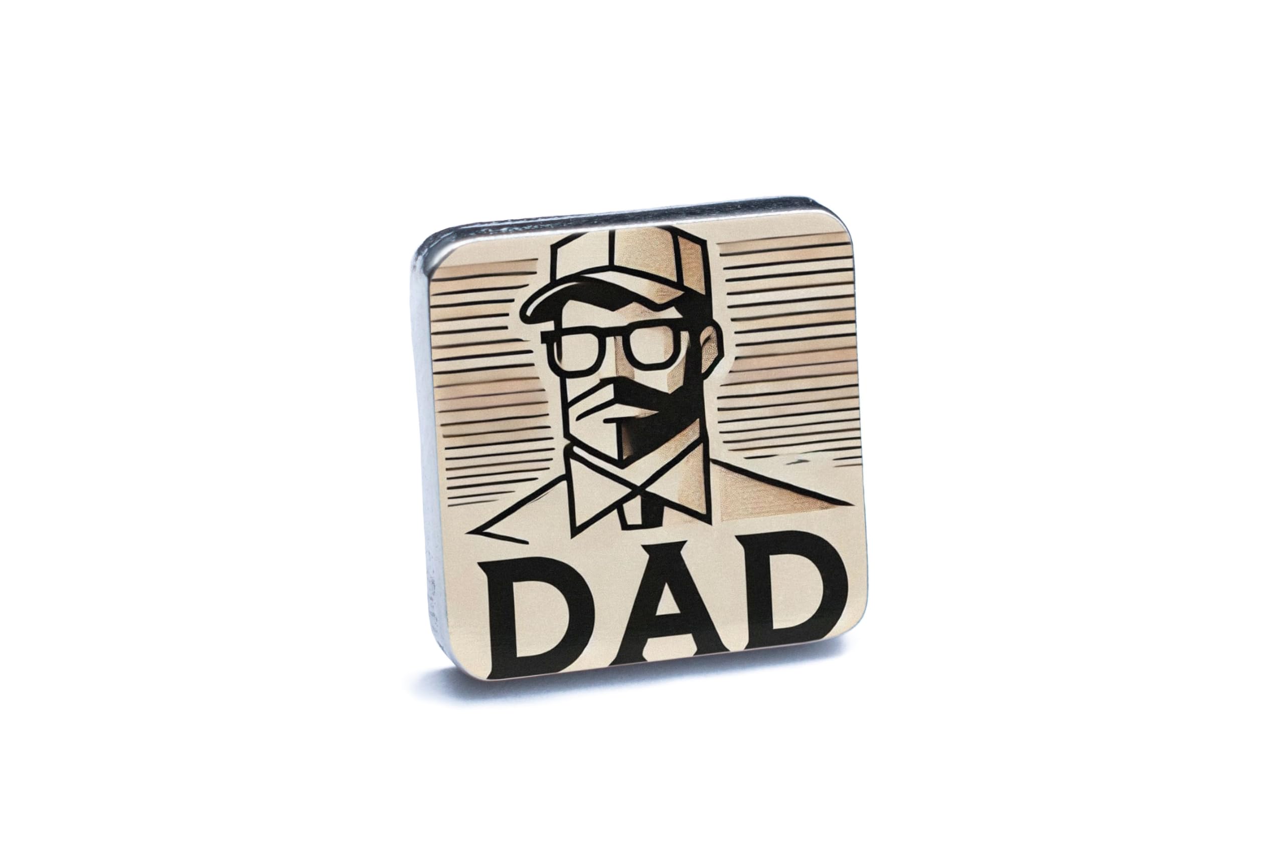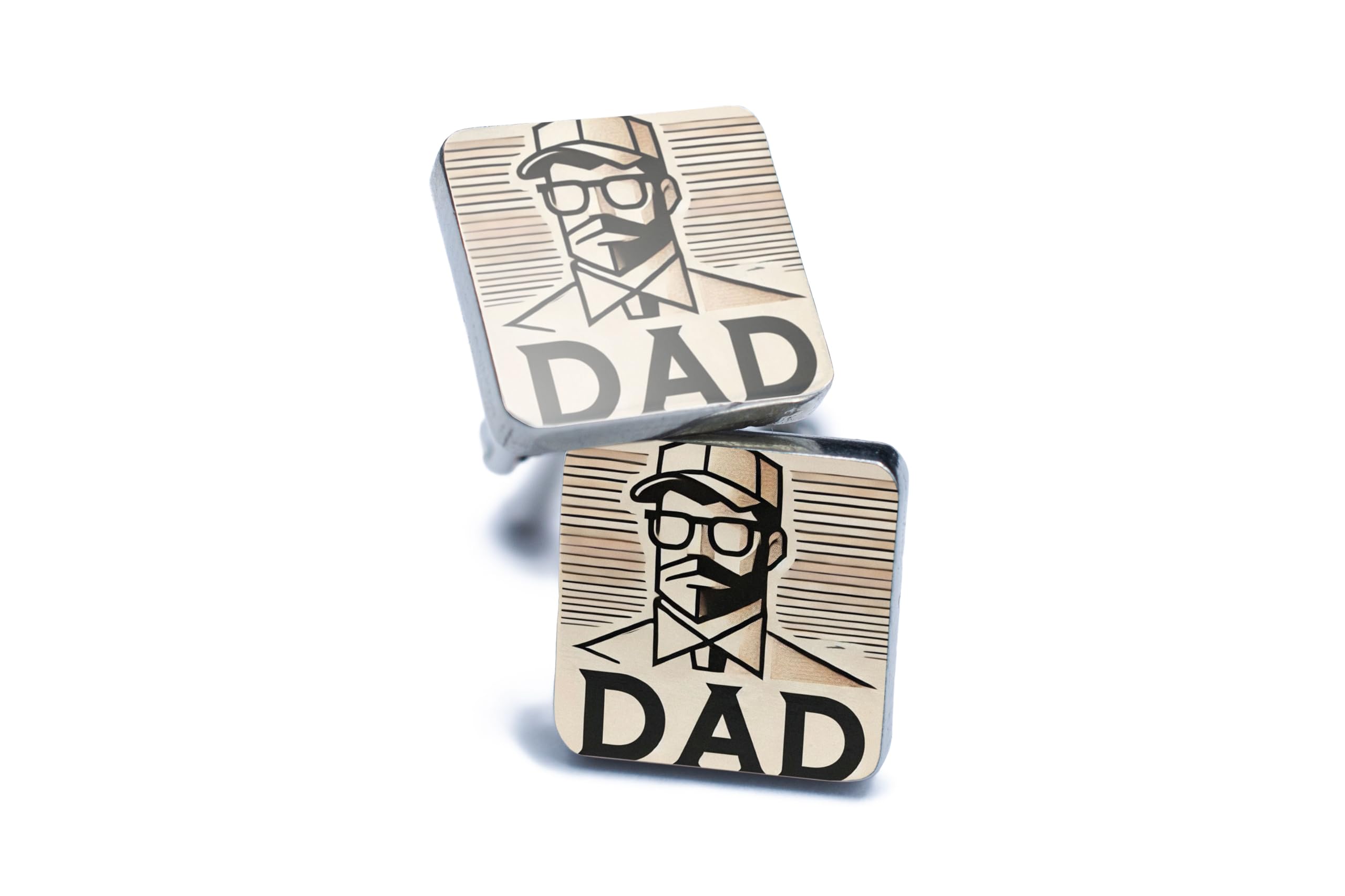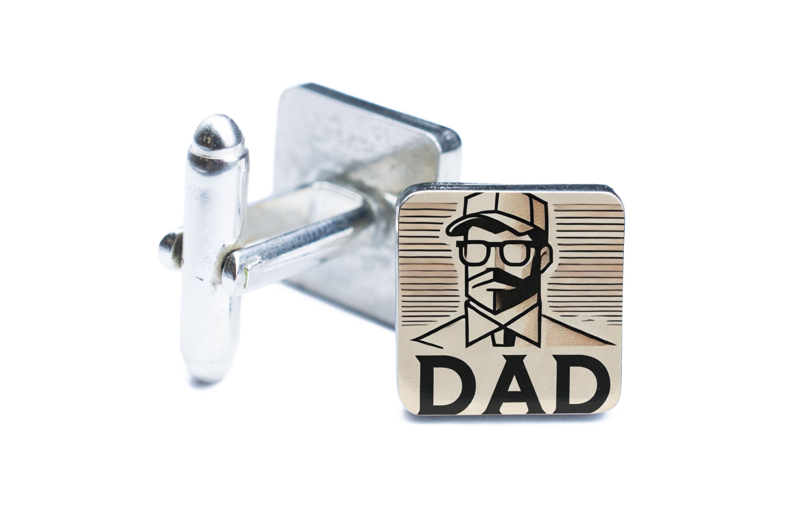 Celebrate your dad with these unique and stylish "Dad" cufflinks. Featuring a bold retro-inspired illustration of a dad wearing glasses, a cap, and a tie, these cufflinks are a perfect way to showcase your love and appreciation. The polished silver finish enhances the sophisticated and modern design, making them ideal for formal occasions or casual celebrations. Crafted with precision and attention to detail, these cufflinks are built to last while adding a meaningful and personal touch to your dad's wardrobe. Whether worn at family gatherings, special events, or simply to brighten his day, these cufflinks make a memorable accessory. Packaged in a sleek gift box, they?re ready to delight your dad for Father?s Day, birthdays, or any special occasion. Show your dad how much he means to you with these thoughtful and stylish cufflinks!