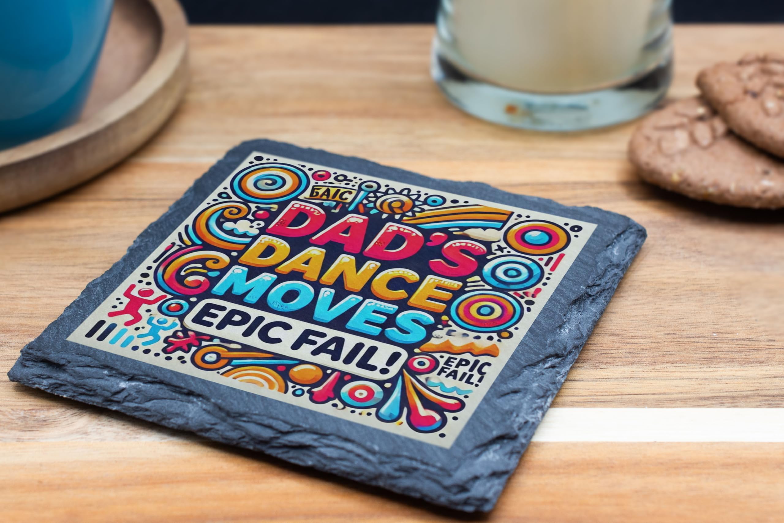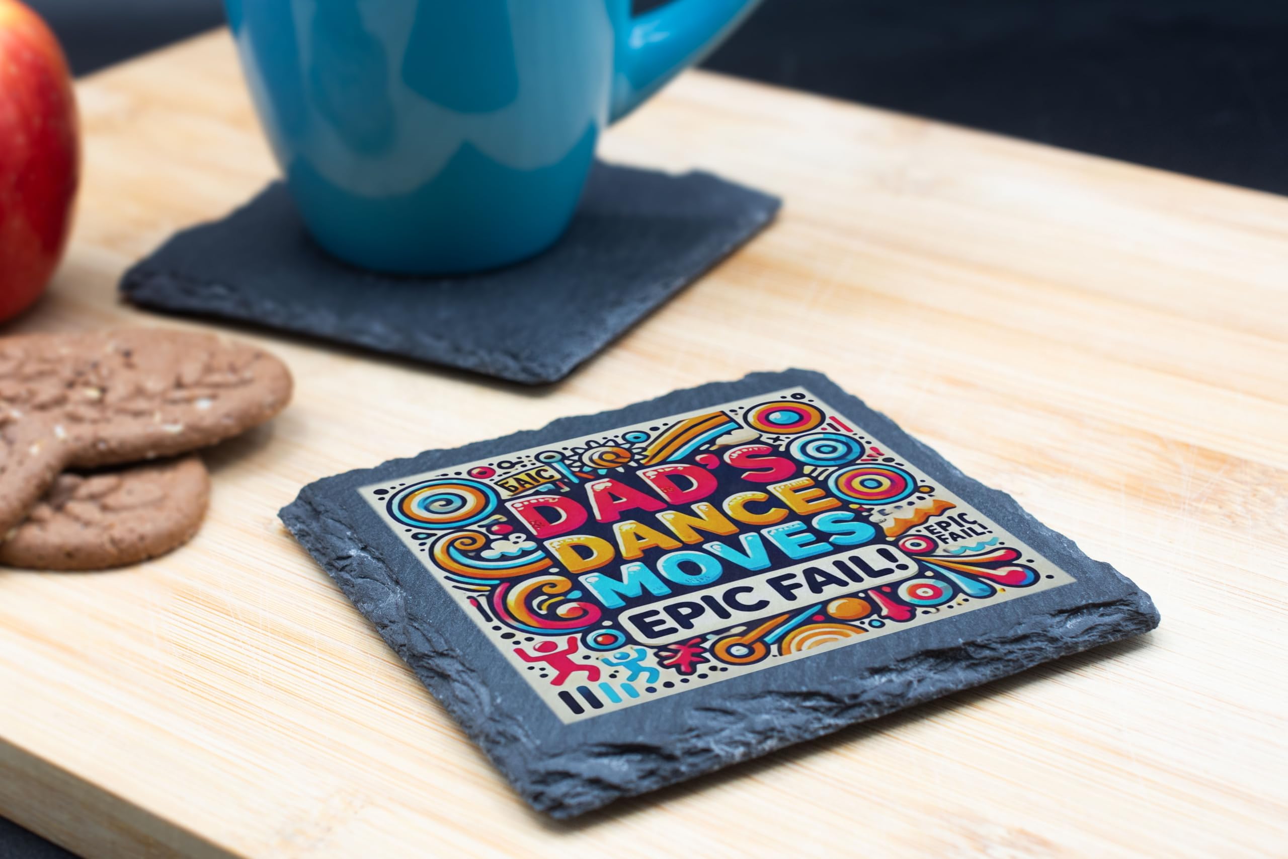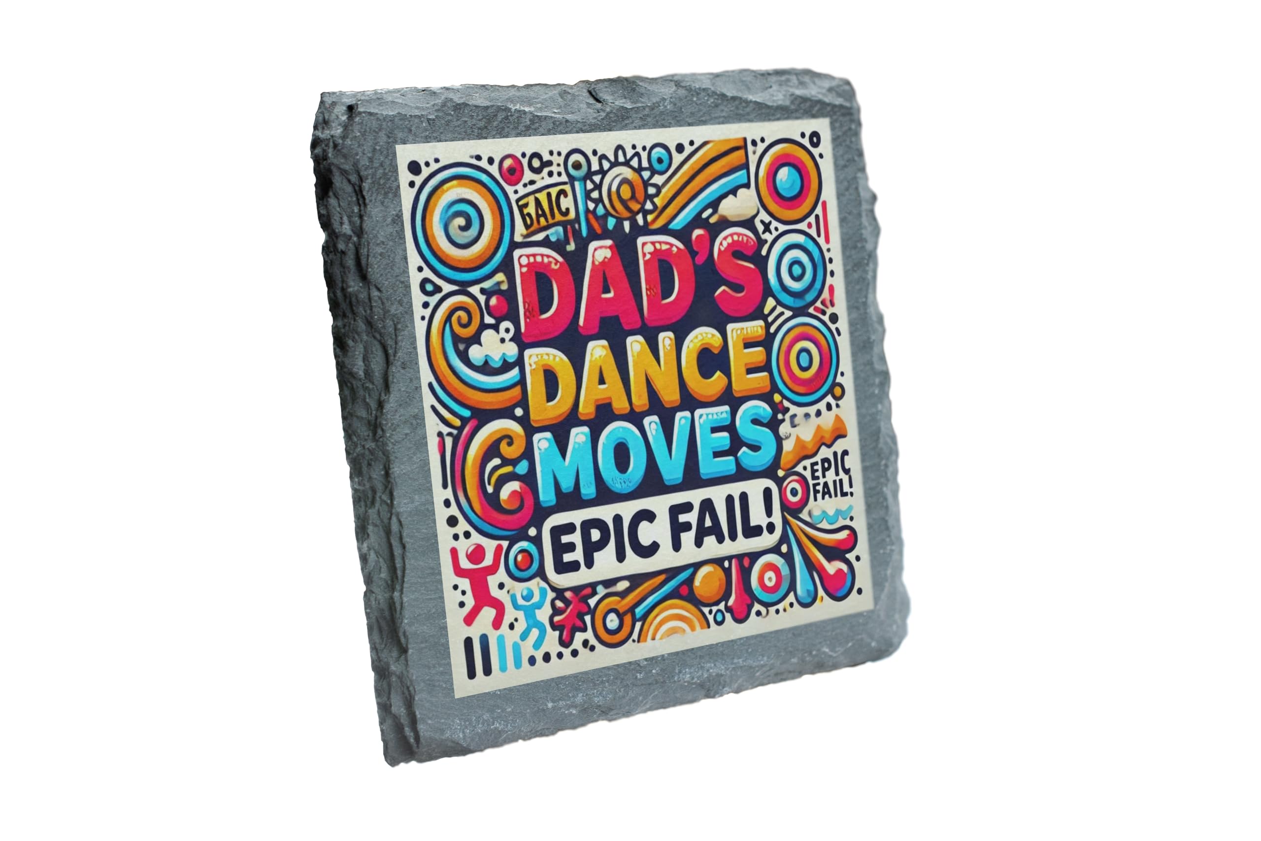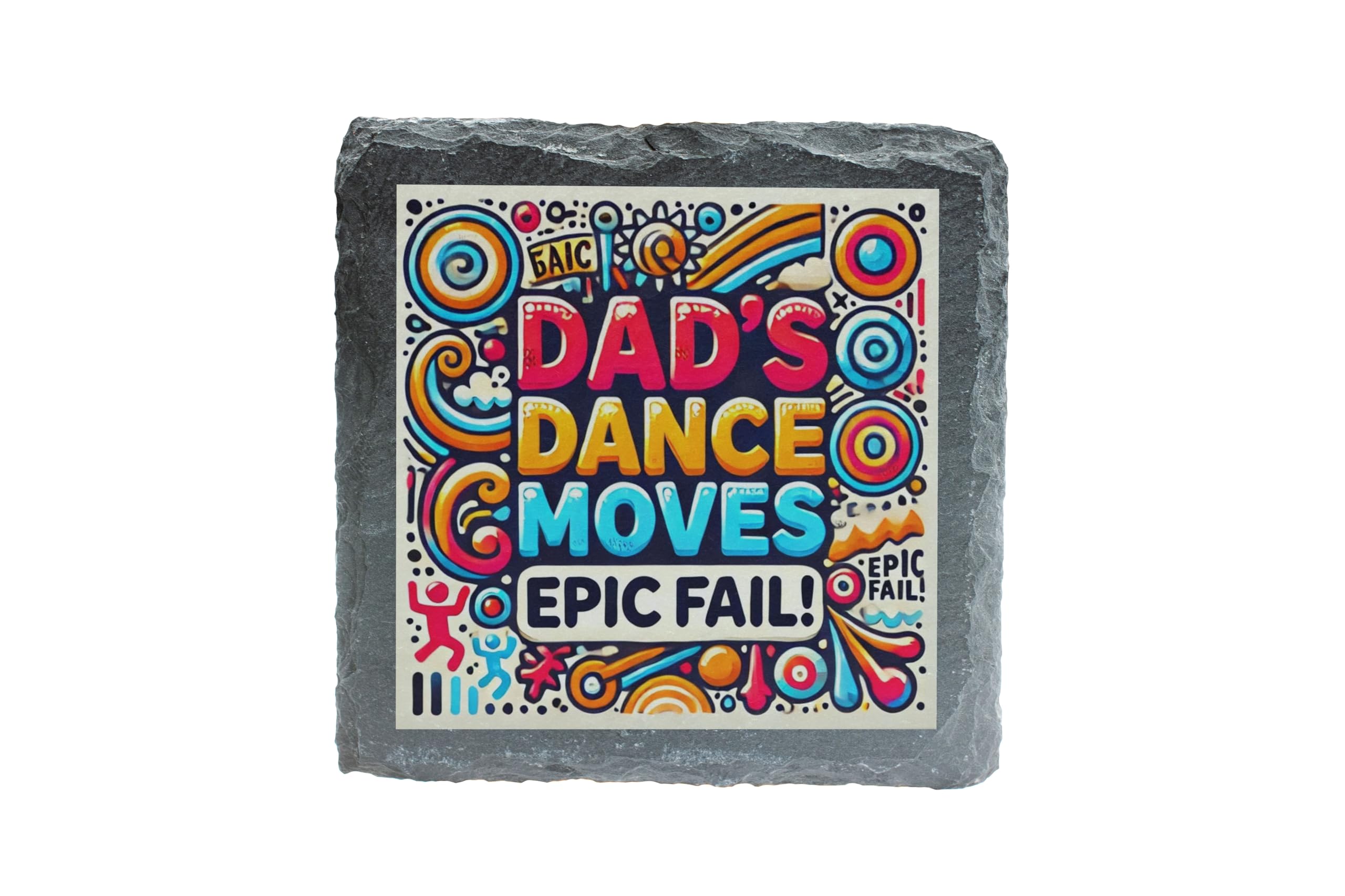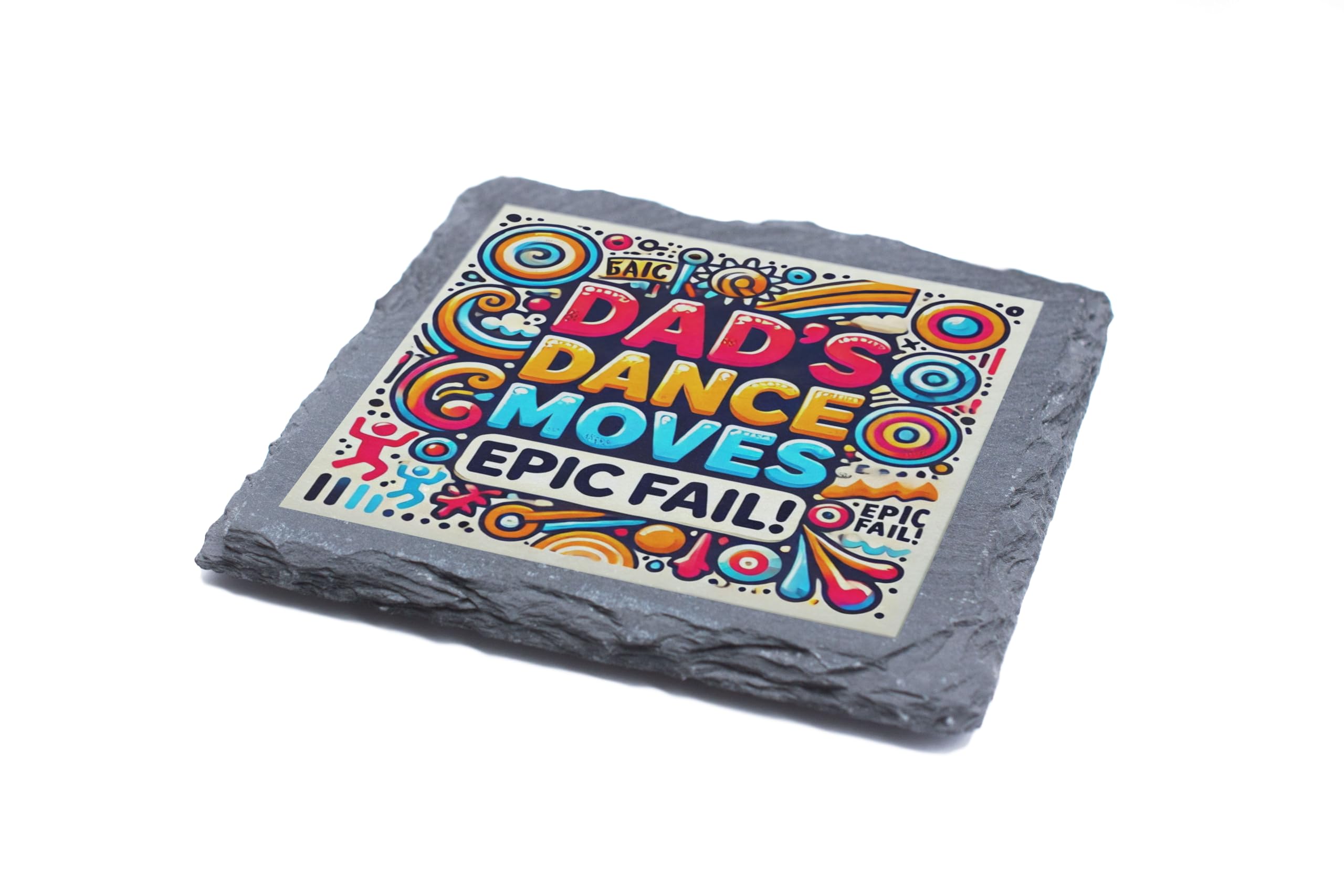 Celebrate dad's "legendary" dance moves with this hilarious slate coaster that proudly declares his epic fails on the dance floor! The bright and playful design makes it a conversation starter, perfect for family dinners, BBQs, or as a fun decor item in the living room. Crafted from premium natural slate, this coaster combines functionality and humor. The cork backing ensures surfaces stay scratch-free while providing stability for your drinks. Whether it's for Father's Day or just a random gift to show your appreciation for his "skills," this coaster is guaranteed to bring smiles and laughter to everyone.
