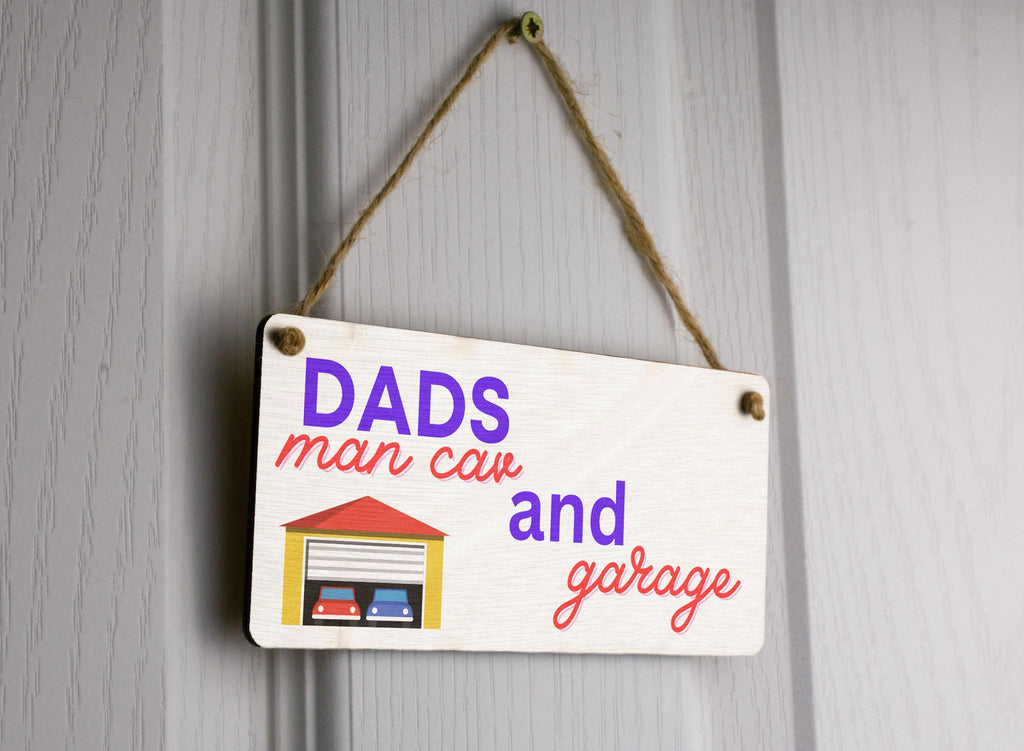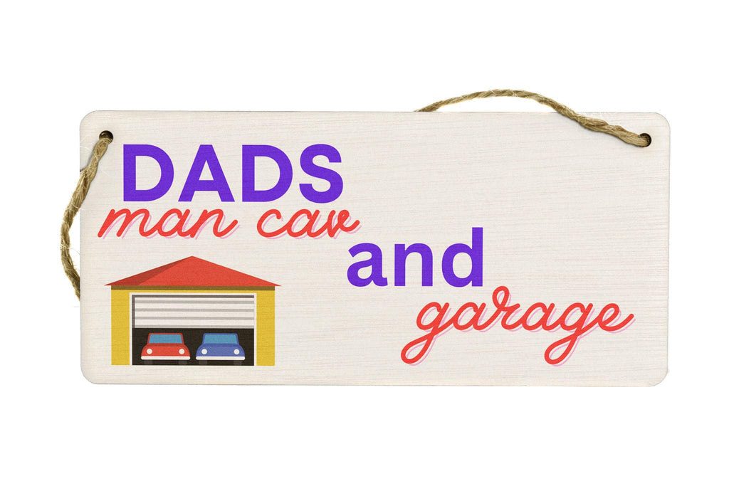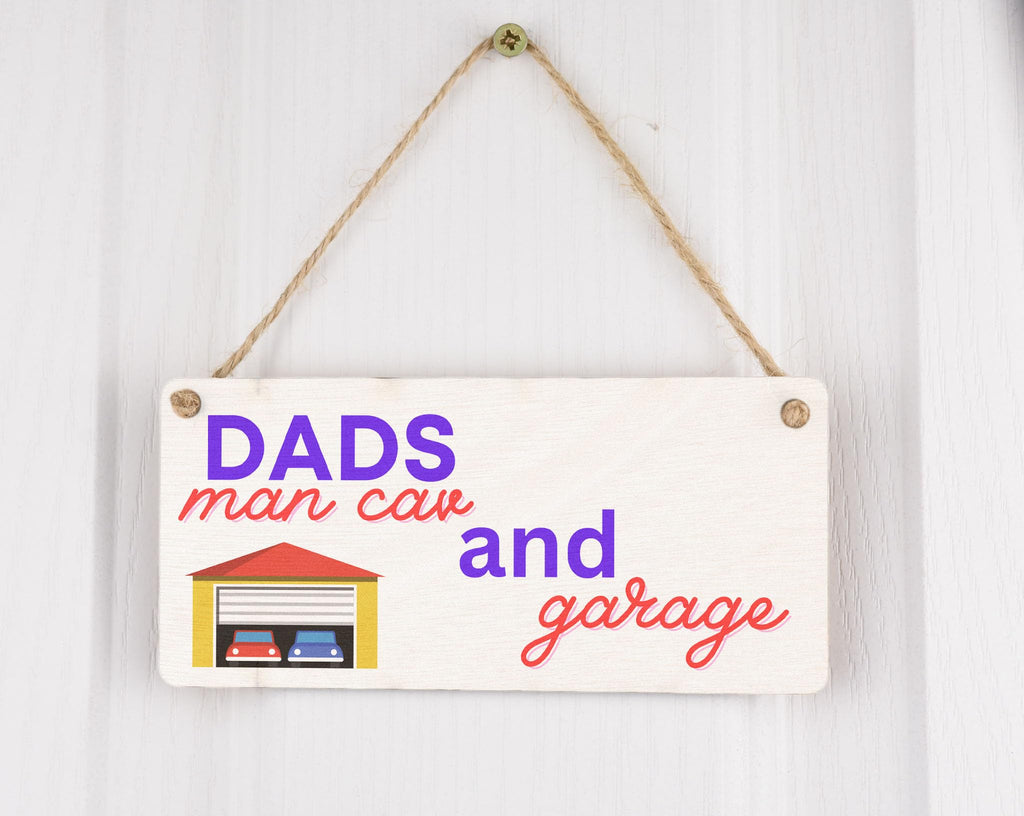 Dad's Man Cave and Garage - Plywood Hanging Sign -Novelty Father's Day Idea (smlsgn-ds23-dadsmangar)