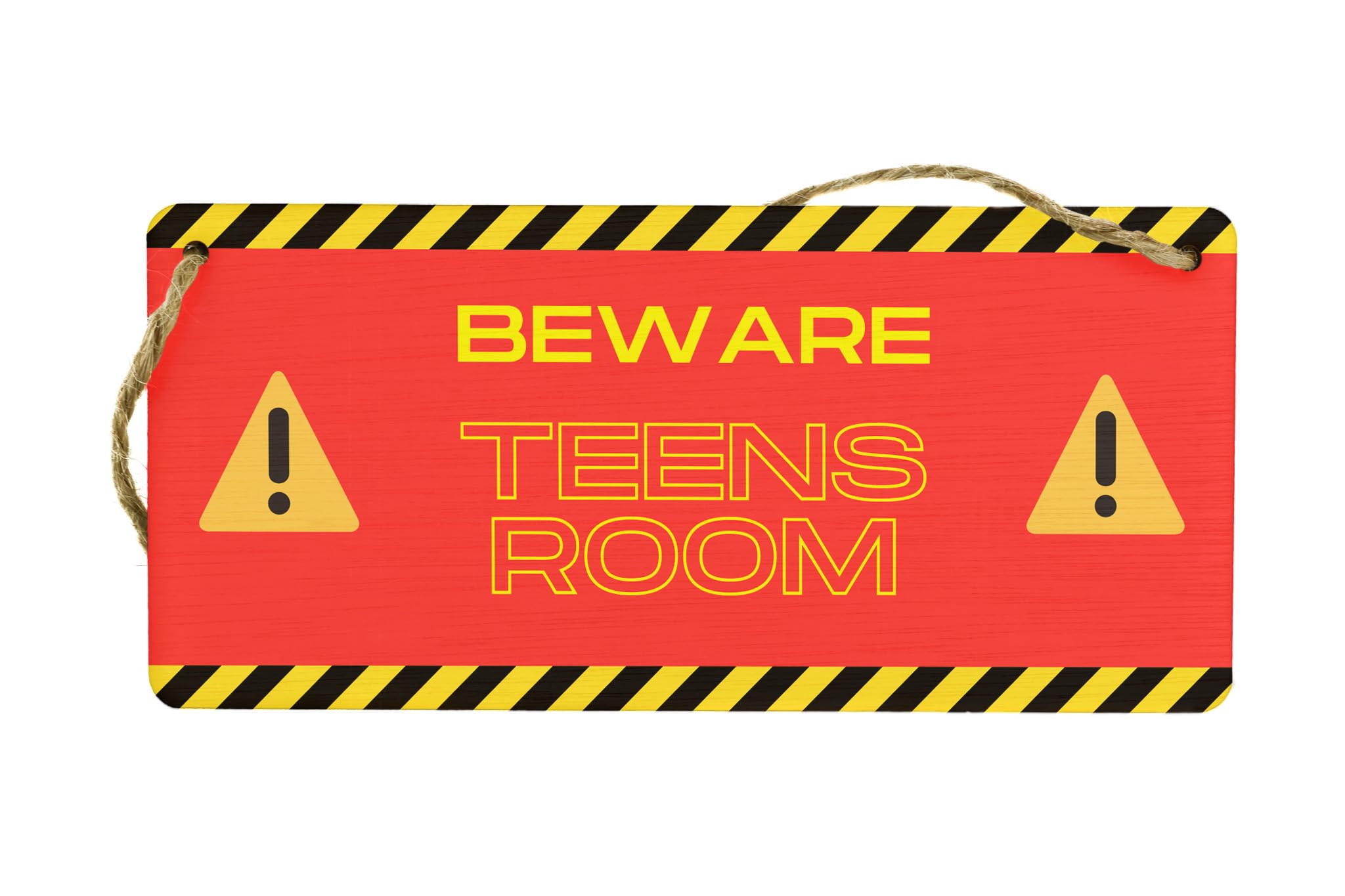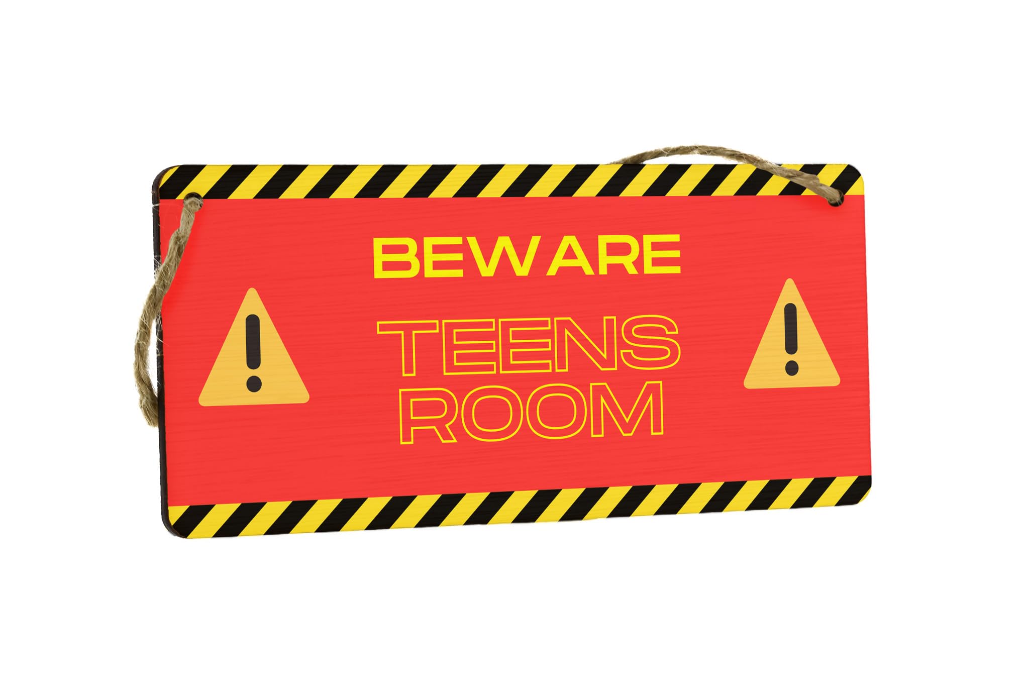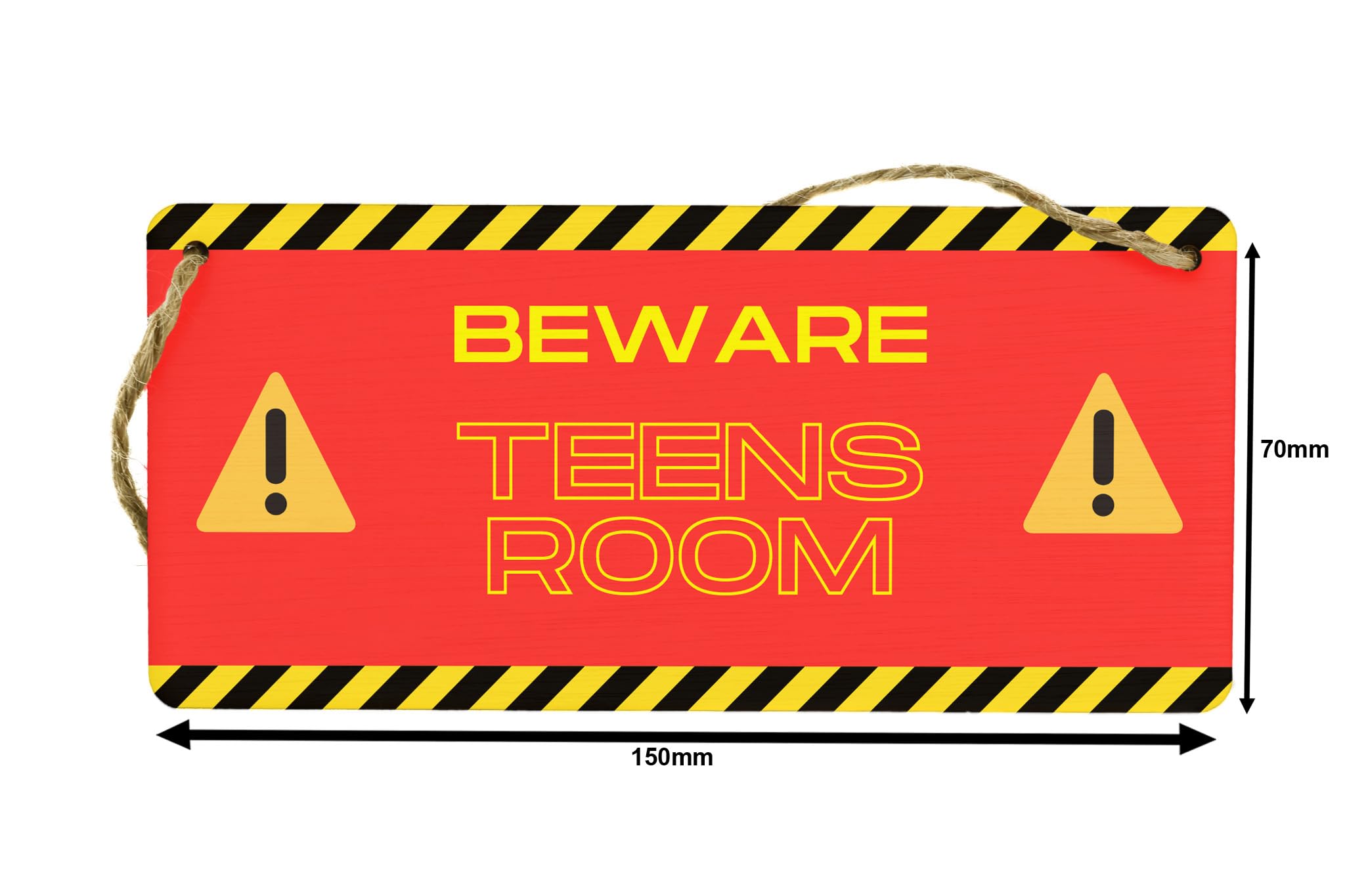 Introducing our Beware Teens Room Standout Plywood Hanging Sign, a must-have for any teenager's room! This eye-catching sign is the perfect gift to decorate their space with a touch of excitement and personality. The standout design will instantly draw attention and add a stylish statement to their room decor. Crafted from quality plywood, this sign is durable and built to last. The bright colours make the sign pop, creating a vibrant and energetic atmosphere. With the bold text that reads 'Beware Teens Room', it serves as a clear warning to outsiders not to enter. Give your teenager's room the standout sign it deserves with our Danger Teens Room Standout Plywood Hanging Sign.