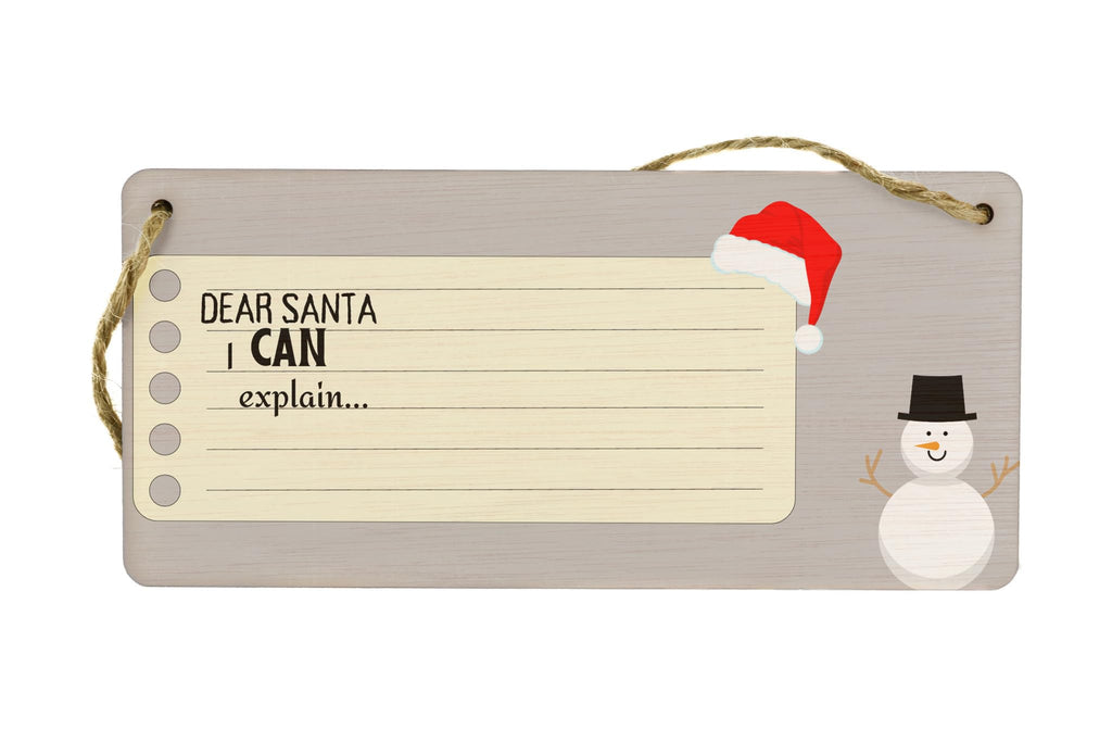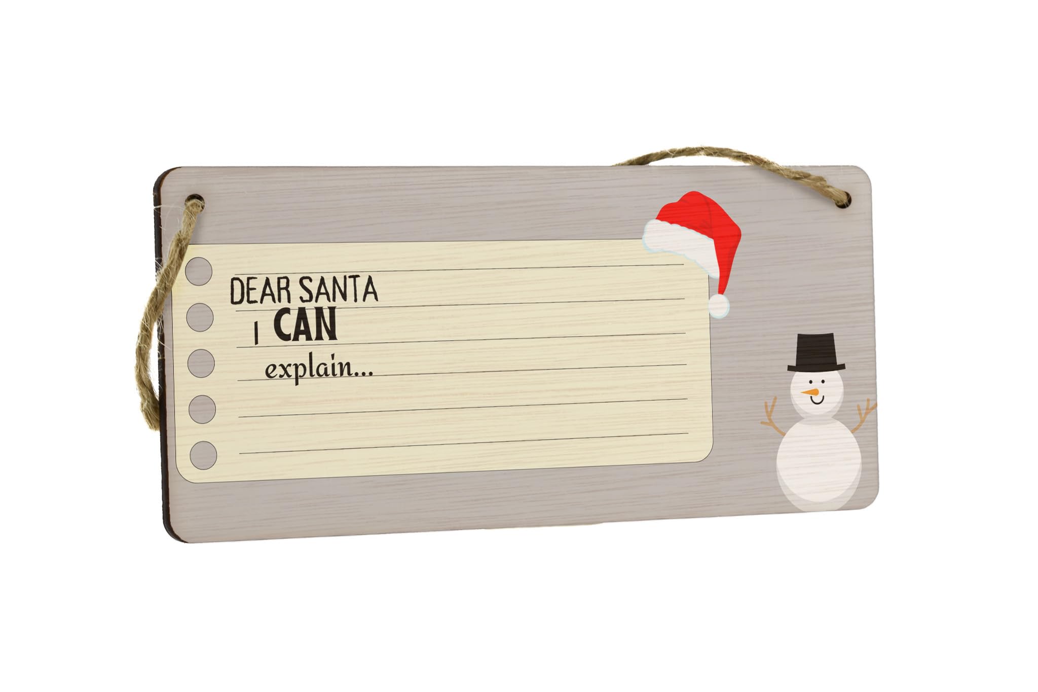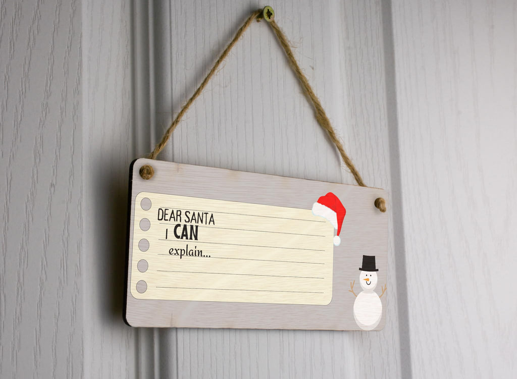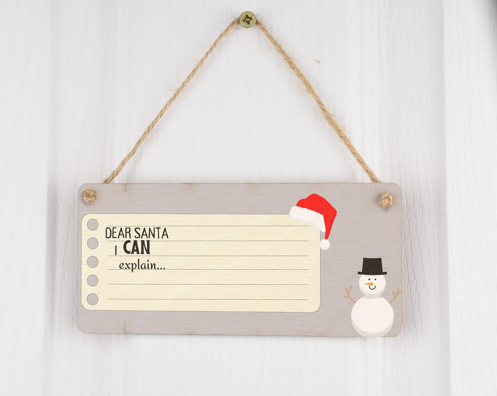 Add a touch of festive cheer to your home with our Festive Full Colour Plywood Hanging Sign. This beautifully designed sign is perfect for Christmas decor and makes a great gift for teens, kids, and the whole family. The sign features a funny and whimsical message that reads 'Dear Santa, I Can Explain', sure to bring a smile to anyone's face. It also includes an adorable snowman image, adding to its festive charm. Made with quality plywood, this hanging sign is durable and long-lasting. Hang it in your living room, son's room, or daughter's room to create a festive atmosphere and add a touch of holiday spirit to your home decor.