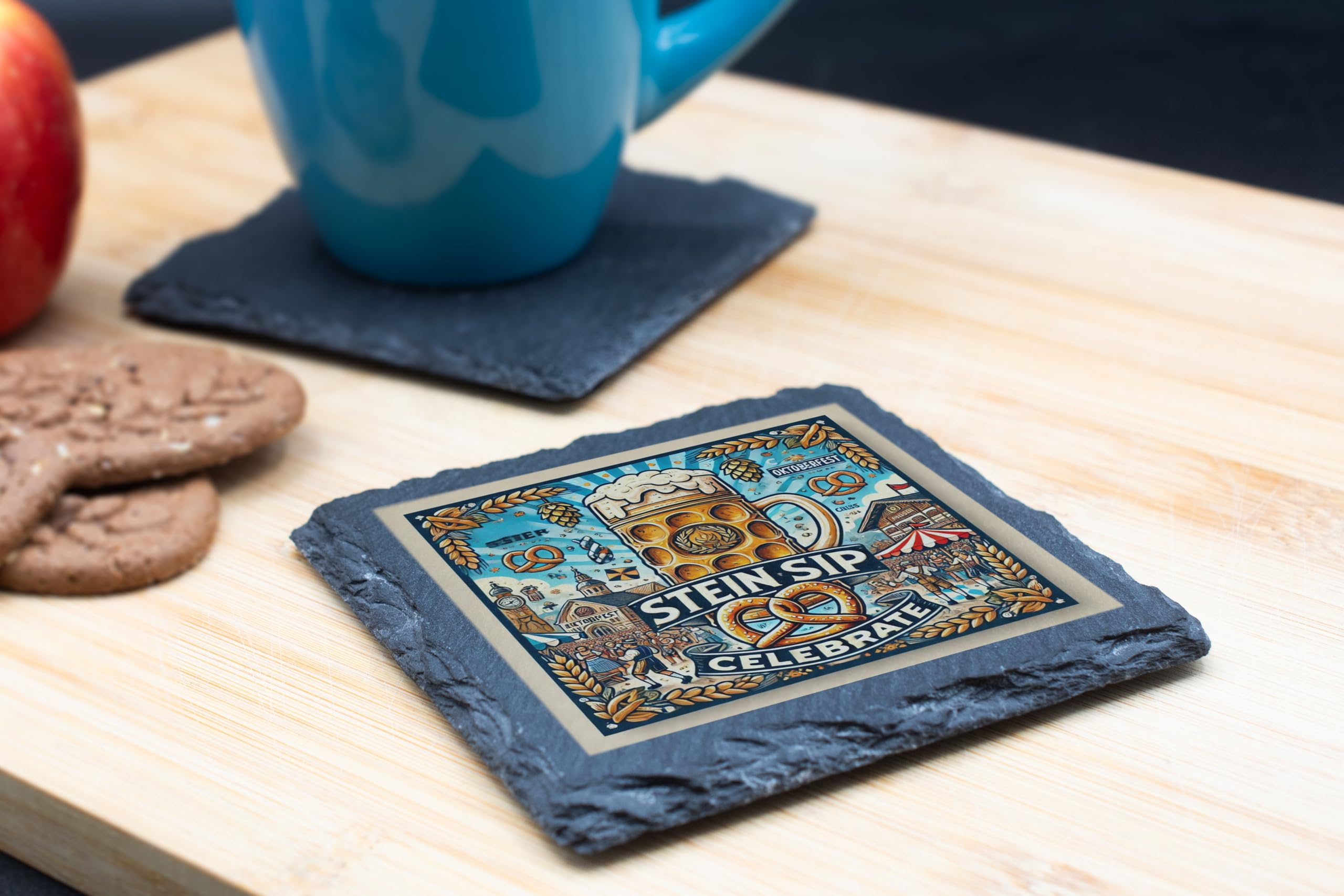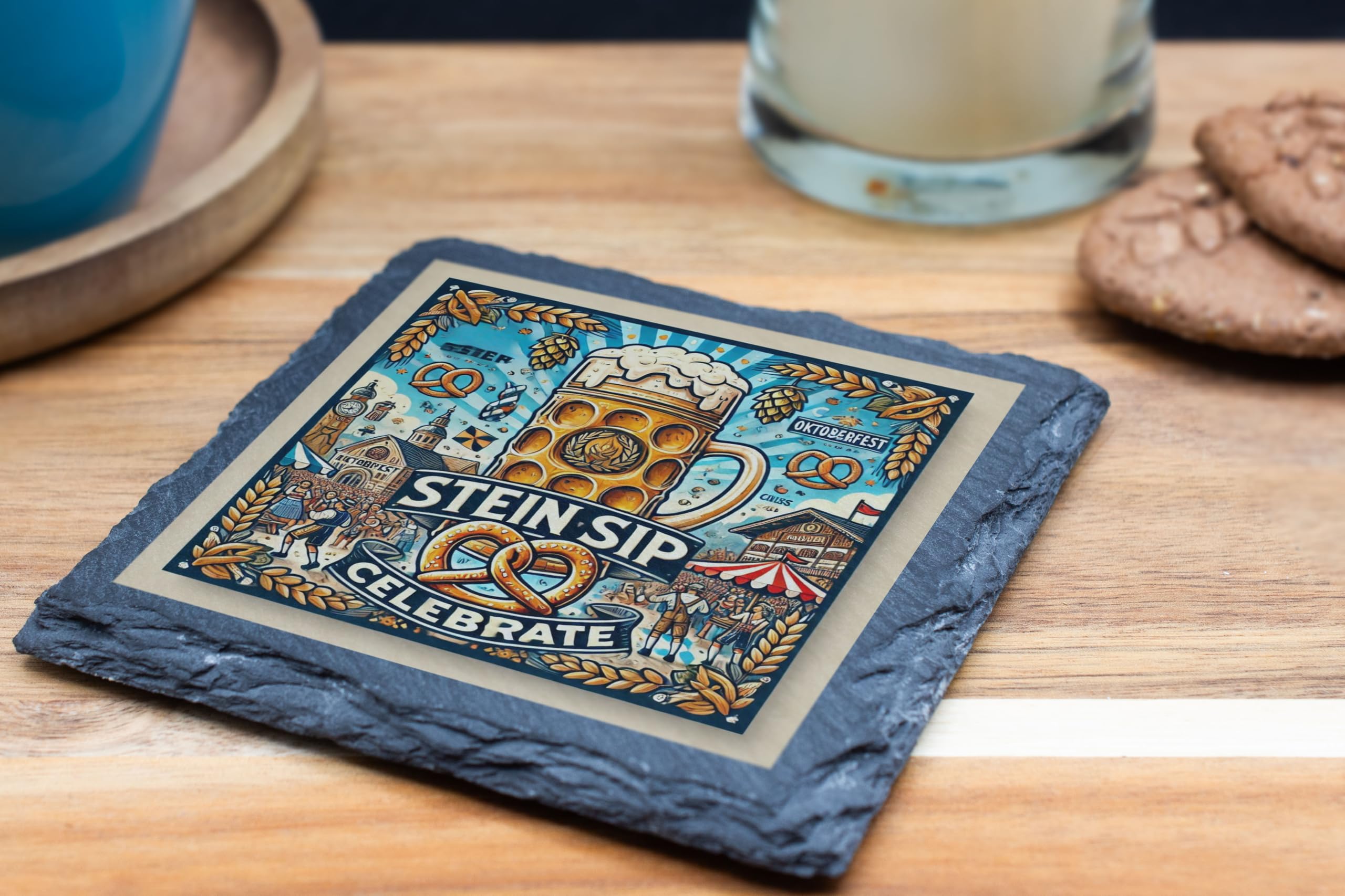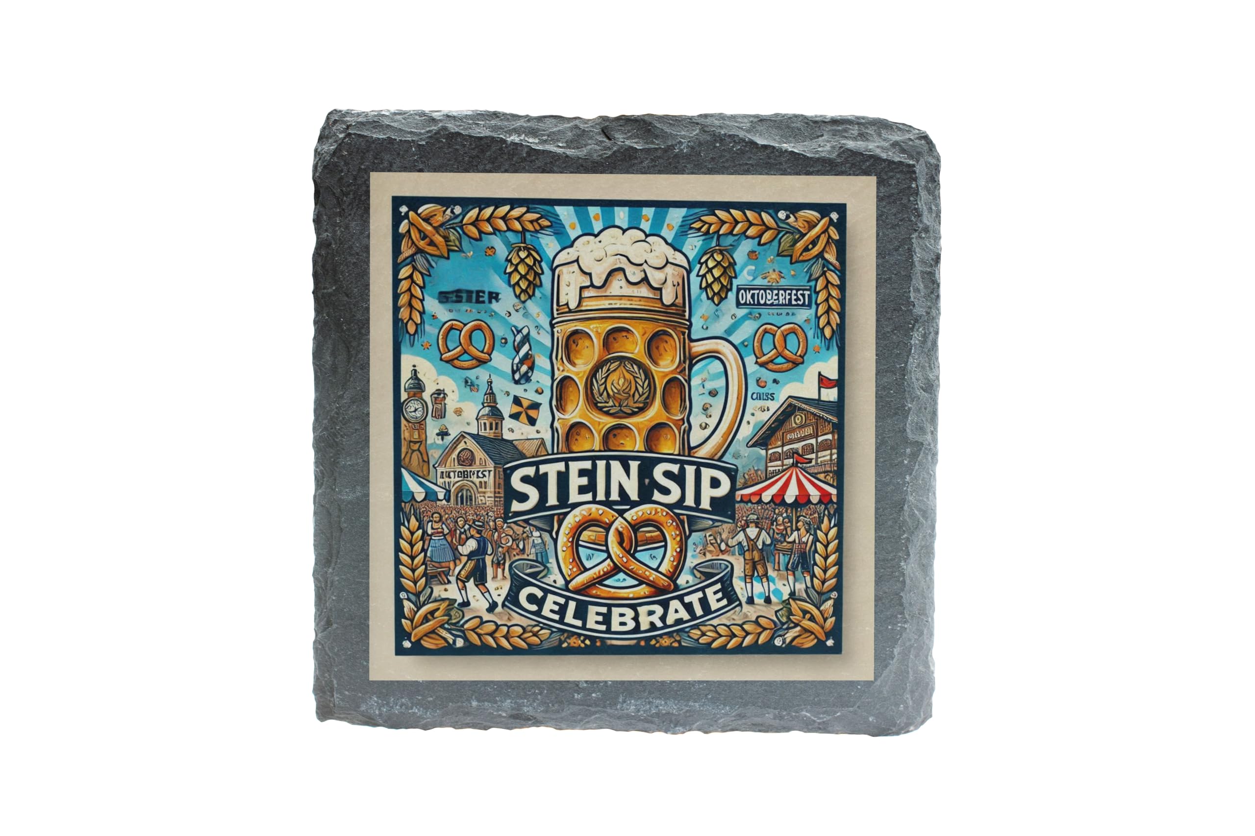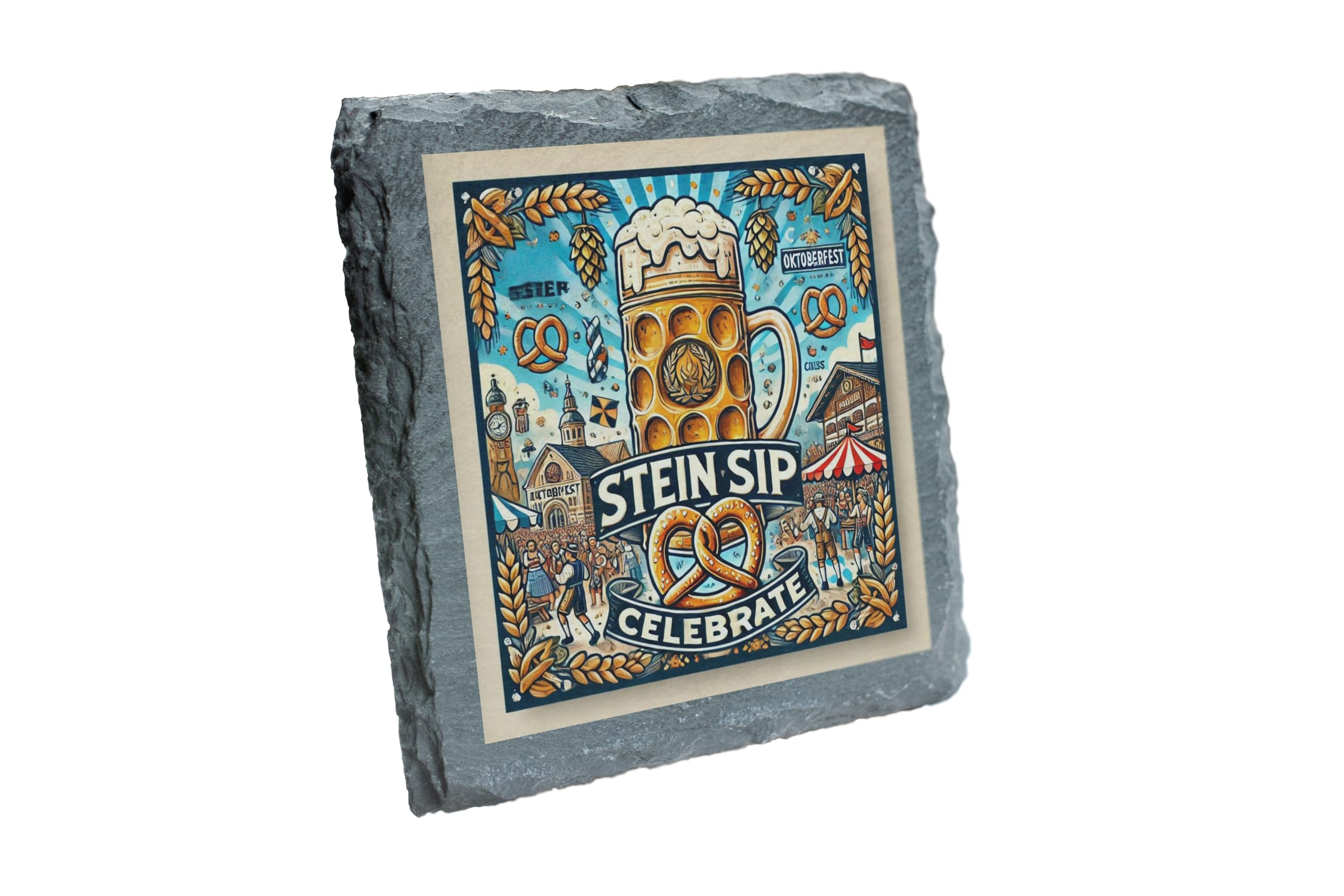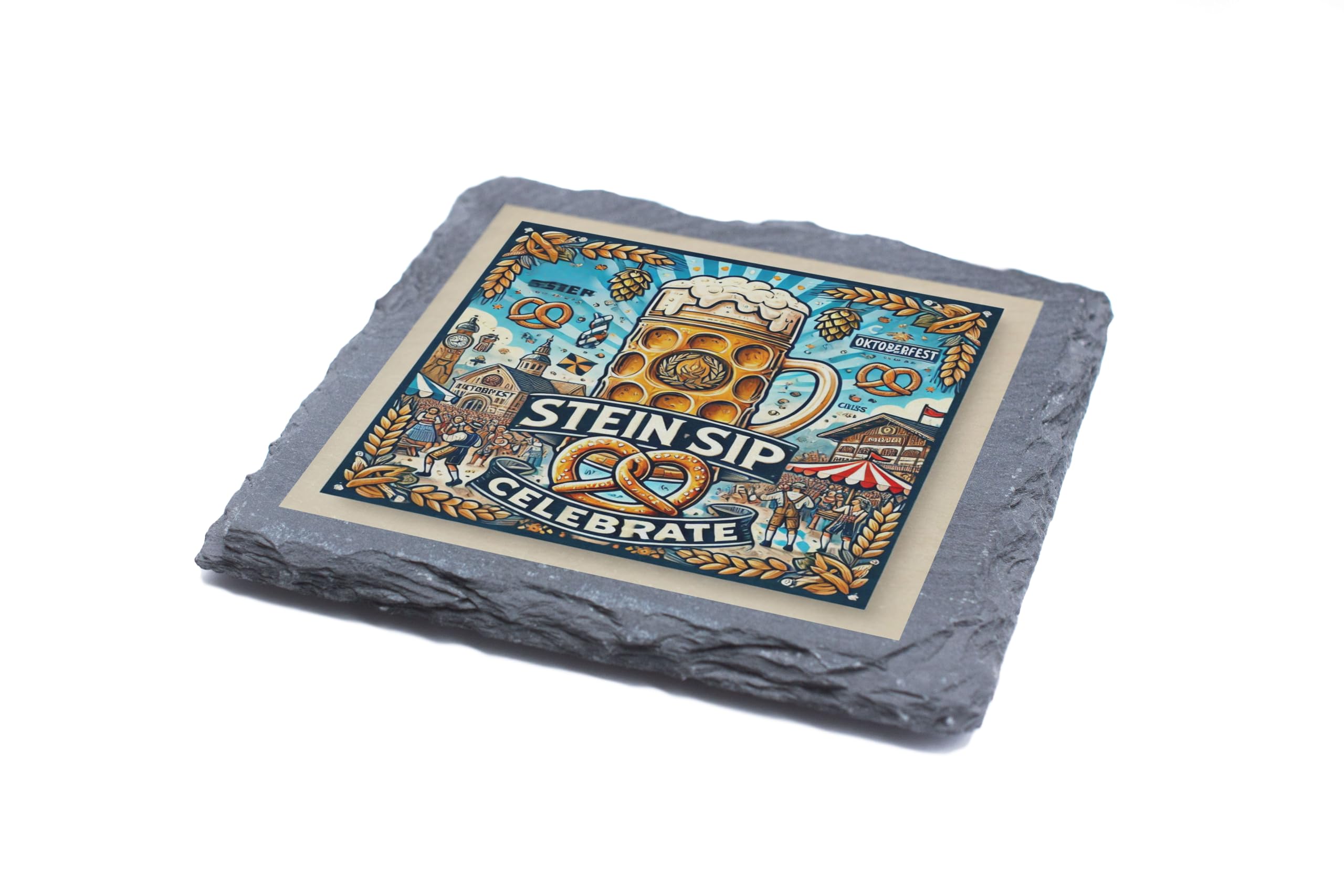 Decorative Slate Coaster ? 'Stein, Sip, Celebrate' Oktoberfest Design, Beer-Themed Home D?cor, Durable Natural Stone, Perfect for Beer Lovers (slco-ds24-steinrg)
