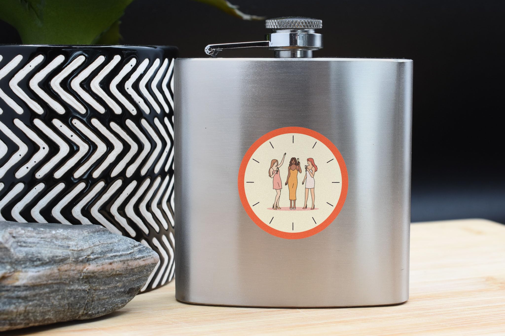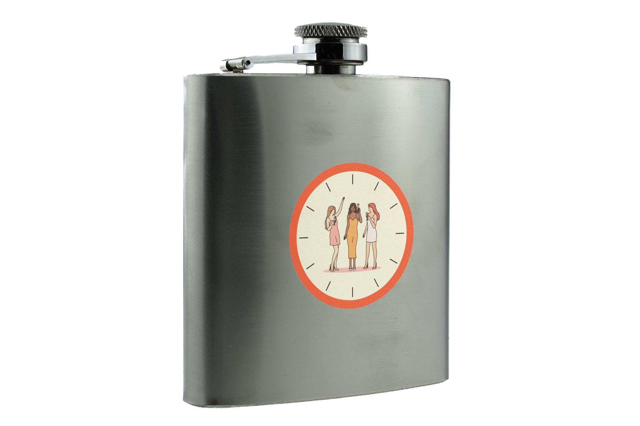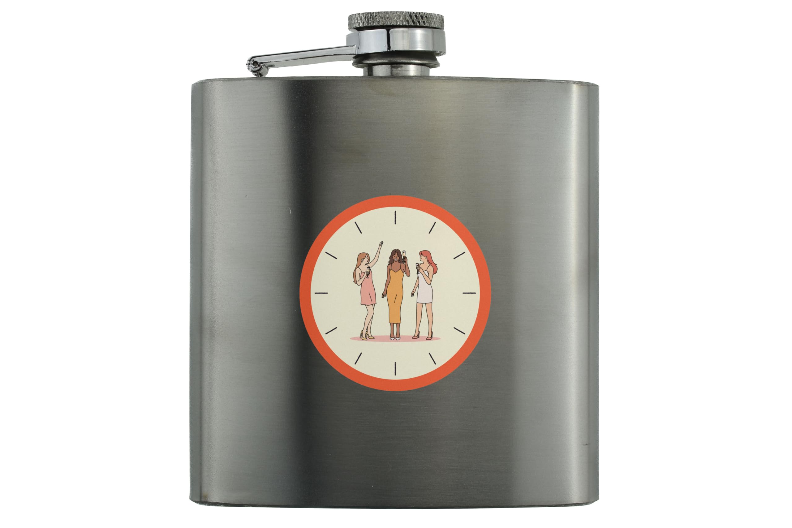 This Women's Stainless Steel Hip Flask Gift is the perfect accessory for any whisky, rum, gin, or vodka lover. Made from quality stainless steel, this hip flask is durable and designed to last. The flask features a decorative full colour design with an image of ladies partying and a clock background, adding a touch of style and elegance. Whether you are buying it as a gift for your mum, sister, auntie, grandmother, mother, daughter, girlfriend, wife, bride, or bridesmaid, this hip flask is sure to impress. It is also a great treat for yourself, the women who appreciate the finer things in life. This flask is not only functional, but it is also a fashionable accessory that will make a statement wherever you go.