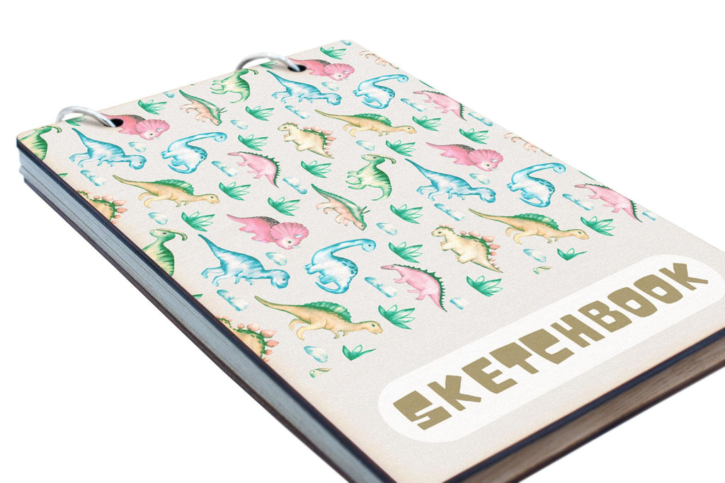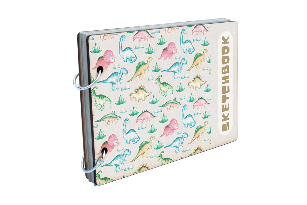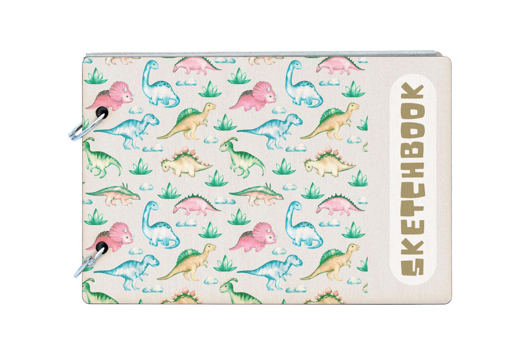 Introducing our Dino Sketchbook, the perfect drawing book for kids who love dinosaurs! This fun sketchbook features a wooden cover and 25 recycled pages, making it an eco-friendly option for young artists. The full colour front cover showcases a dinosaur themed pattern that is sure to catch children's eyes and inspire their creativity. Whether your child is a dino lover or just enjoys drawing, this Dino Sketchbook is a must-have for their art collection. Let their imagination run wild with this prehistoric-themed sketchpad!