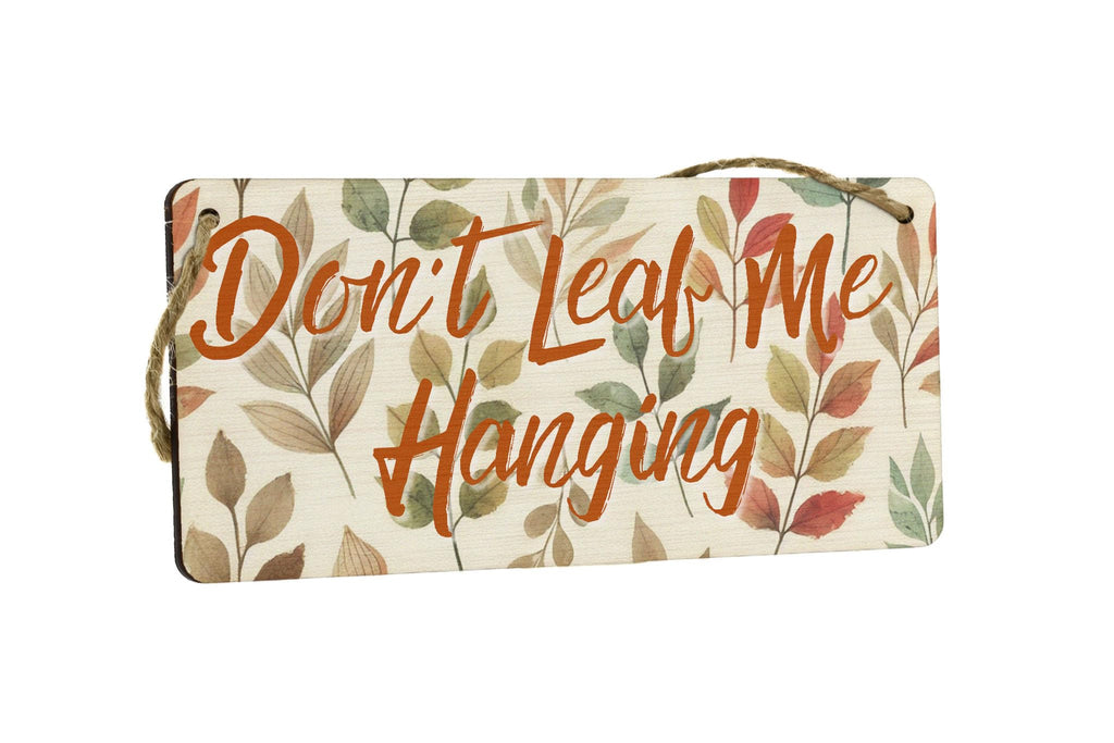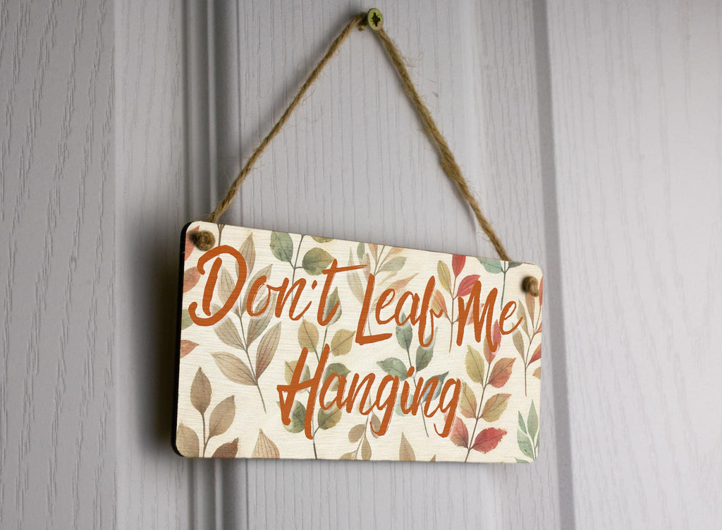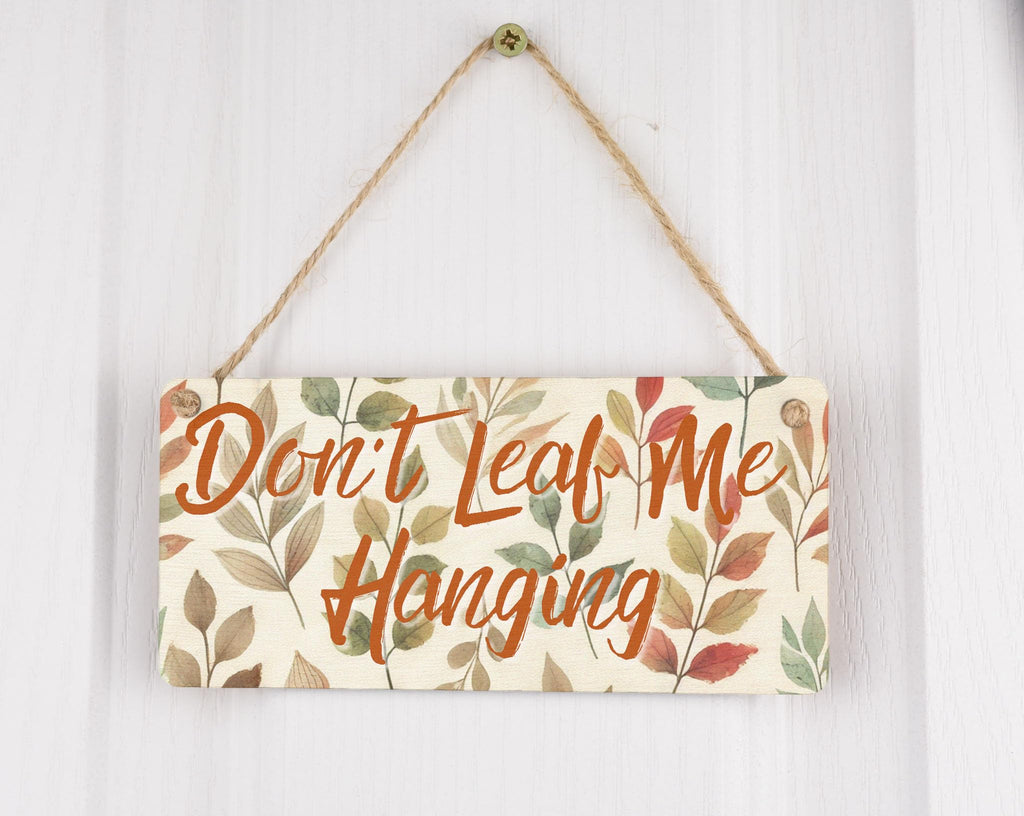 Don't Leaf Me Hanging Wooden Sign - Autumn Watercolour Leaves Wall Art (smlsgn-kf24-hangleafhg)
