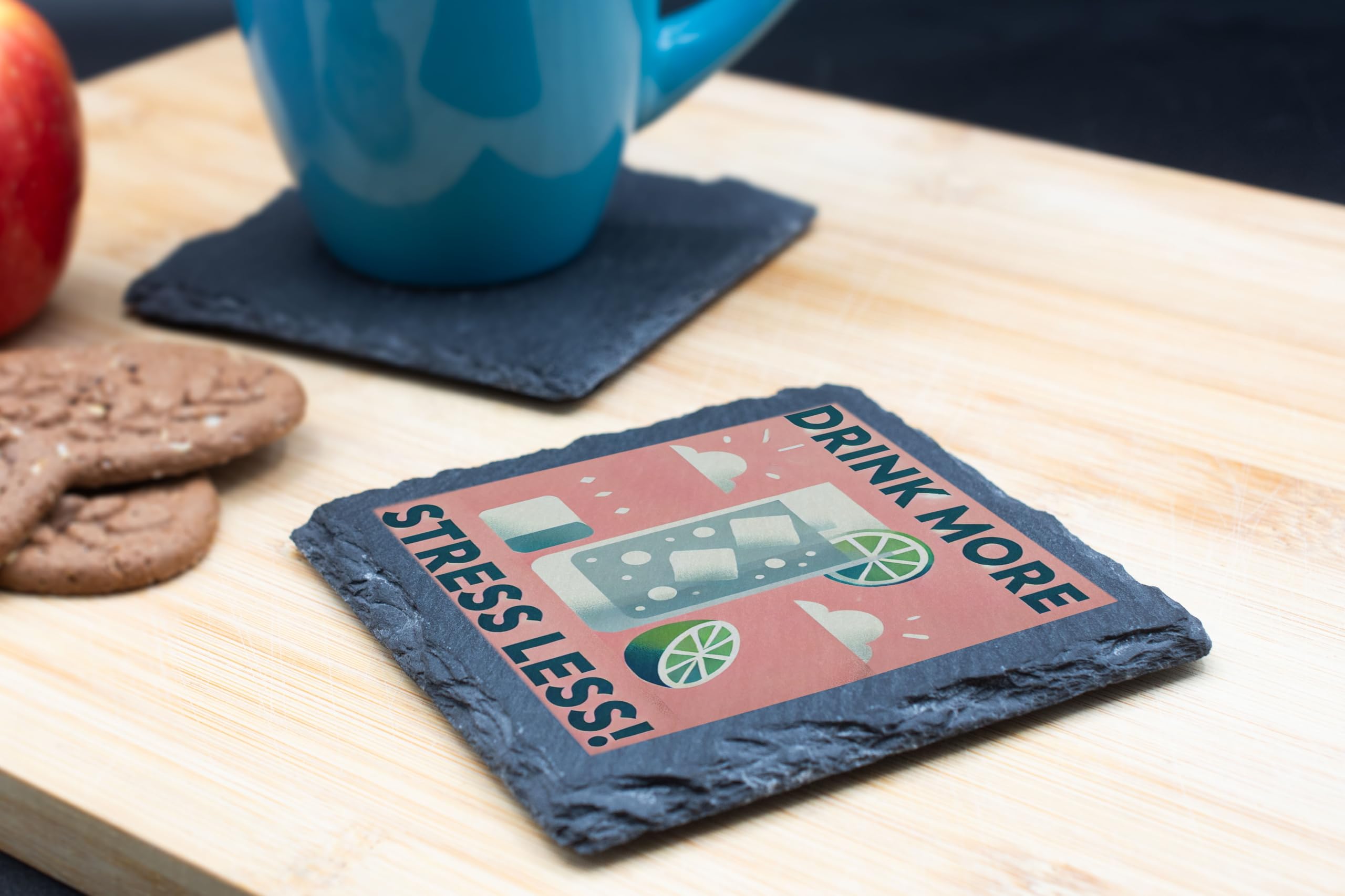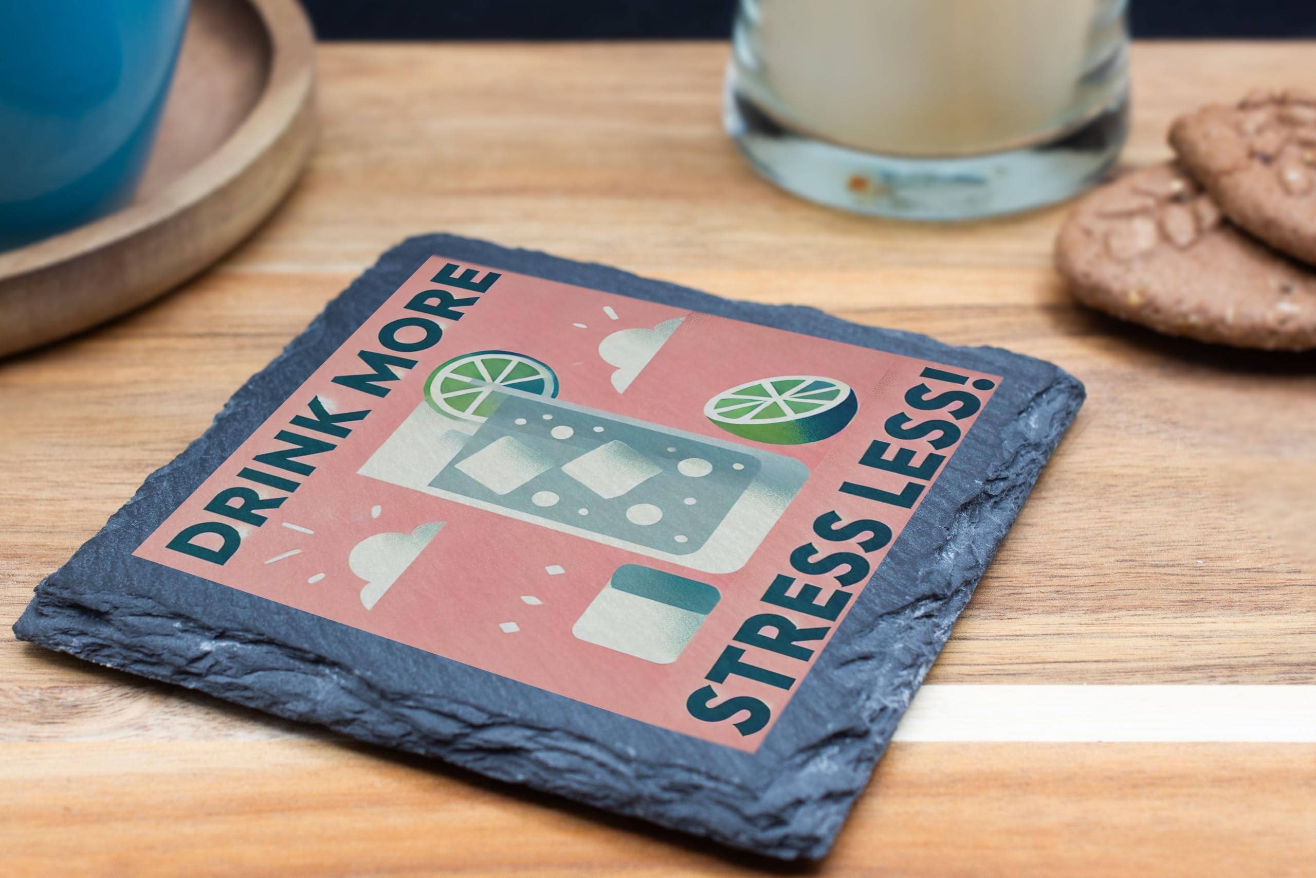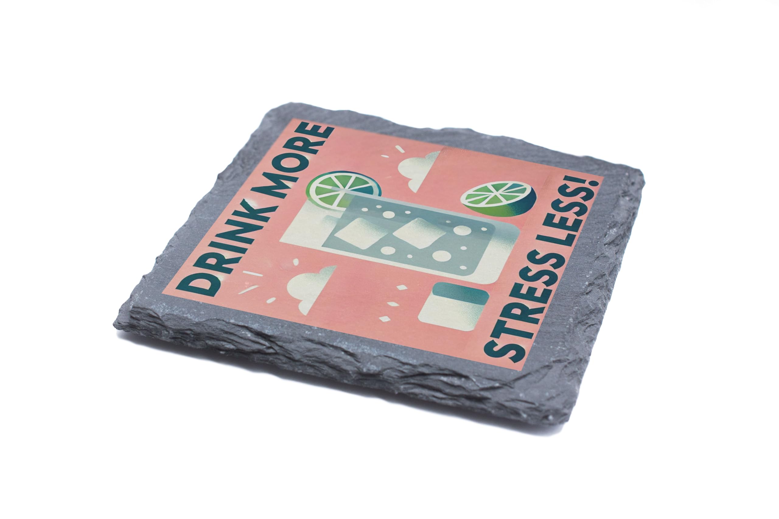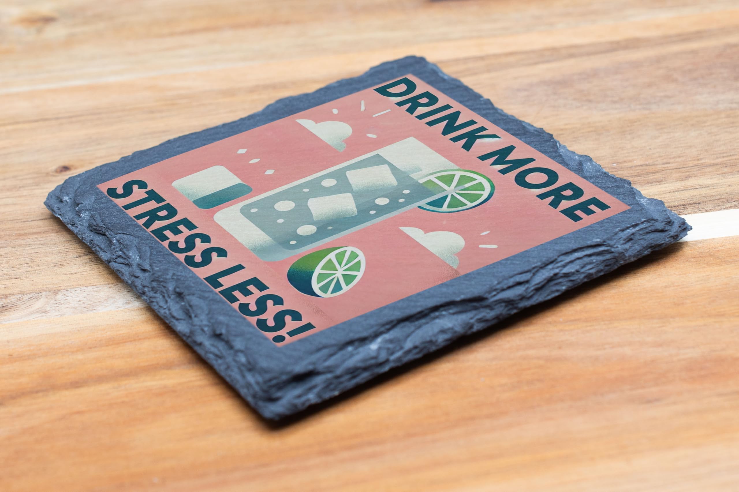 Take a moment to unwind with the "Drink More, Stress Less!" Decorative Slate Coaster. Its refreshing design, featuring cool limes and a glass of water, serves as a gentle reminder to stay hydrated and stress-free. Crafted from high-quality natural slate, this coaster is both durable and visually appealing. Its vibrant, fade-resistant print ensures it retains its calming charm over time, making it a perfect addition to any home or office space. Practical yet stylish, this coaster is an excellent way to protect your surfaces while enhancing your decor. It also makes for a unique and thoughtful gift for loved ones, combining function with aesthetic appeal!