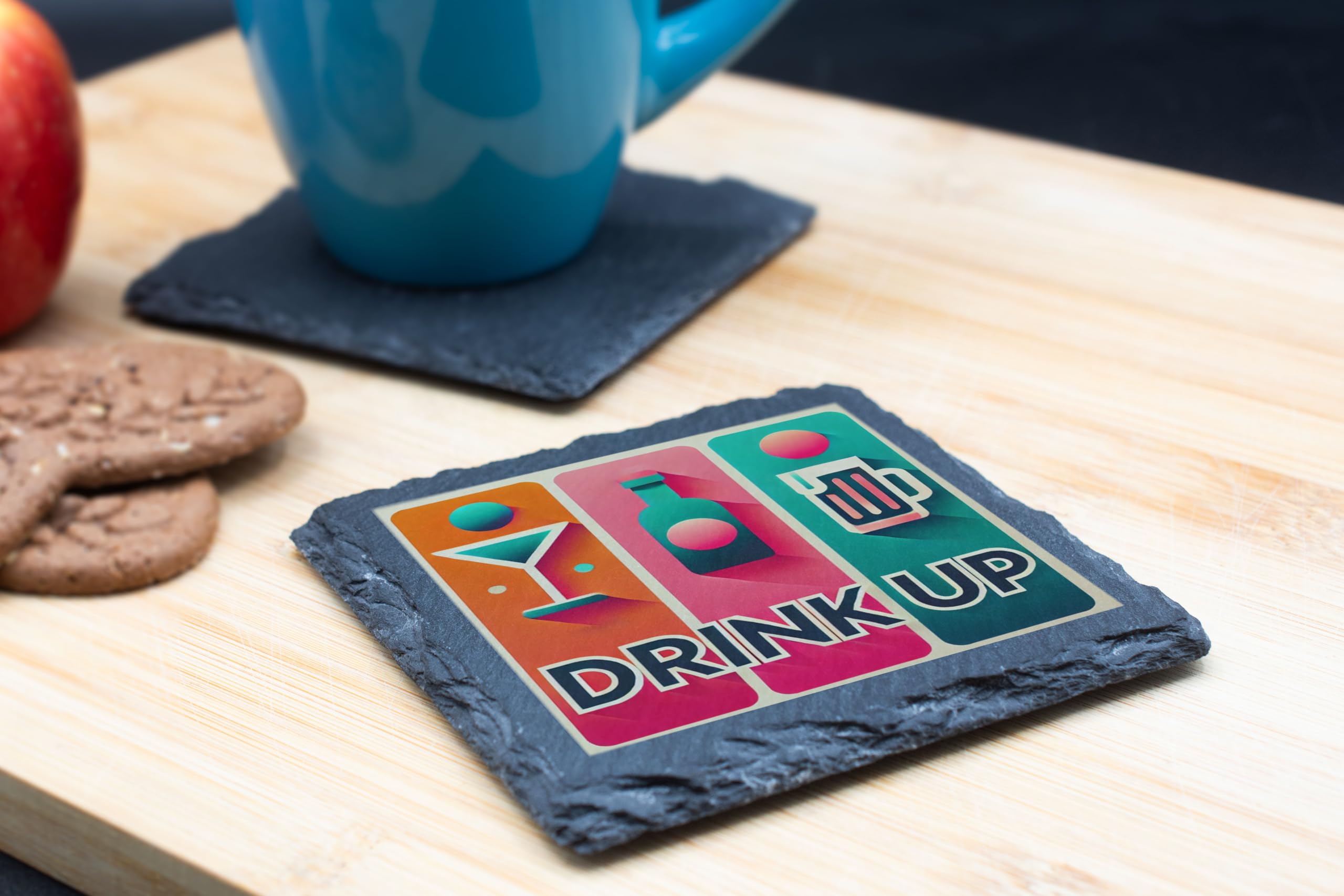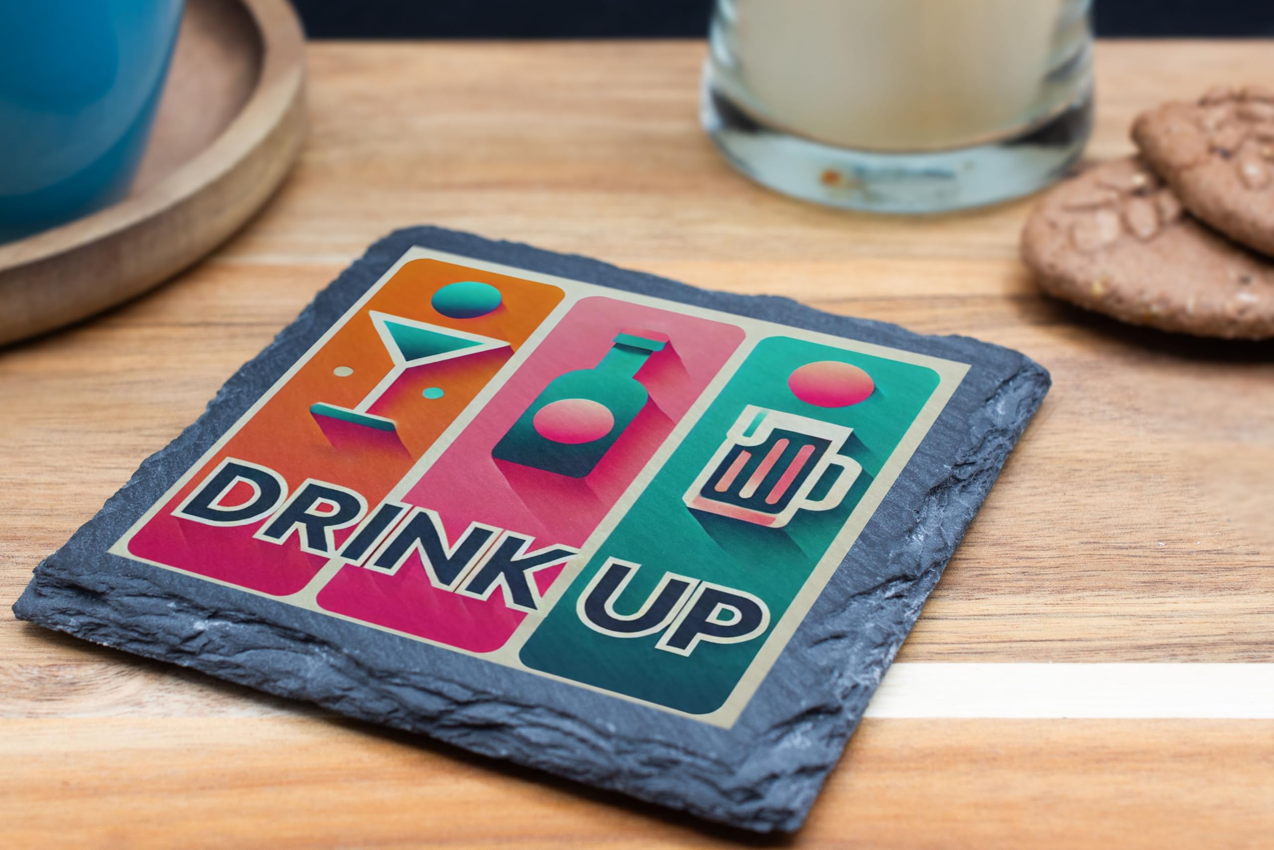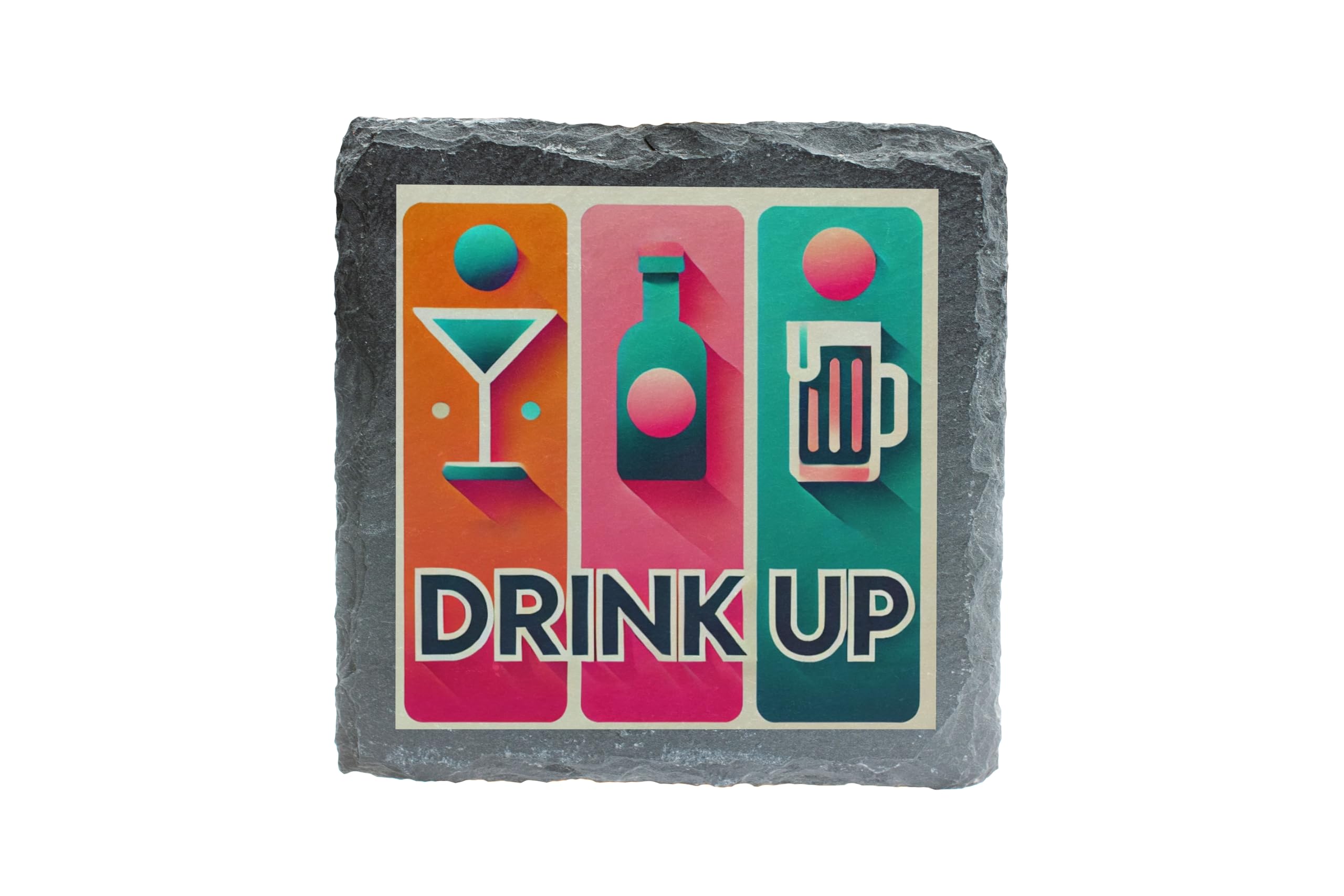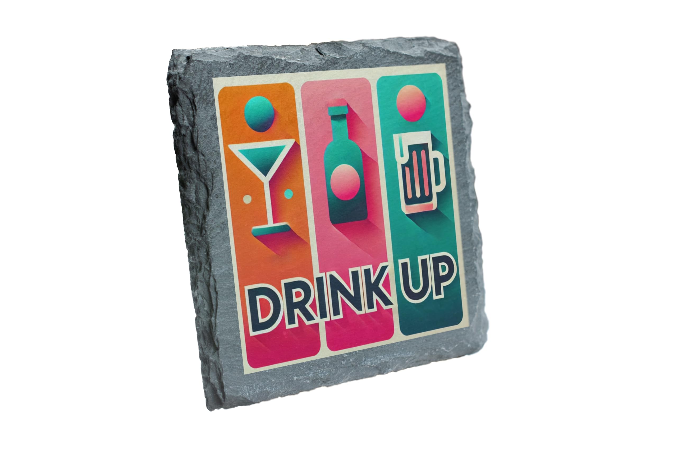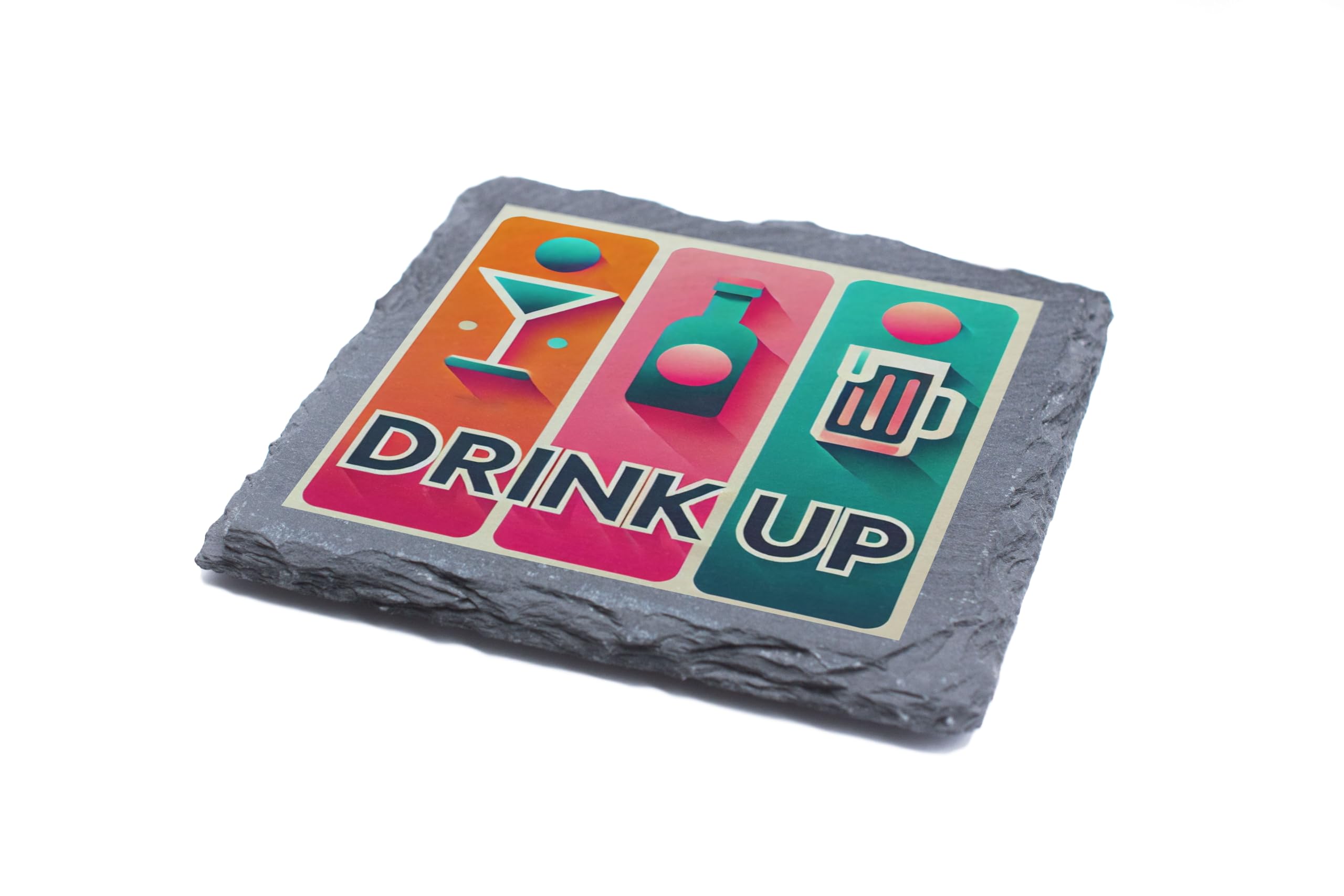 Add a touch of fun and color to your gatherings with this eye-catching "Drink Up" slate coaster. The vibrant design, featuring bold drink icons and a playful message, is sure to set the tone for your next party or social event. Made from high-quality natural slate, this coaster is both functional and durable, offering excellent surface protection while adding a pop of style to your bar or home decor. Perfect for entertaining guests, hosting cocktail parties, or simply enjoying a relaxing drink at home, this coaster is versatile and stylish. It also makes a thoughtful gift for friends and family who appreciate a good drink and great company.