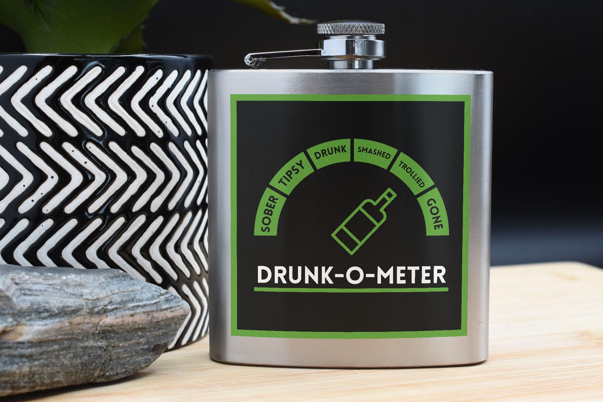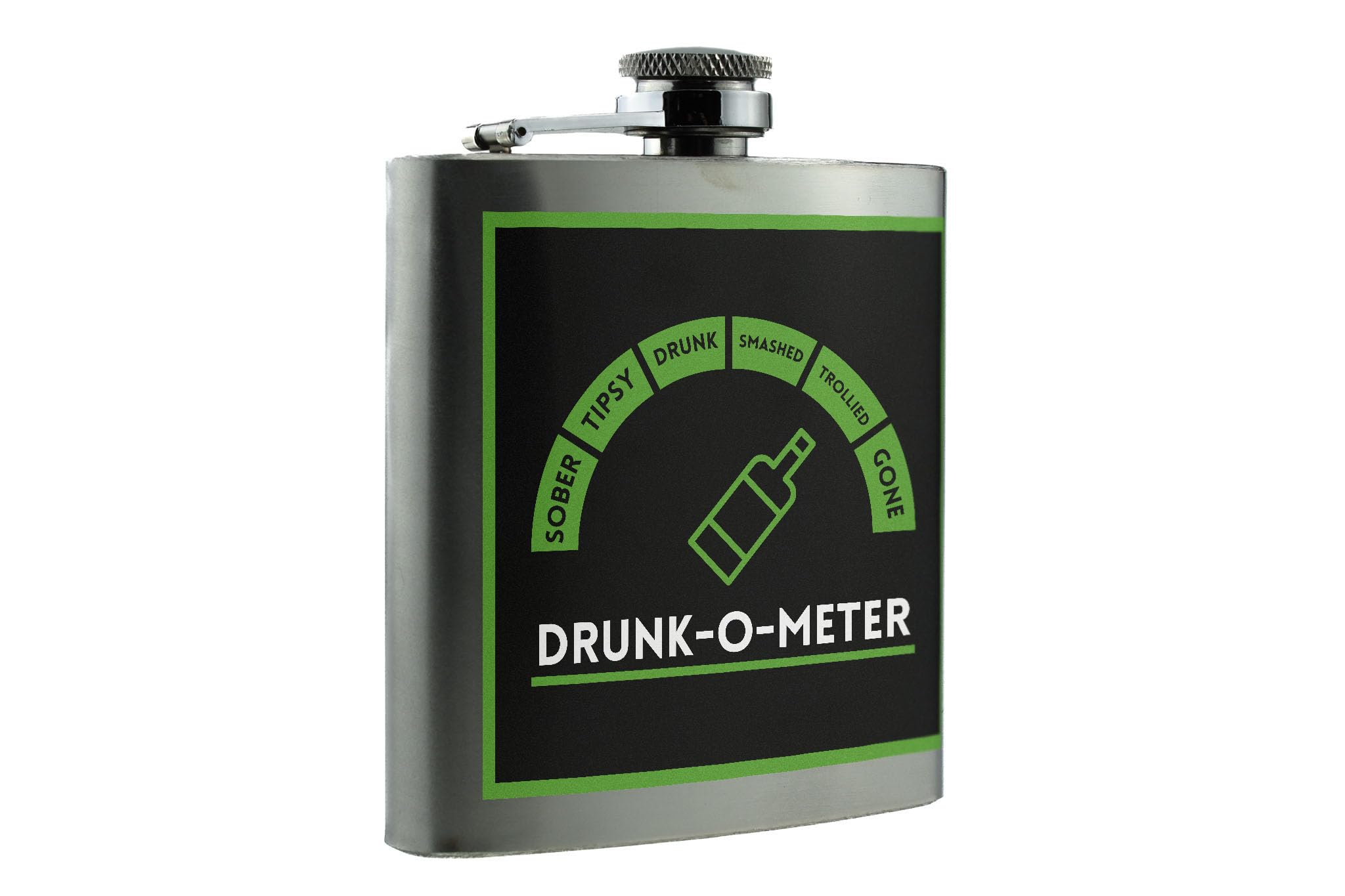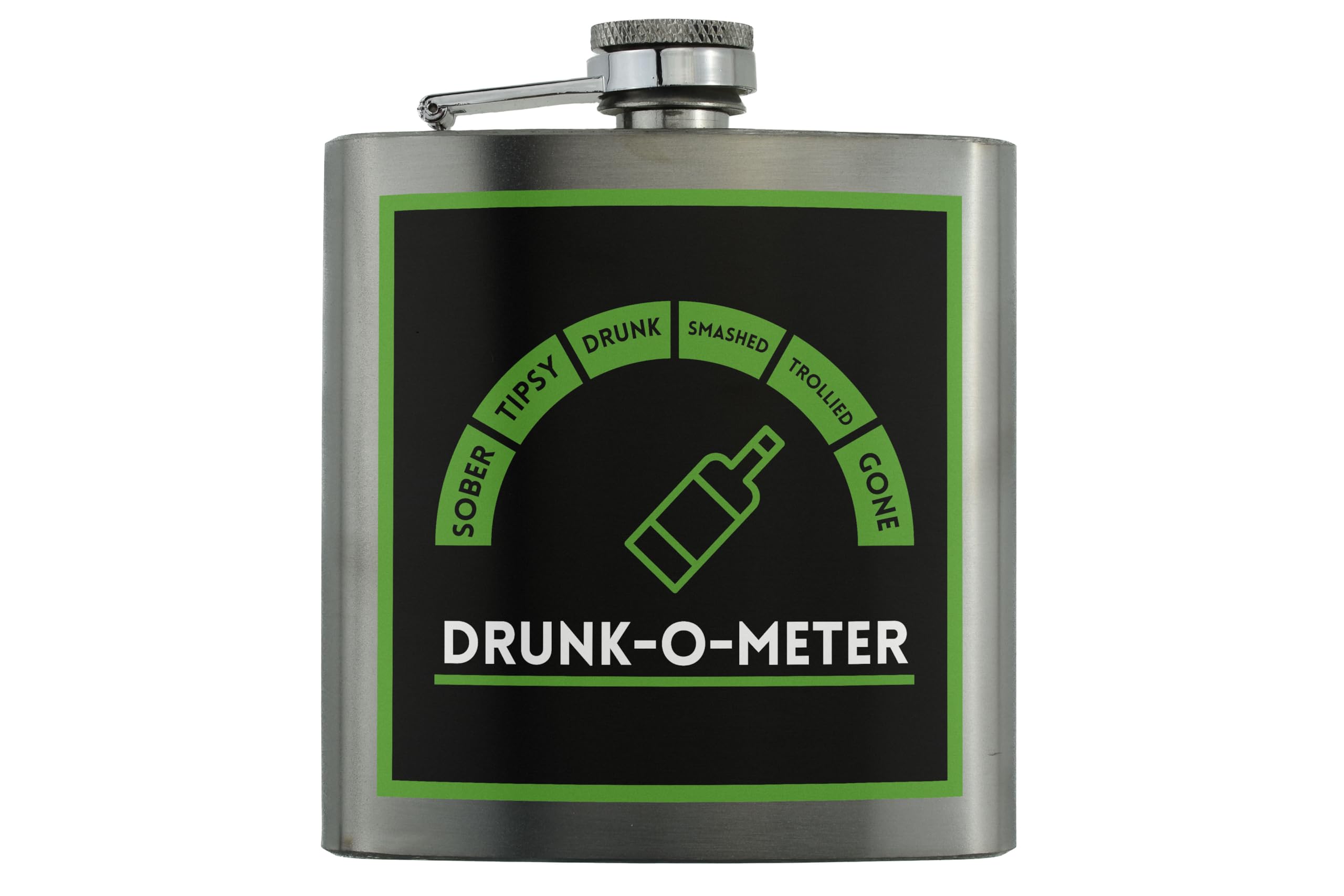 - High-quality printing: The UV printed design on this flask ensures that the 'Drunk-o-Metre' motif stays vibrant and eye-catching for all your nights out.