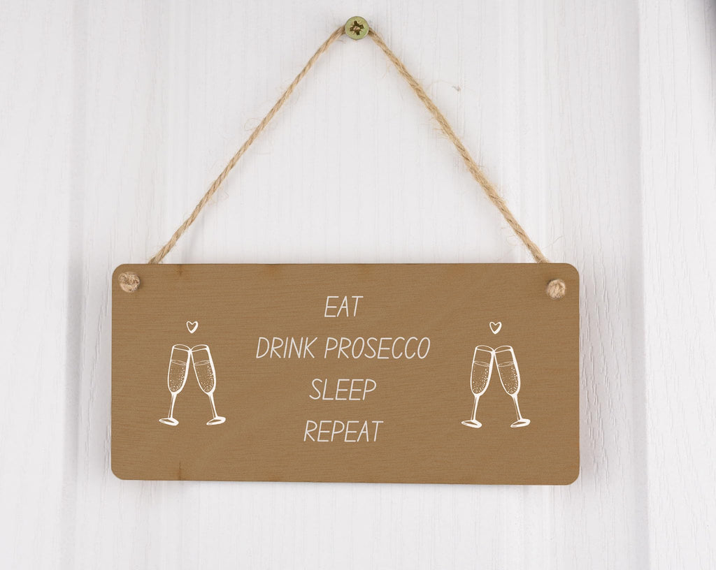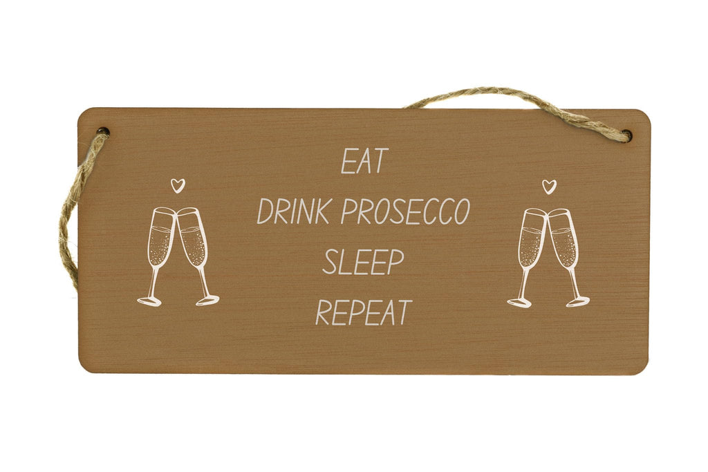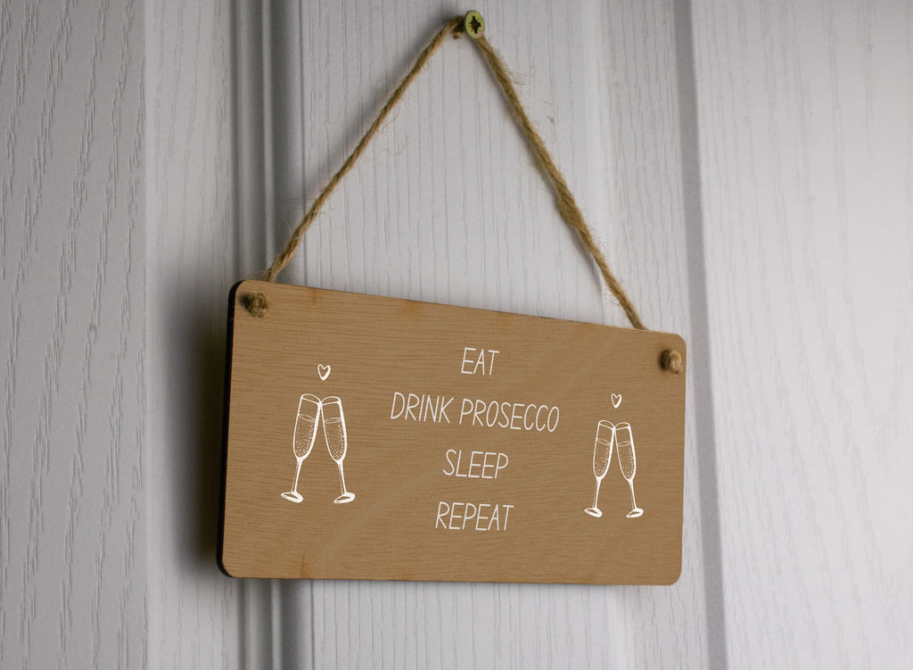 - Funny sign reads 'Eat Drink Prosecco Sleep Repeat' - Sure to bring a smile to everyone's face