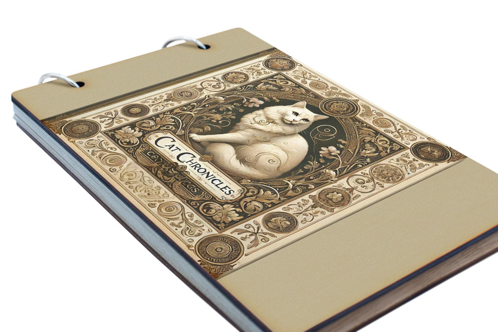 Introducing the Elegant Feline Keepsake: Vintage Cat Chronicles Journal, the perfect addition to any cat lover's collection. This exquisitely crafted journal features a vintage and ornate wooden cover that is both decorative and artistic. The intricate illustration on the full-colour front cover showcases a stylish and classic image of a cat, making it a sophisticated and collectable item. Inside, you will find 25 recycled pages of detailed blank paper, ready for you to fill with your own cat chronicles. Whether you're jotting down memories, sketches, or simply prioritising your daily tasks, this journal is sure to inspire creativity and elegance in your writing.