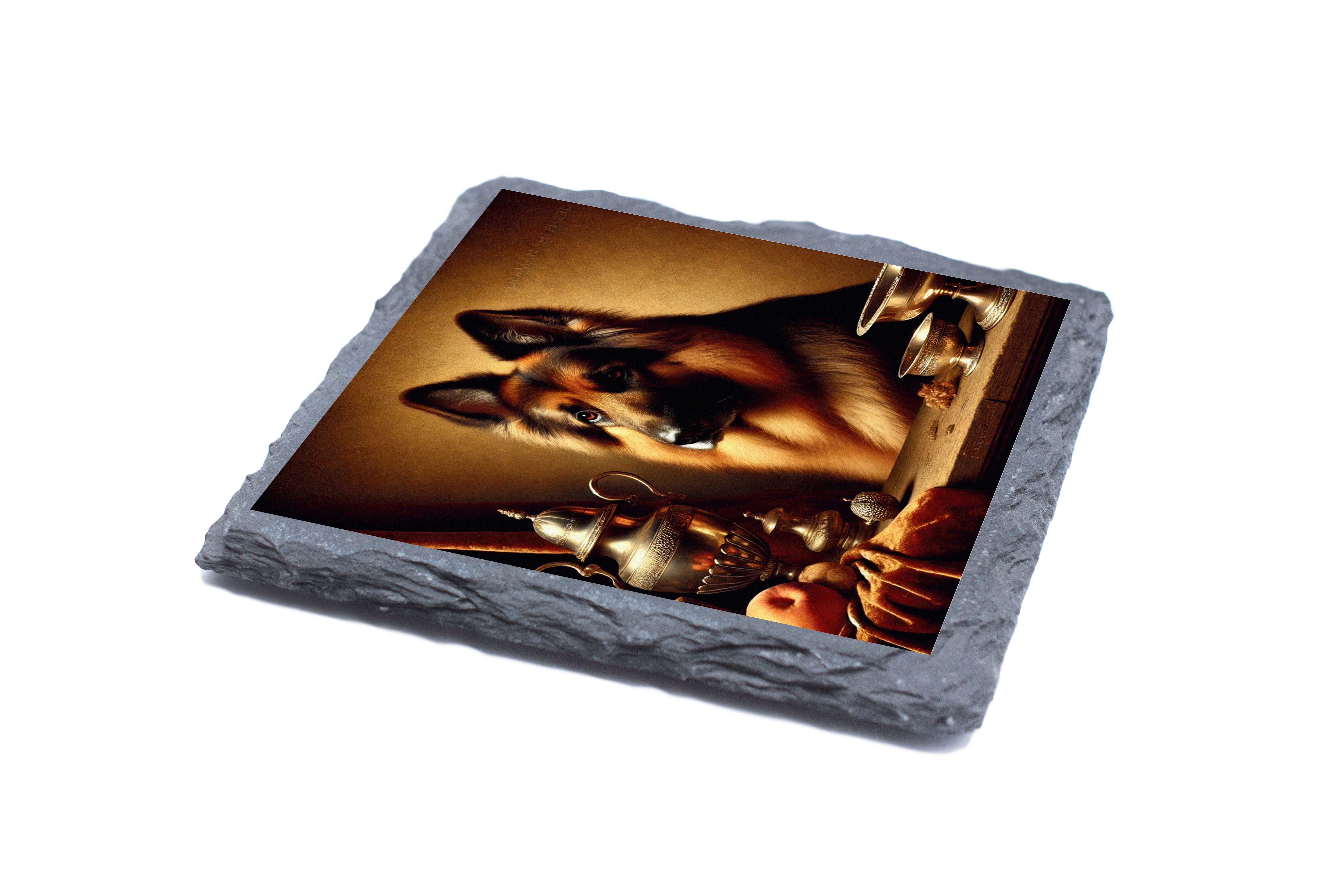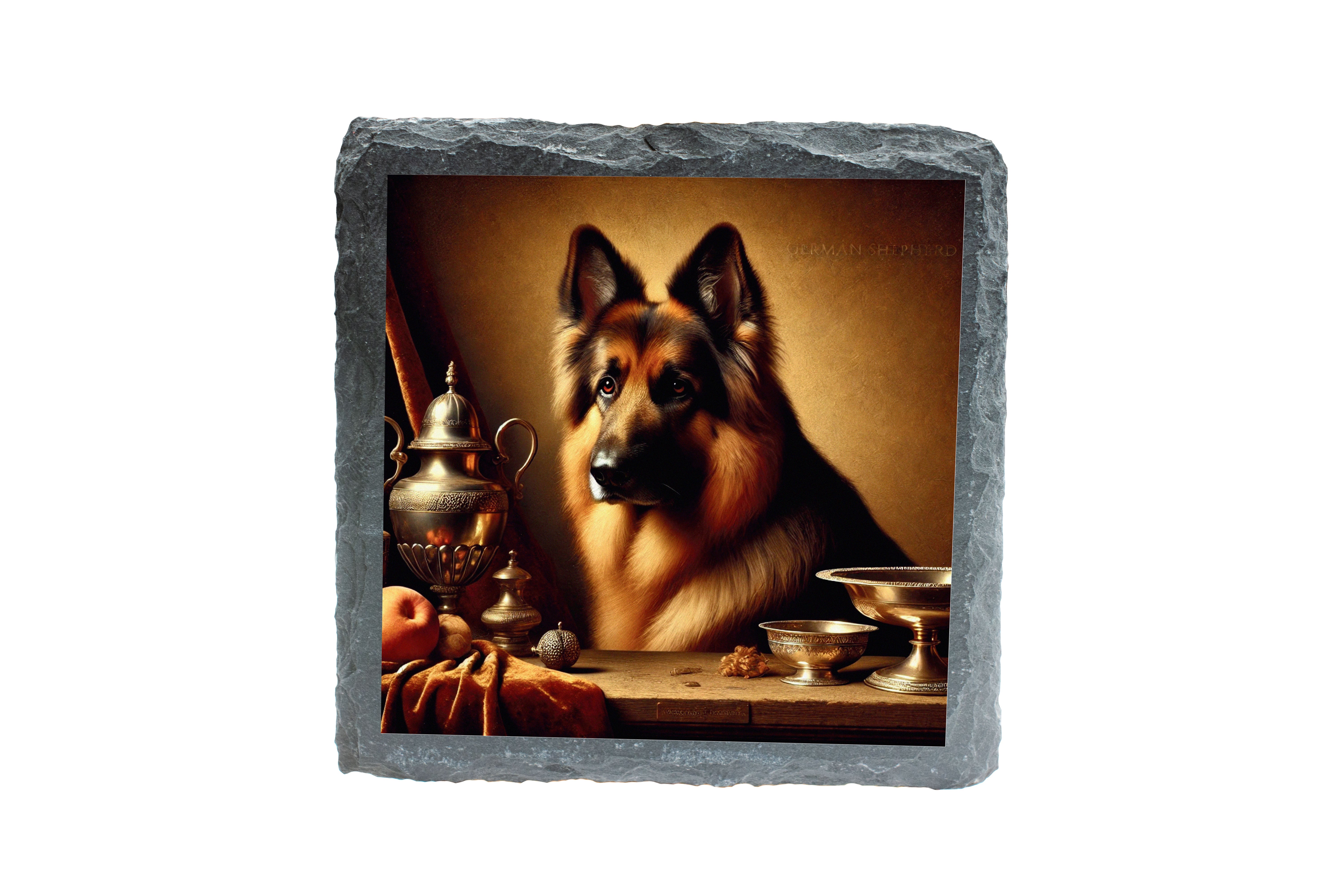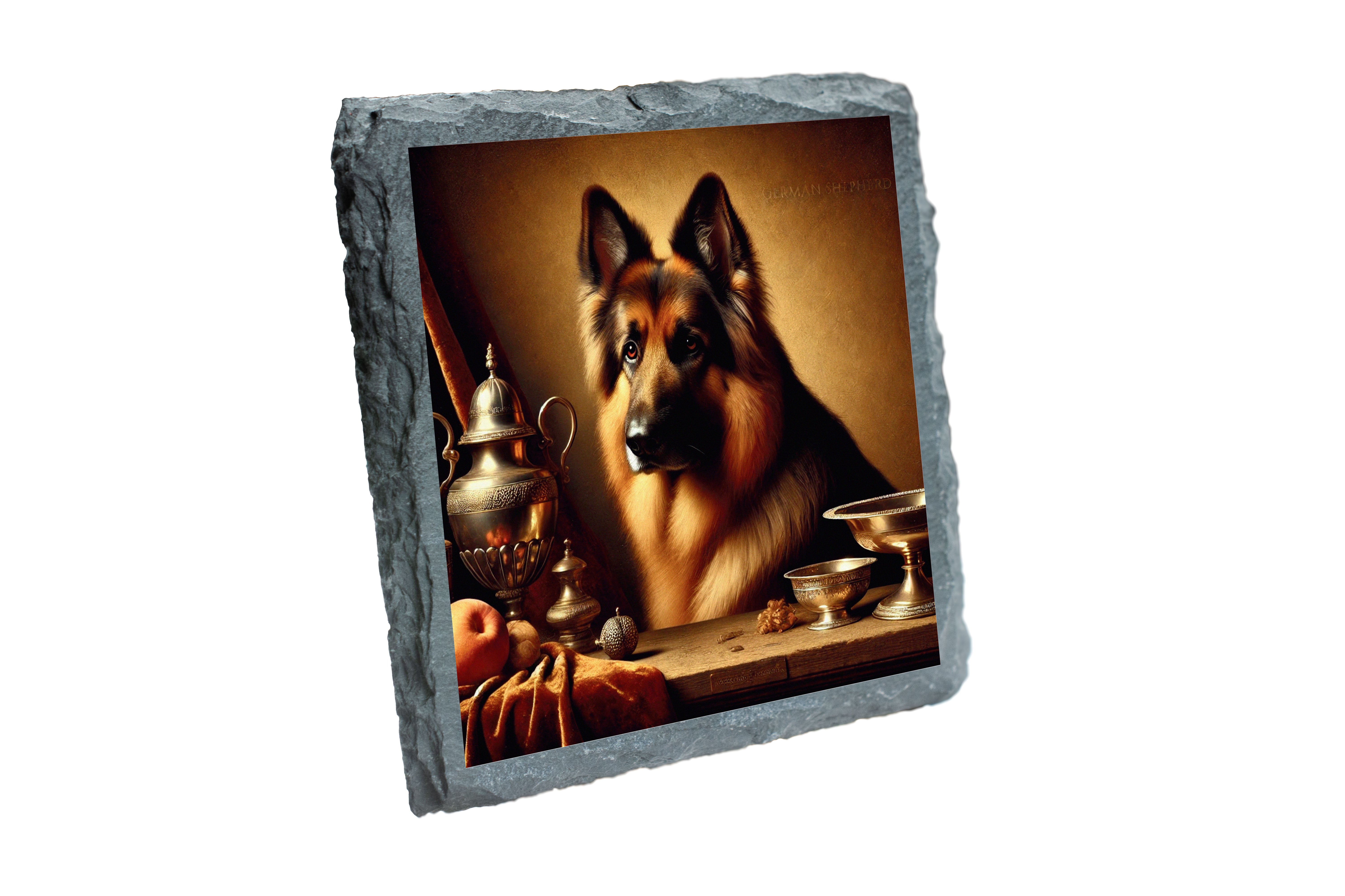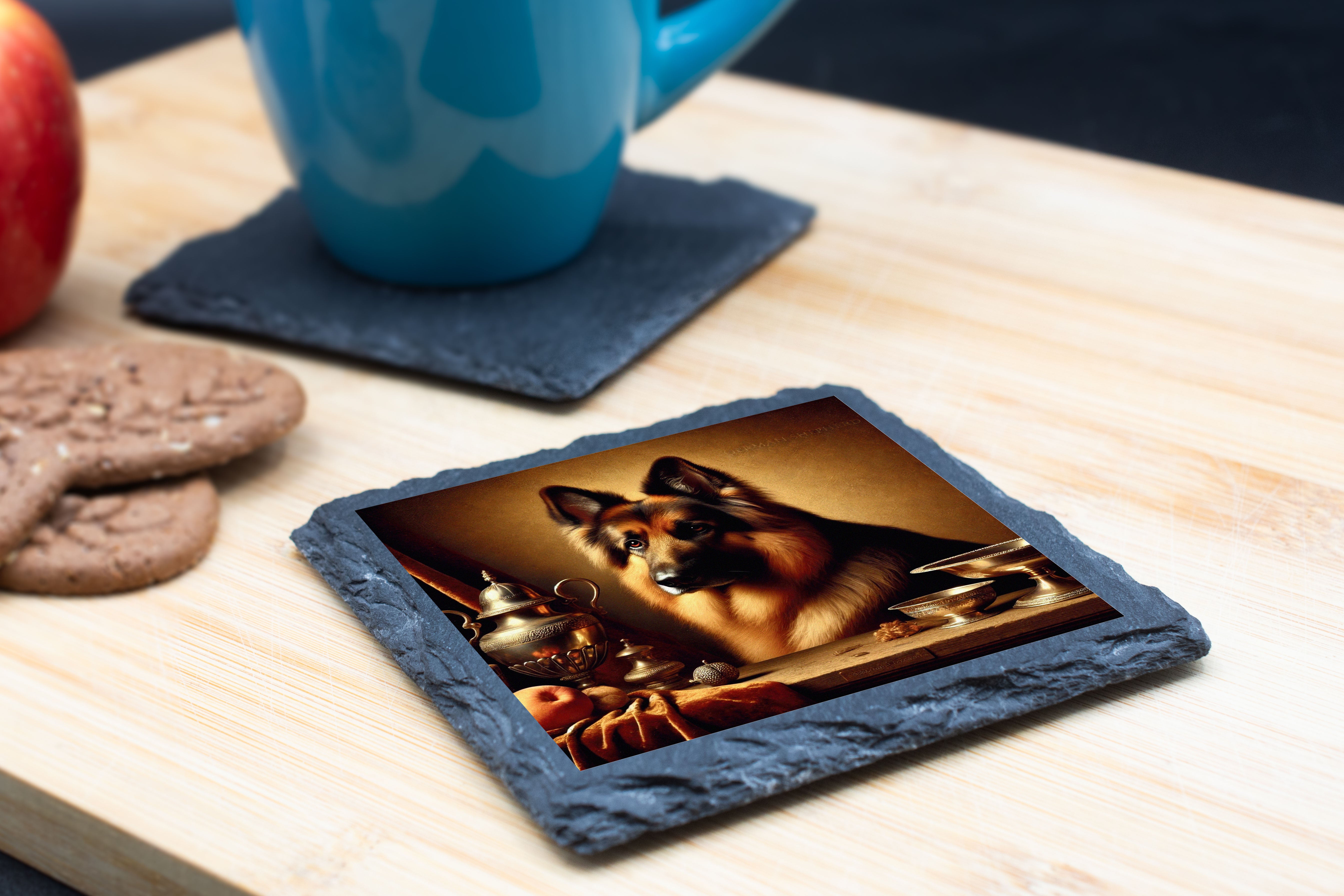 Elegant German Shepherd Slate Coaster Set - Vintage Art Design