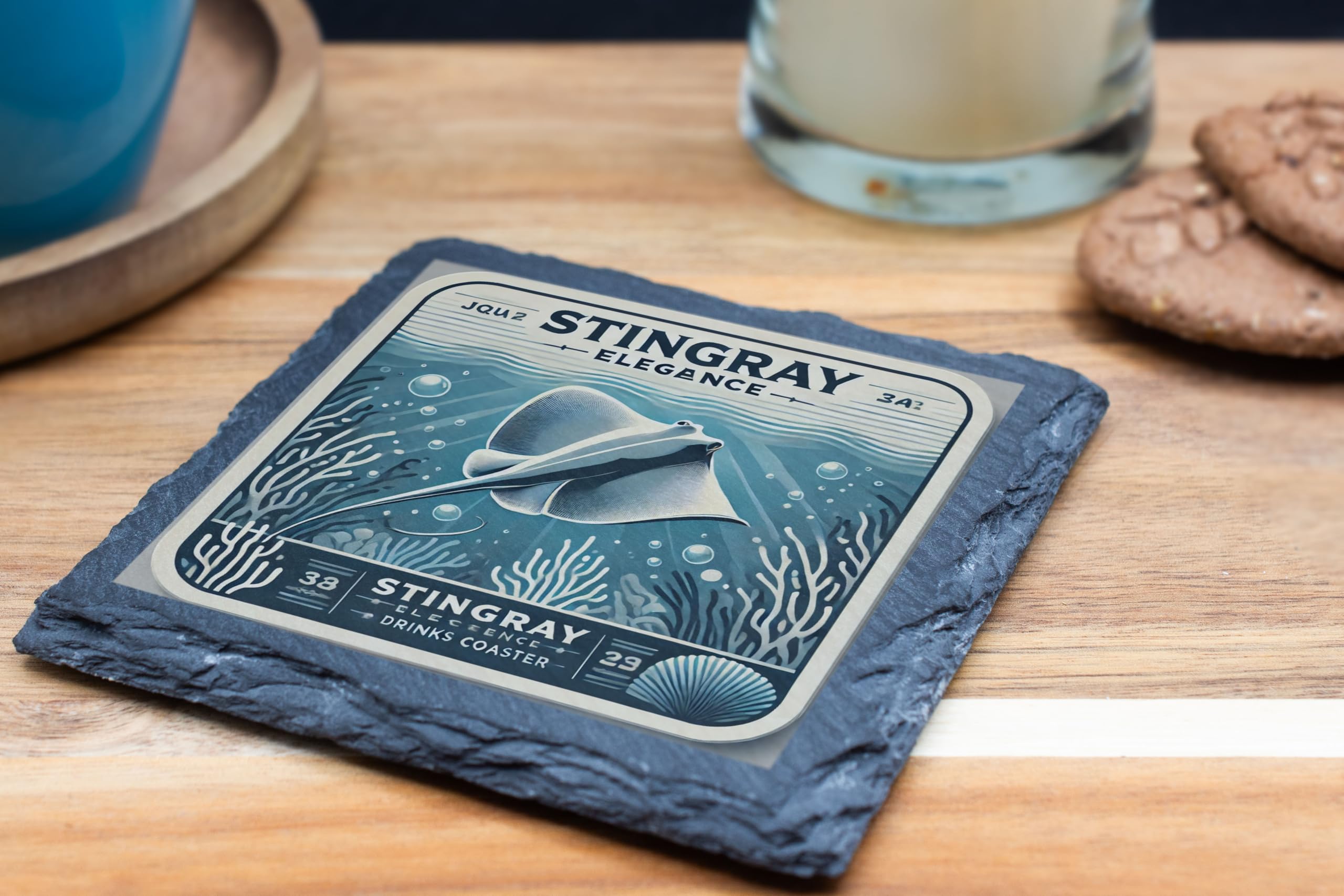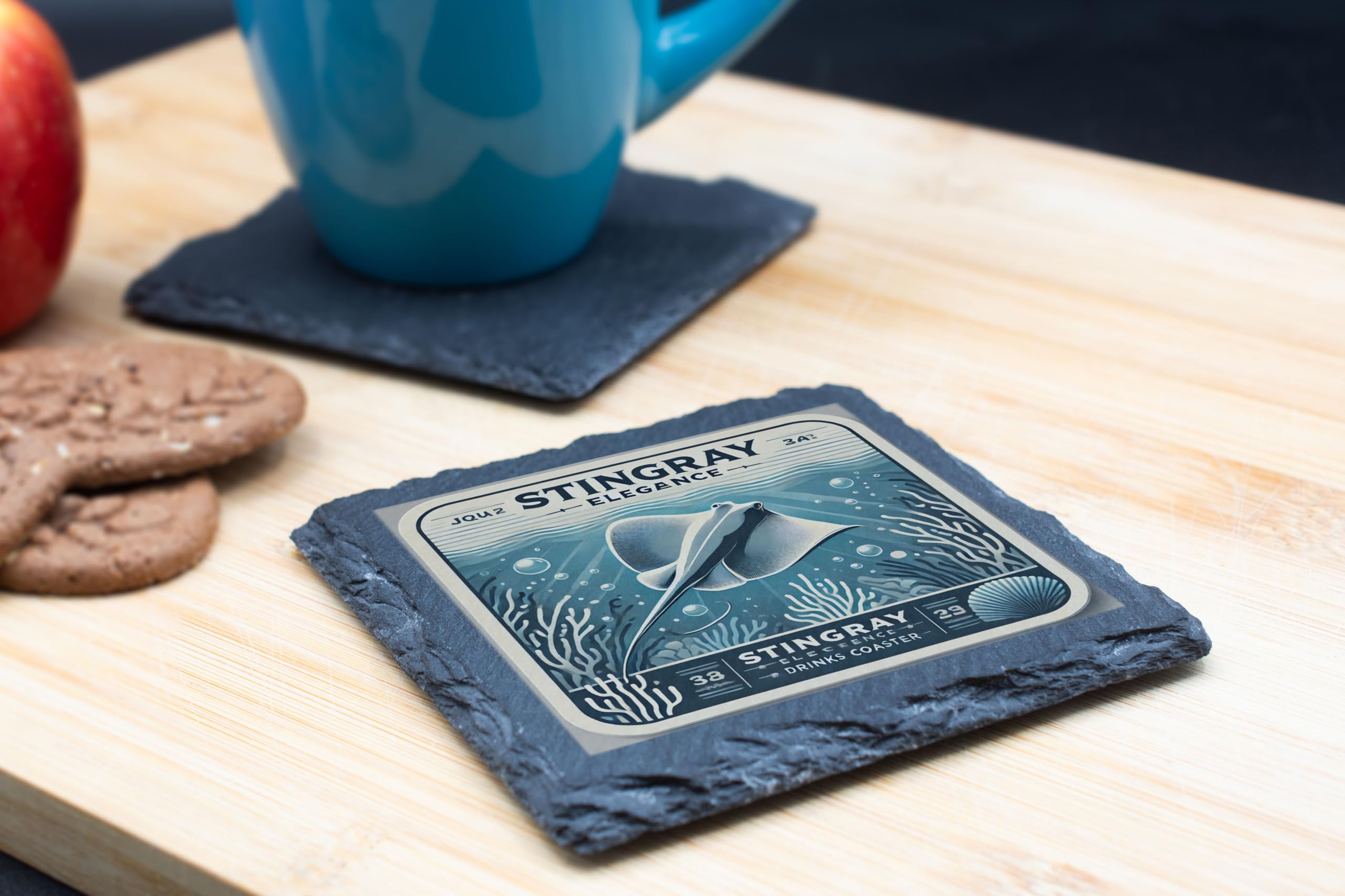 Bring the grace and mystery of the deep sea into your home with this exquisite Stingray Design Slate Coaster. Featuring a beautifully detailed illustration of a stingray gliding through coral reefs, this coaster is a stylish addition to any table or desk. The soothing blue tones and marine elements create a calming aesthetic that is perfect for ocean lovers and nature enthusiasts alike. Handcrafted from high-quality natural slate, this coaster combines functionality with elegance. Its robust construction protects your furniture from heat and moisture, making it ideal for everyday use or special occasions. The natural texture of the slate adds a rustic charm, while the intricate artwork ensures it stands out as a decorative piece. Perfect as a gift for marine enthusiasts, this coaster is a unique and thoughtful choice. Whether for your coffee table, dining room, or office, the Stingray Design Slate Coaster is sure to make waves in any setting. Add this eco-friendly and artistic piece to your collection today!