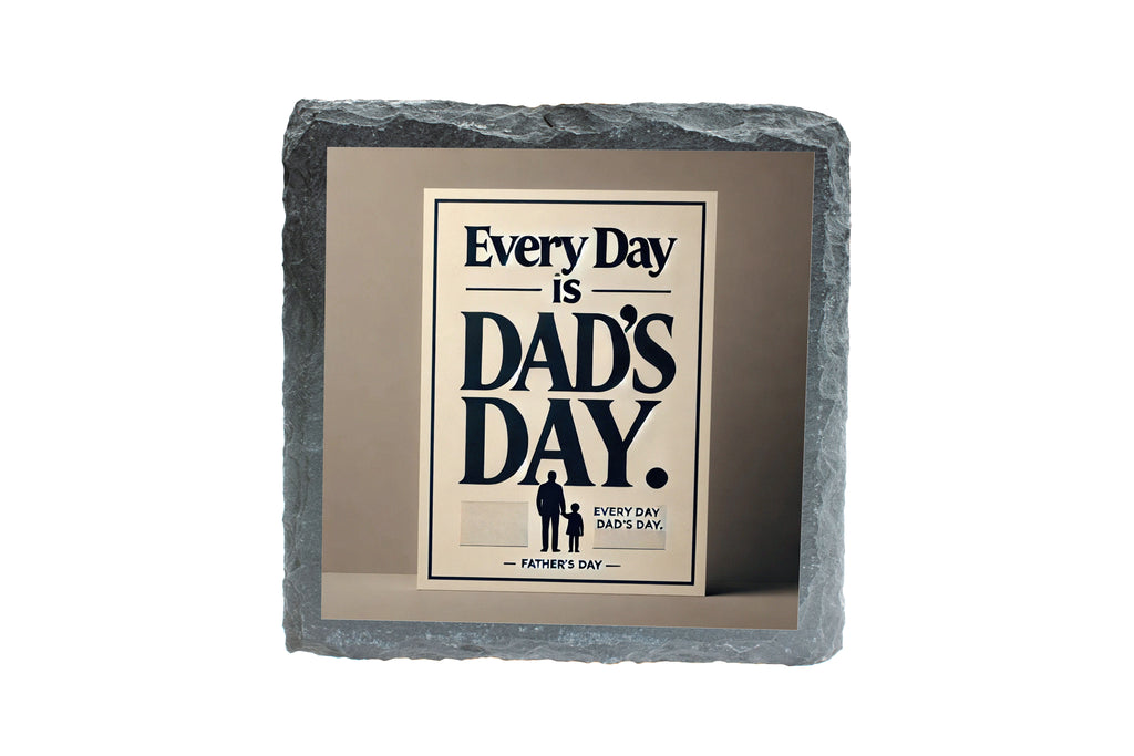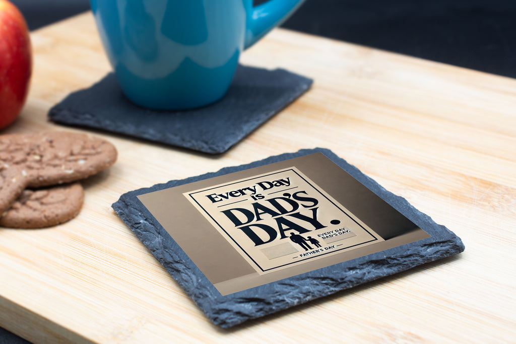 This slate coaster is the perfect gift for any father. Featuring a stylish design with a father and child silhouette, it proudly displays the message "Every Day is Dad's Day." Crafted from high-quality slate, this coaster offers both durability and elegance, making it a thoughtful addition to any home or office. Ideal for Father's Day or as a daily reminder of the special bond between father and child, this coaster adds a personal touch to any space. It’s a practical yet meaningful gift that will be cherished for years to come.