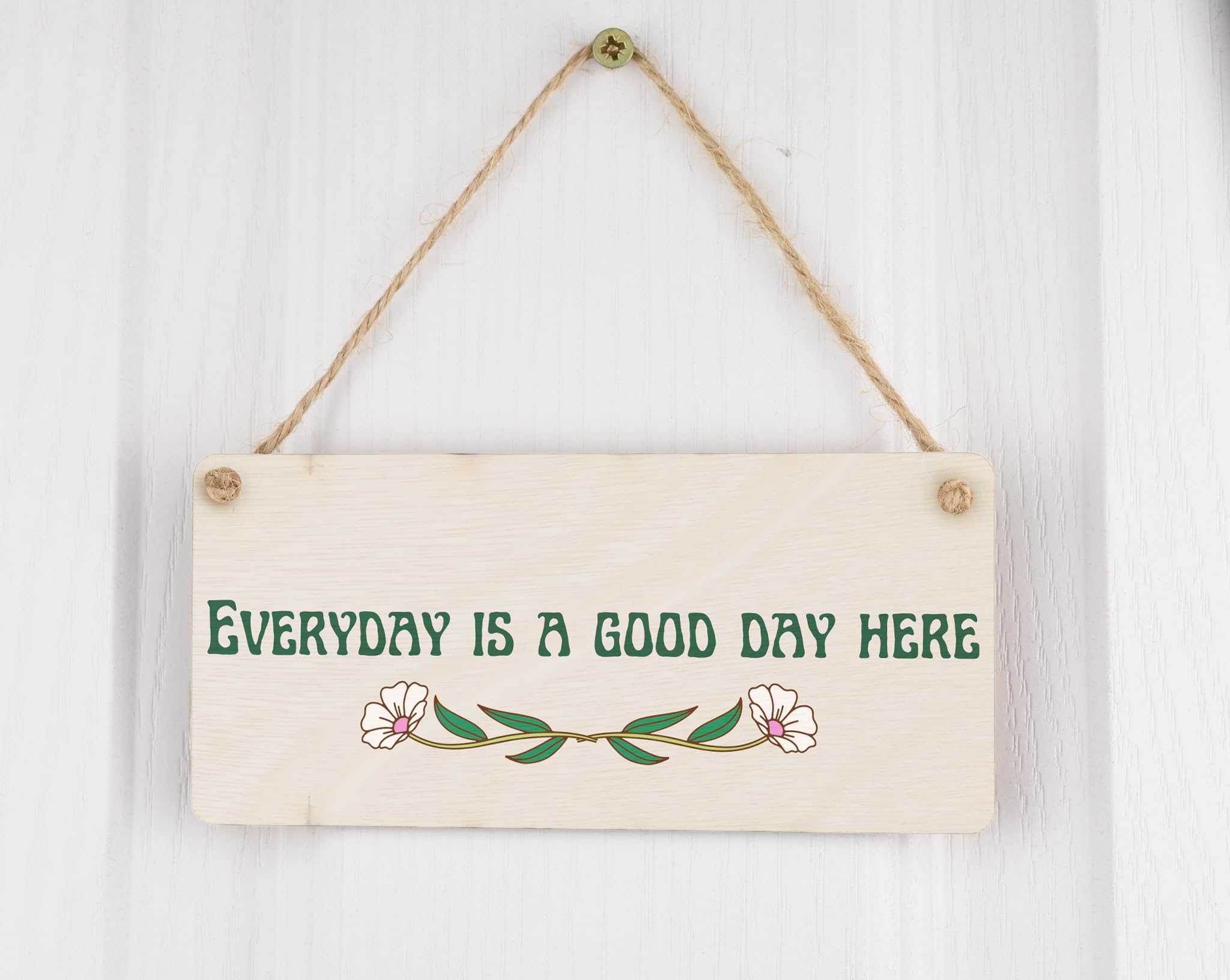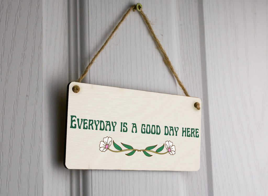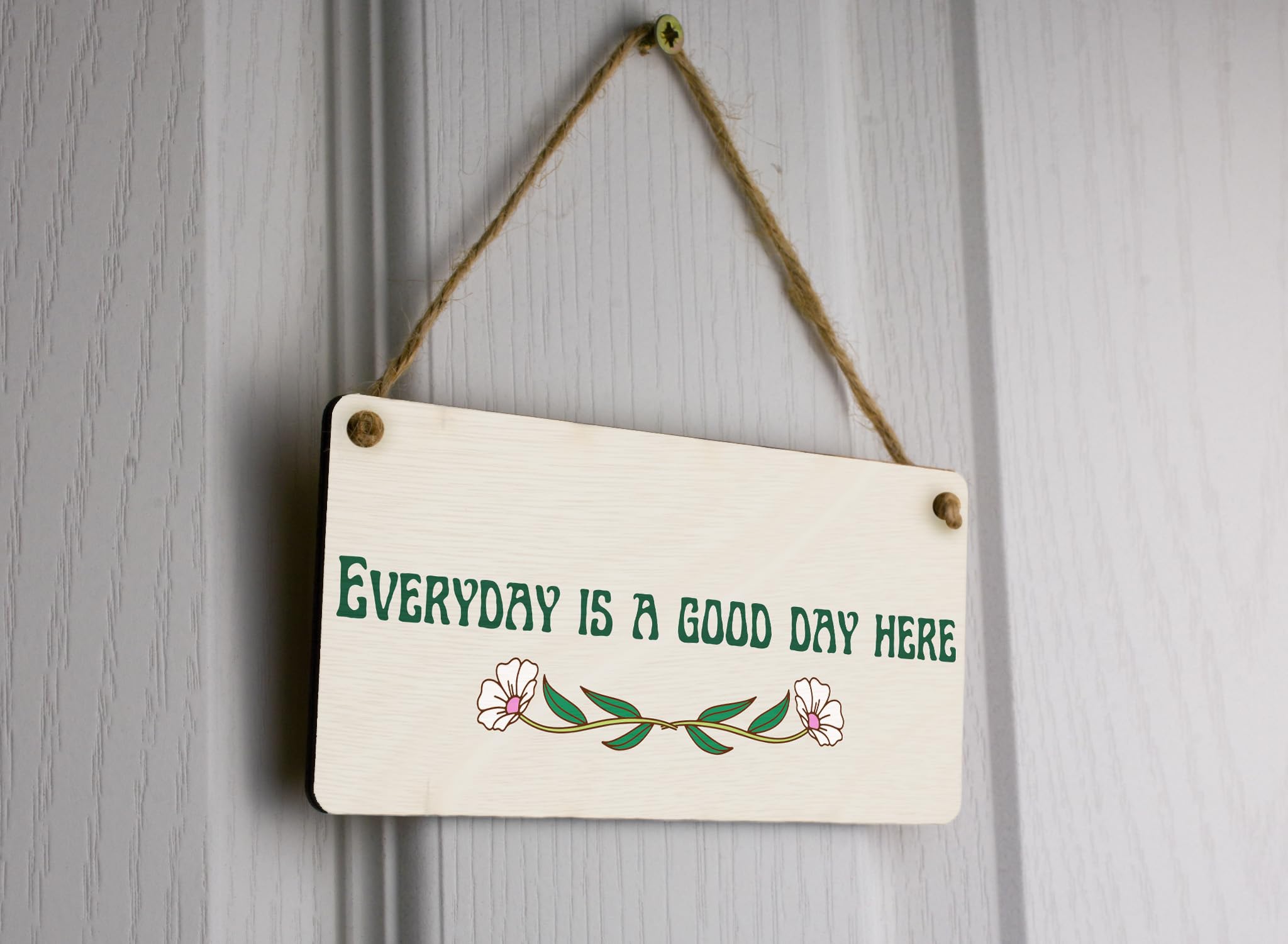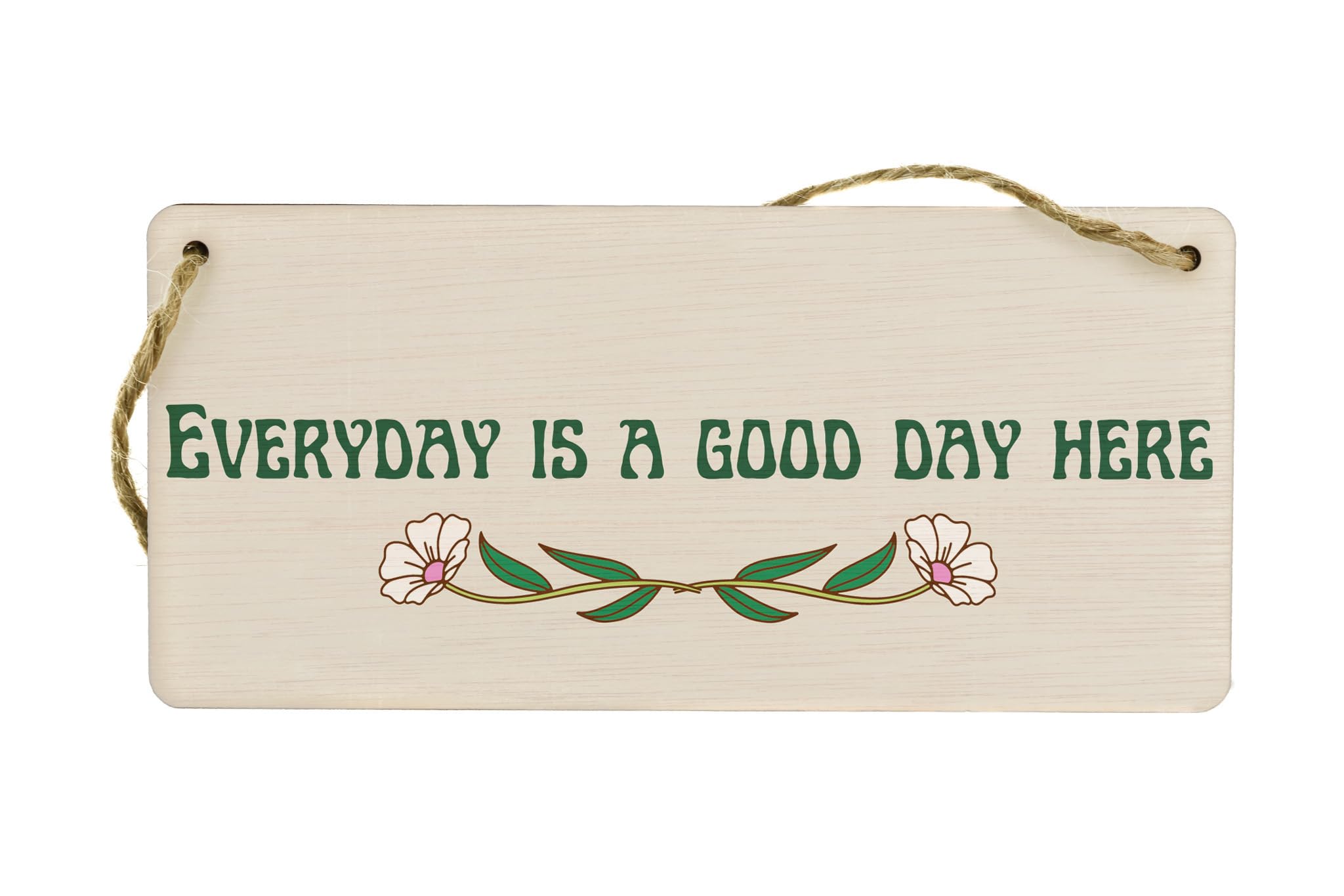 - Inspiring and uplifting design that reads 'everyday is a good day here'