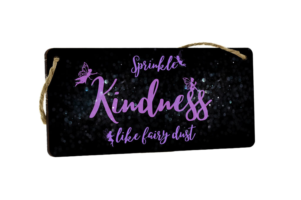 - High-quality plywood sign that reads 'Sprinkle kindness like fairy dust'