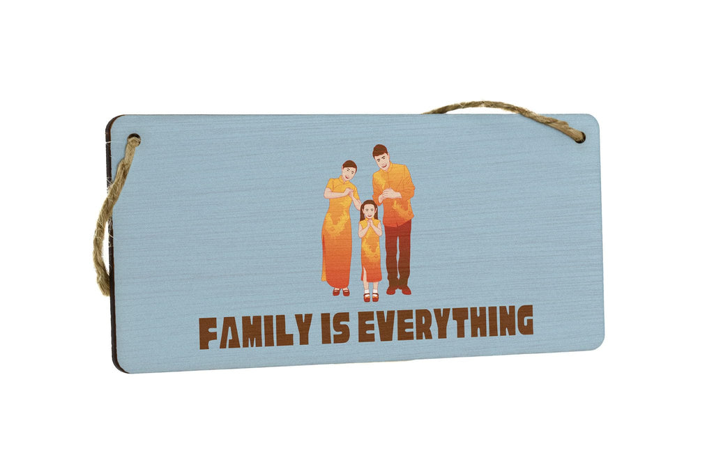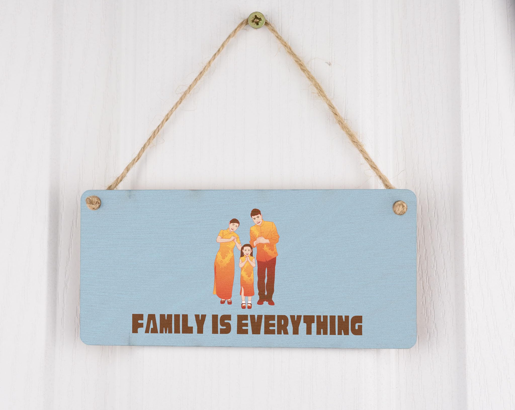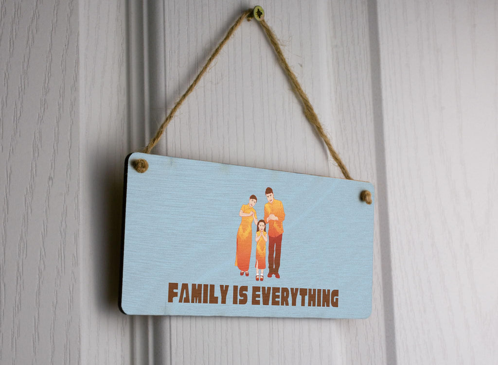 Add a touch of warmth and love to your home decor with our Family is Everything - Plywood Hanging Sign. This beautiful sign is a perfect gift for your wife, husband, girlfriend, boyfriend, sons, daughters, and siblings. Made of quality plywood, this sign features a full colour design with a captivating image of parents and child, reminding us that family is everything. The sign is designed with a stunning blue background and brown writing, creating a harmonious and stylish look. Whether you place it in your living room, bedroom, hallway, or even on your door, this sign will surely make a statement and bring a sense of togetherness to your home.