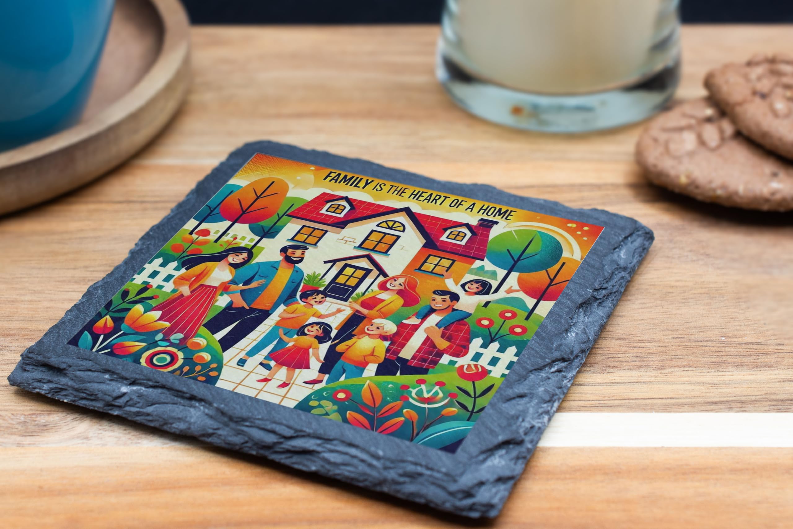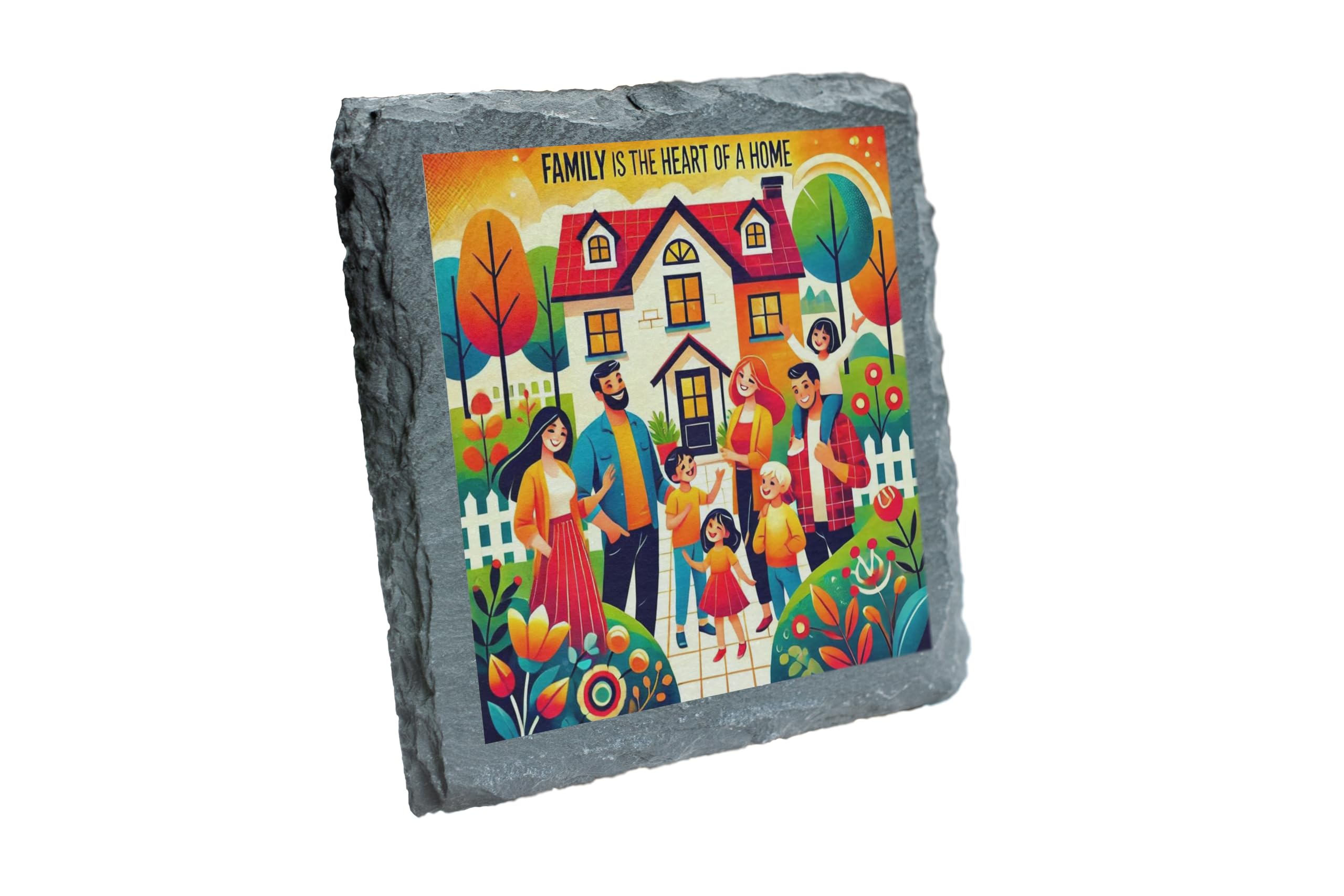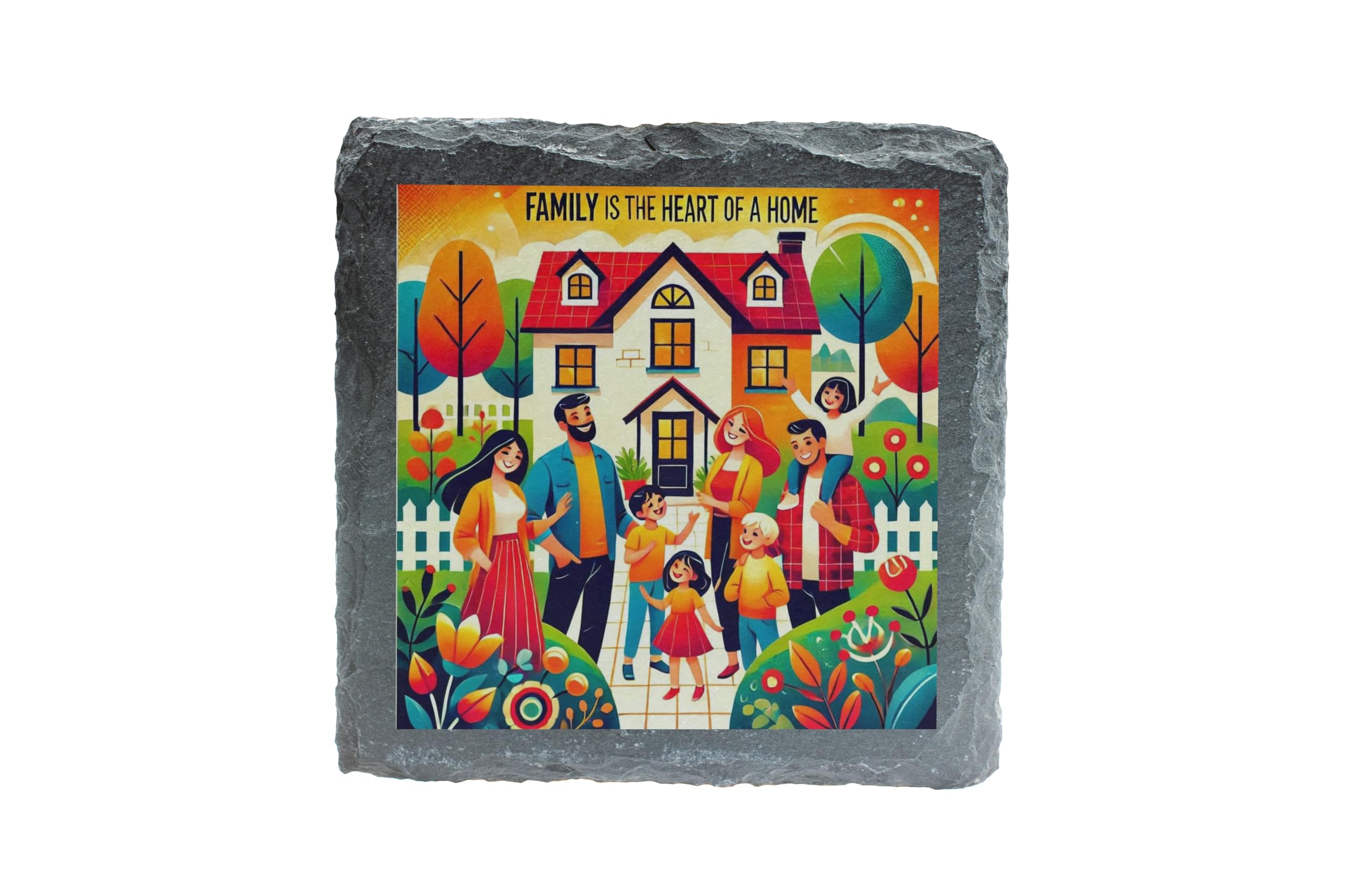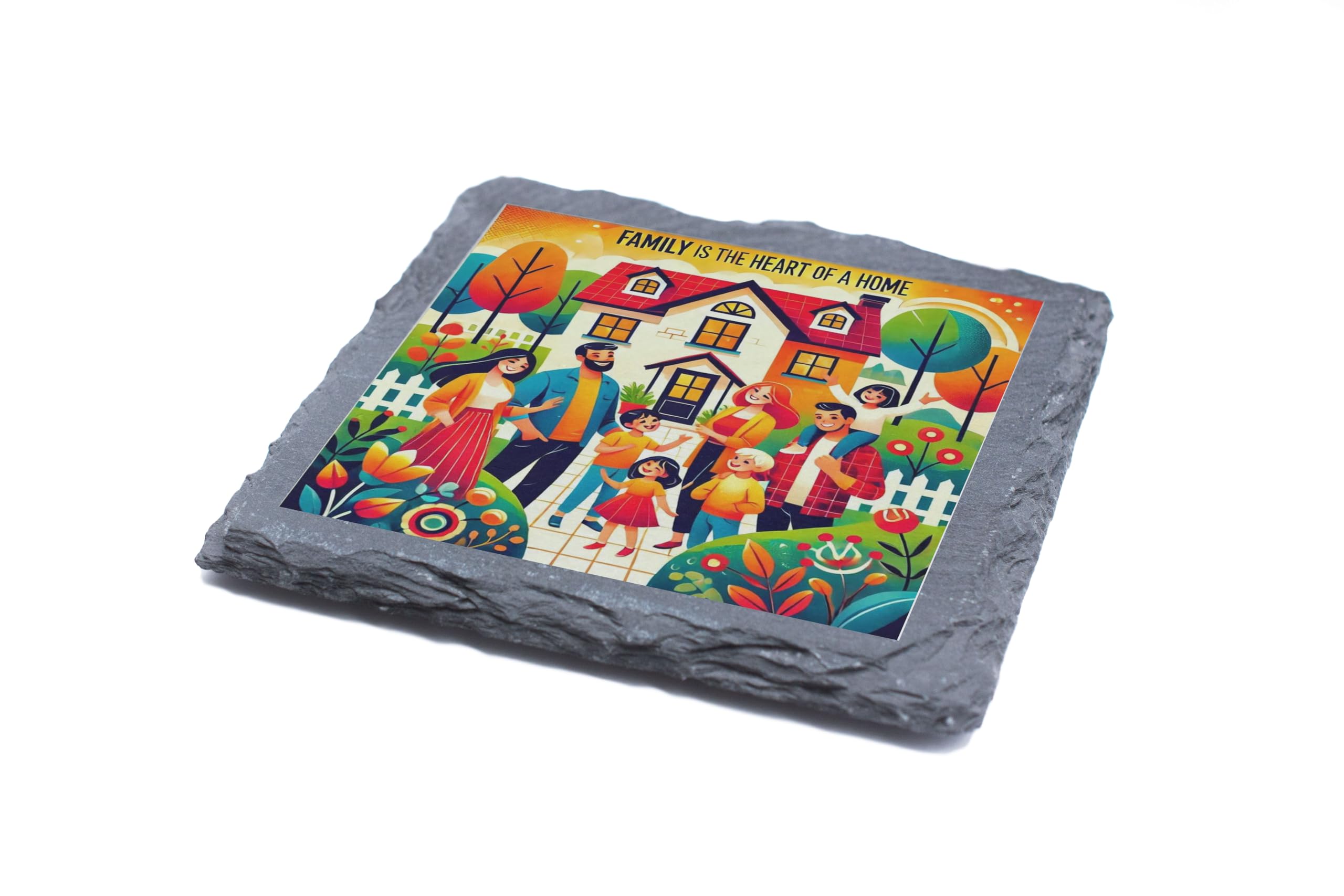 Celebrate the beauty of family with this charming "Family is the Heart of a Home" Slate Coaster. Its colorful and heartwarming design captures the essence of love and unity, making it a perfect addition to your home decor. Made from high-quality natural slate, this coaster not only protects your surfaces but also adds a cheerful and inviting vibe to any space. Whether you're enjoying a quiet coffee or hosting a family gathering, this coaster is a reminder of what truly makes a house a home?family. It also makes a meaningful gift for loved ones to cherish forever.