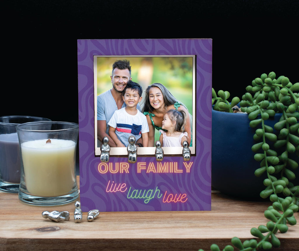 Family Love Laser Cut Plywood Photo Frame with Tin Figurine (inpolo-ds23-livelaughloverg)