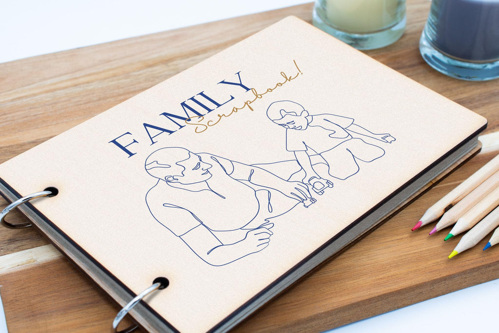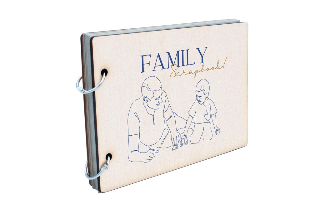 Capture all your precious family memories in this beautiful Family Moments Memory Book. This keepsake book is perfect for preserving your family history and creating a cherished family collection. The memory archive features 25 recycled pages where you can compile your family photos and document your family moments. This family scrapbook is designed with a wooden cover that reads 'Family Moments Memory Book' and a full-colour front cover showcasing a father and his son playing together. Add this elegant photo album to your home and start creating your family heritage storybook today!