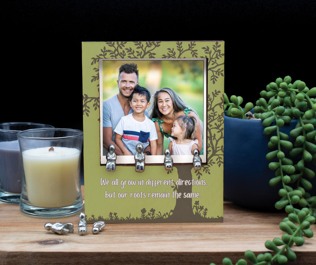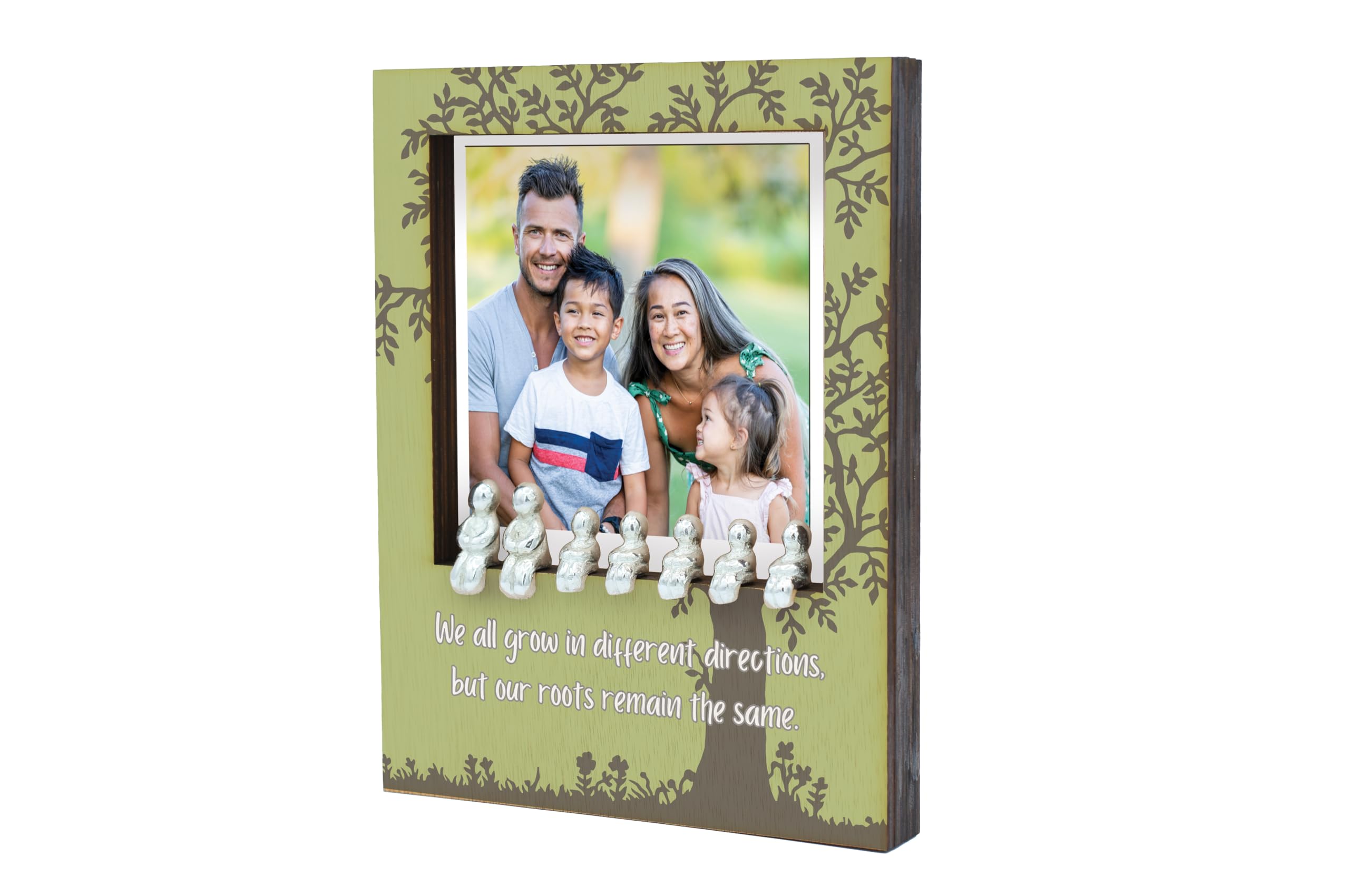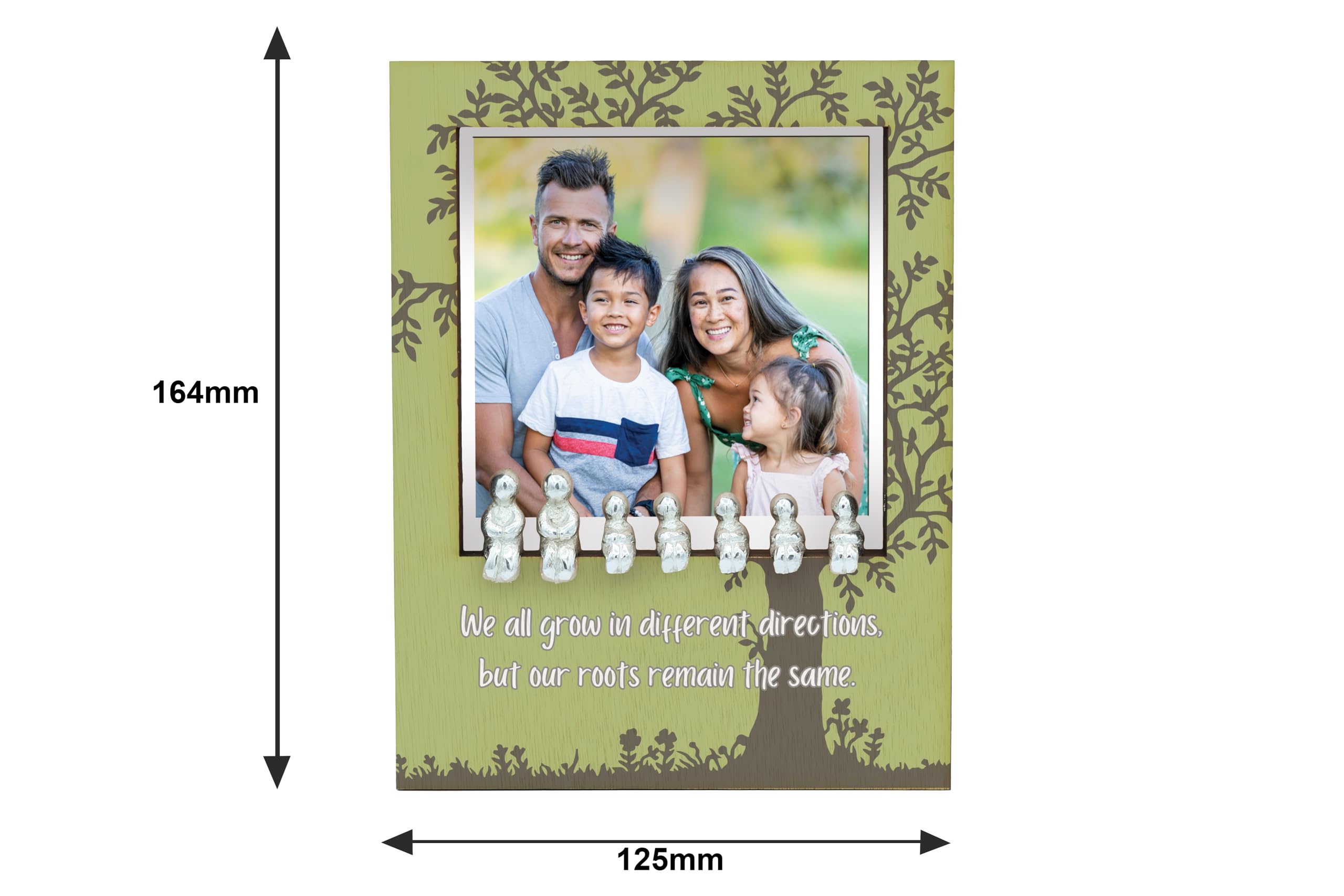 The Family Roots Remain: Personalized Photo Frame Set is the perfect gift idea for Mum's birthday, Christmas, or Mother's Day. This unique family ornament allows you to create your own family combination with a 7-piece set and little people slot in front. The colourful design of this family photo frame will brighten up any room and remind you that no matter how much we grow, our roots remain the same. It's a heartfelt gift that will be cherished for years to come. Family tree design. Each ornament set comes with 7 pieces containing 2 adults and 5 children, you can use these pieces to create your own family combination on the front of the frame/Ornament. So for example you have 2 children then you would only use 2 children in the display. This is a really unique and wonderful family ornament for the home.