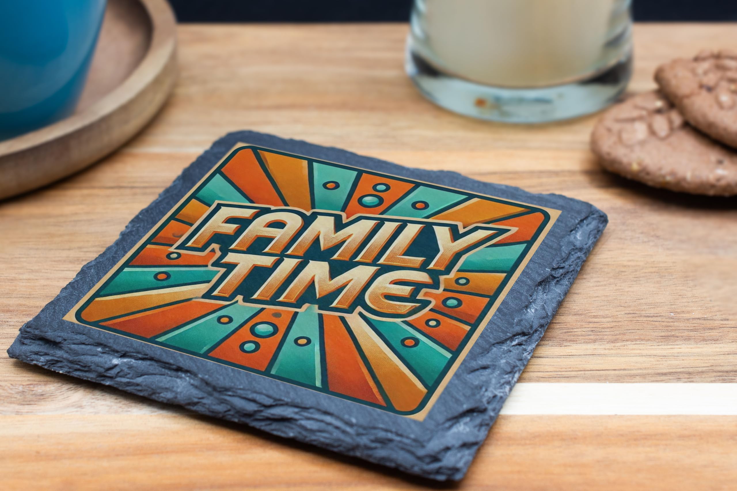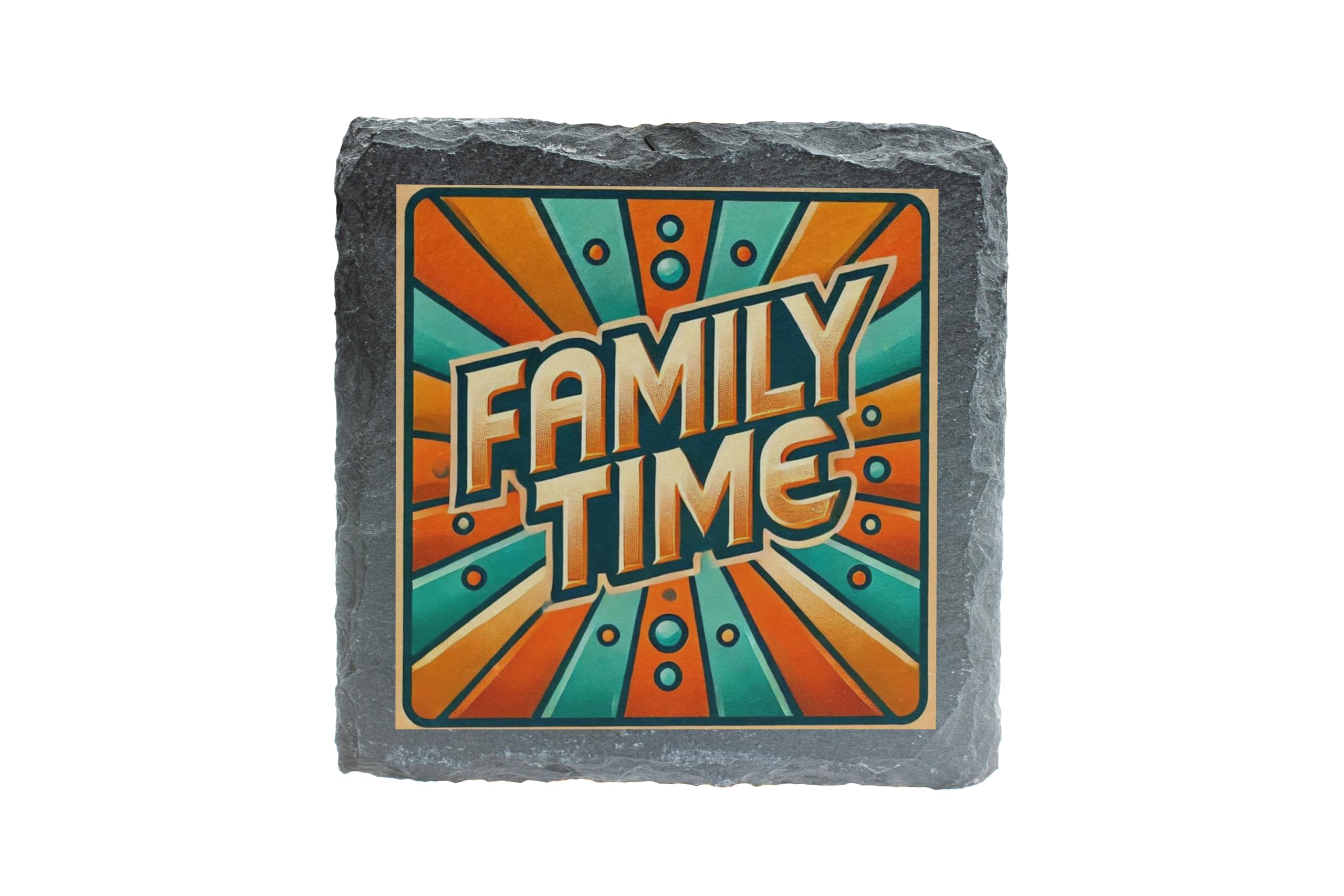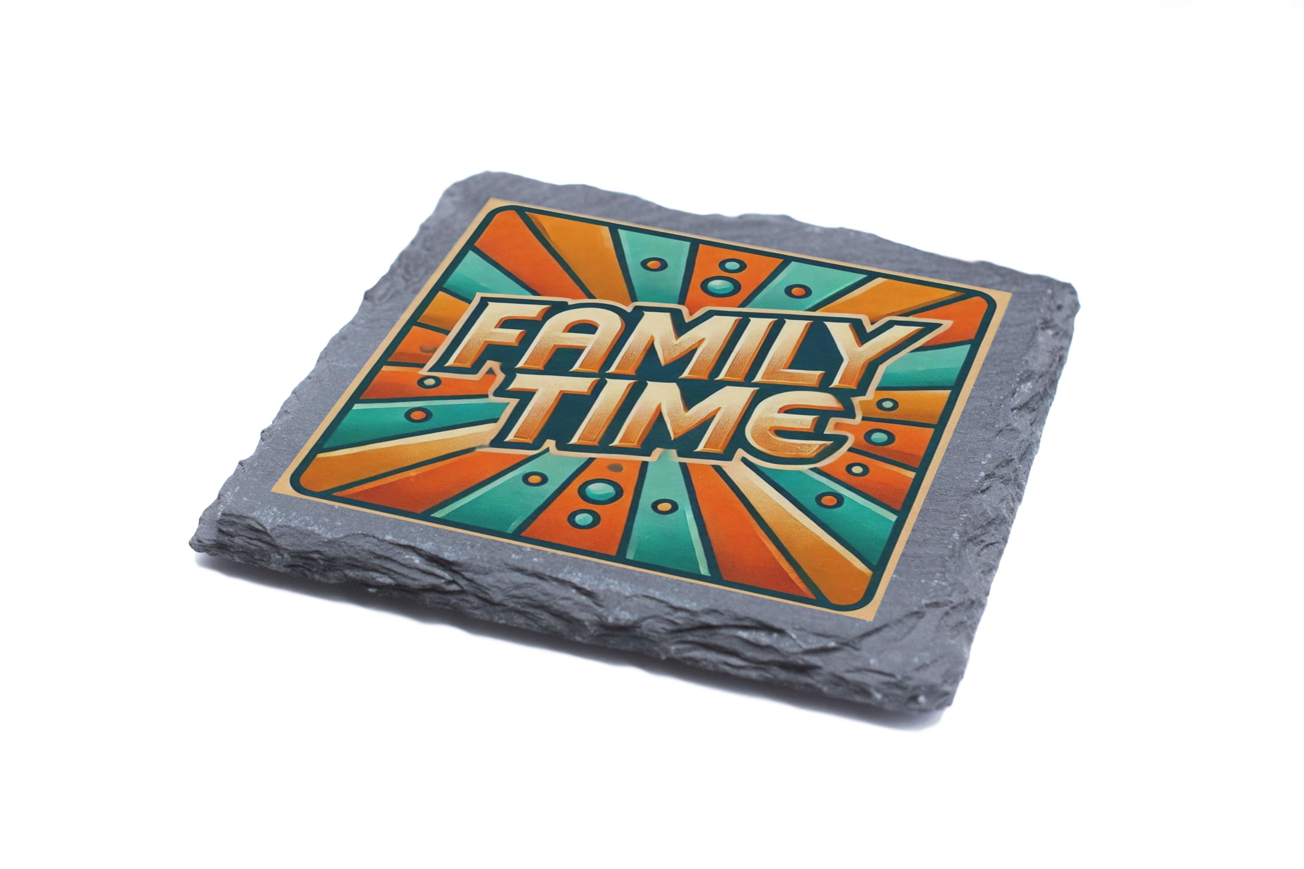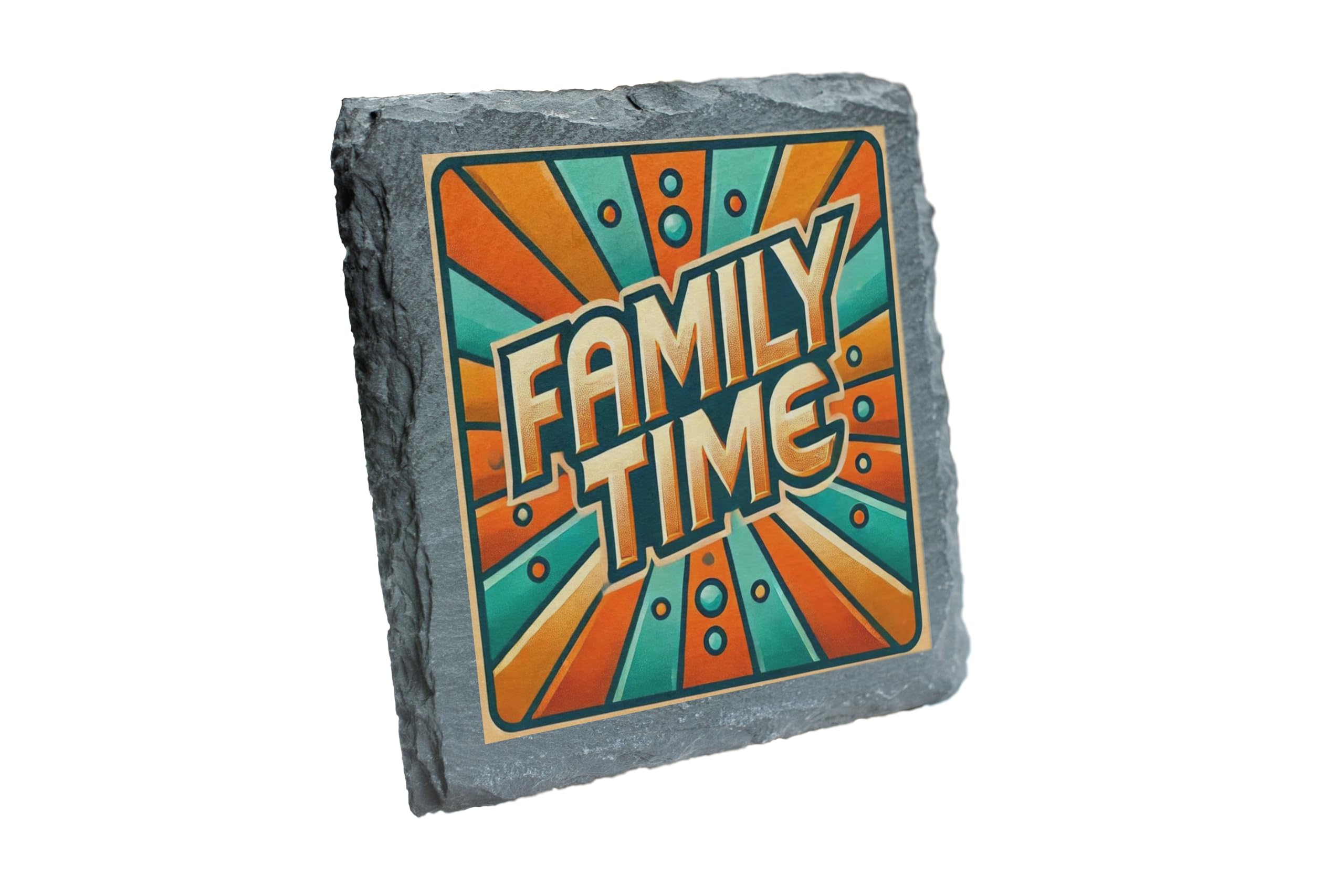 Family Time Slate Coaster ? Vibrant Retro Design (slco-ds24-timefamrg)