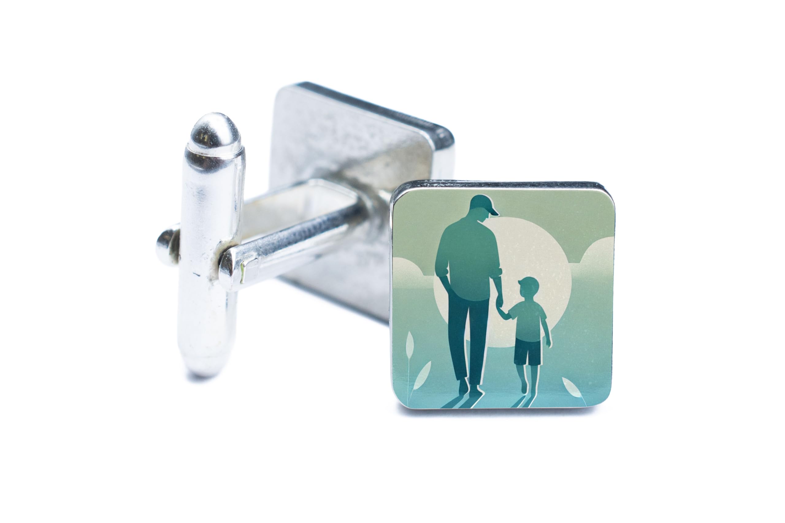 Celebrate the cherished bond between a father and son with these Father and Son Cufflinks. Featuring a heartfelt silhouette design of a father holding his son?s hand, these cufflinks make a meaningful and stylish gift for dads. Crafted from high-quality stainless steel, these cufflinks are both durable and elegant, offering a polished finish that complements any outfit. Whether for Father?s Day, a birthday, or just to show your appreciation, these cufflinks are a touching way to honor the special connection between father and child. Packaged in a sleek gift box, they?re a thoughtful and ready-to-give gift for any father figure. The secure toggle back closure ensures ease of wear and a comfortable fit, making them perfect for both formal occasions and everyday use. Show your love and appreciation for dad with these beautiful and symbolic cufflinks ? a timeless accessory he?ll treasure forever.