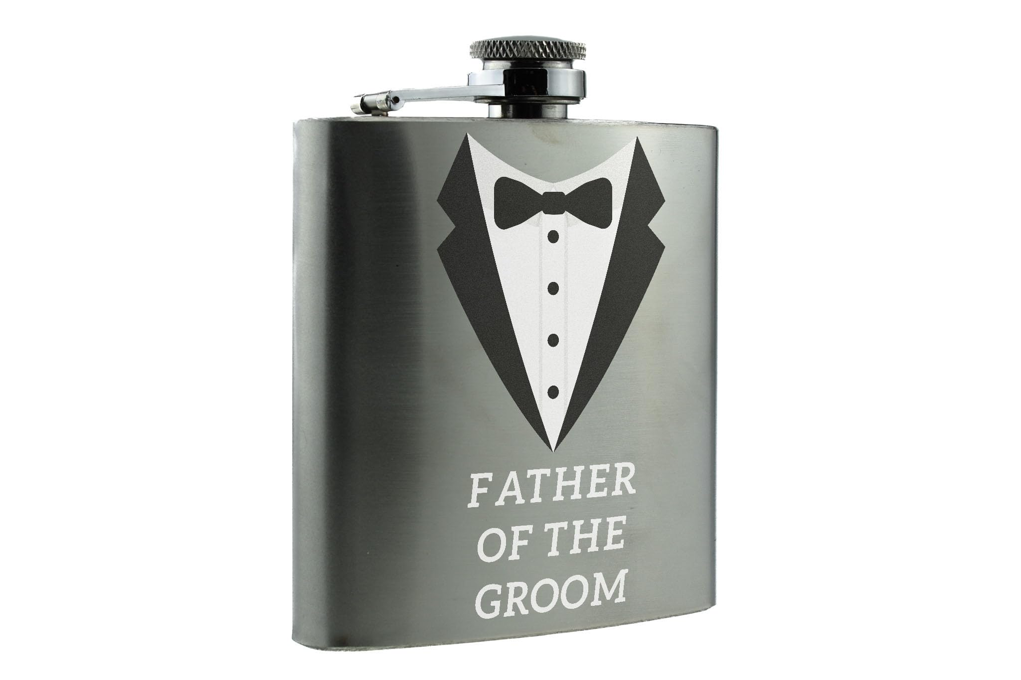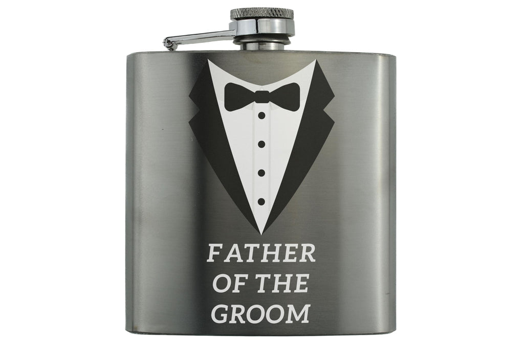 • Stainless steel flask with a tuxedo design - perfect for the Father of the Groom