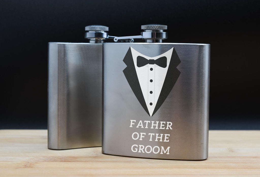 Father of The Groom Wedding Gift Stainless Steel Flask with Tuxedo Design (hip-ds23-dadgroomrg)