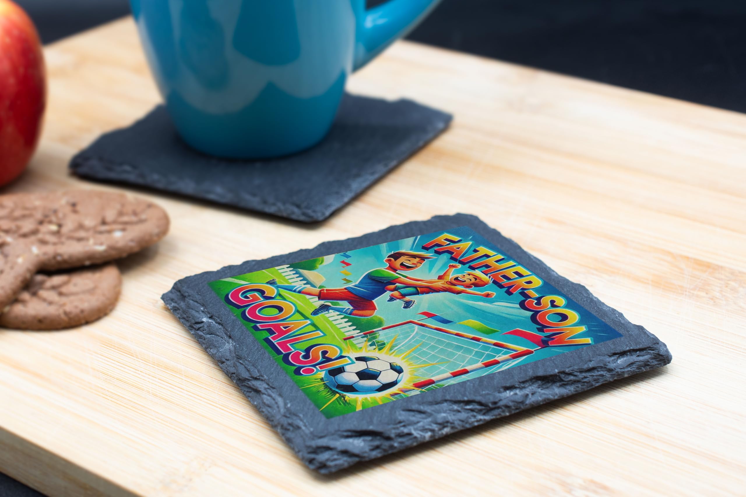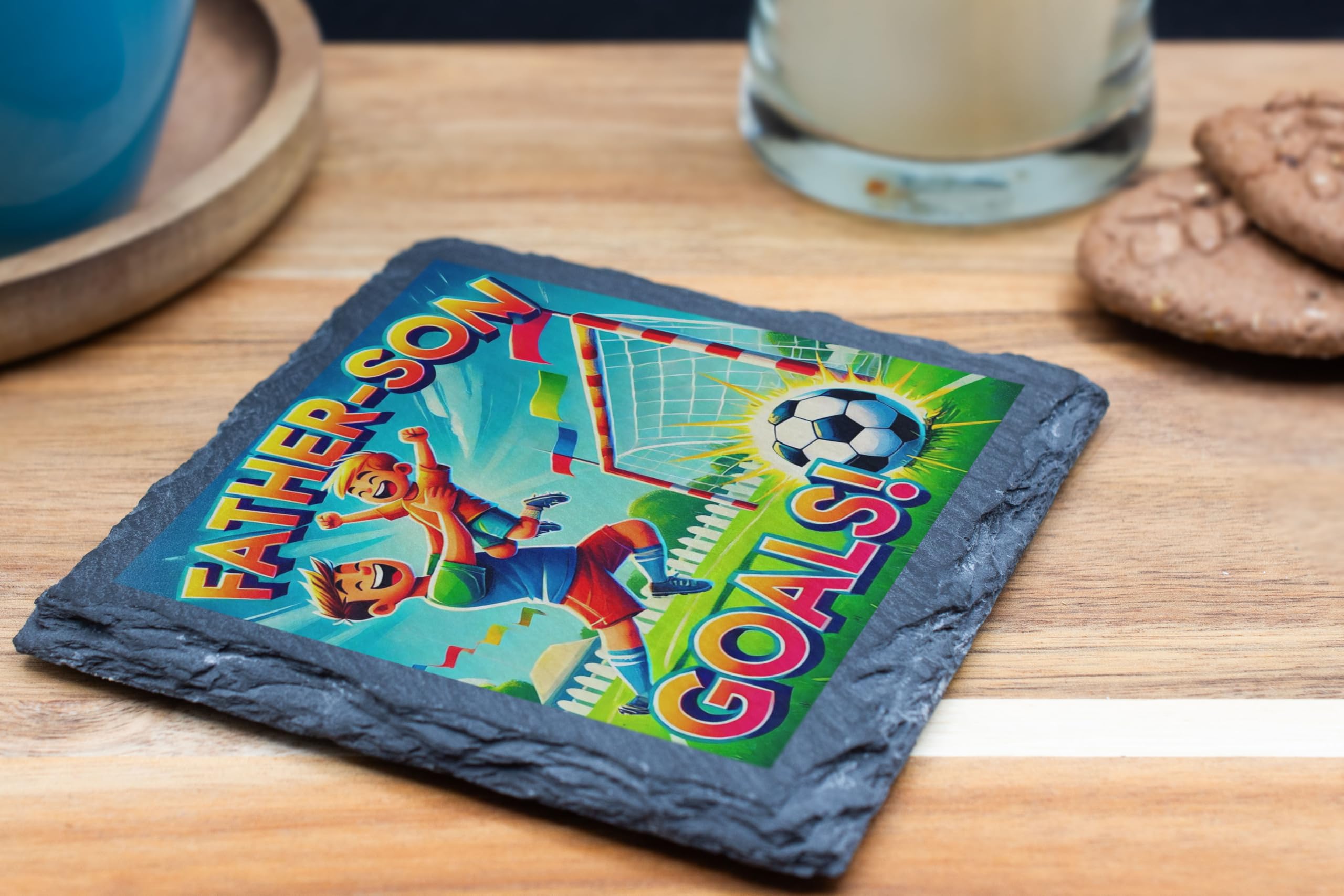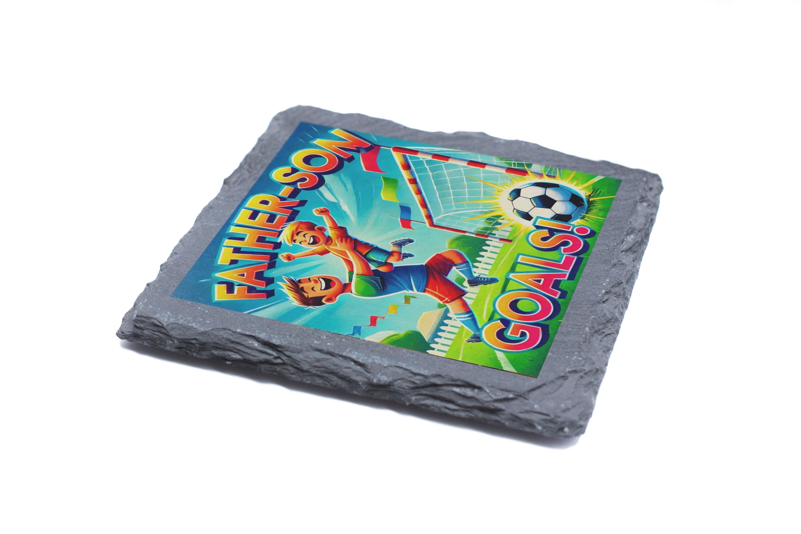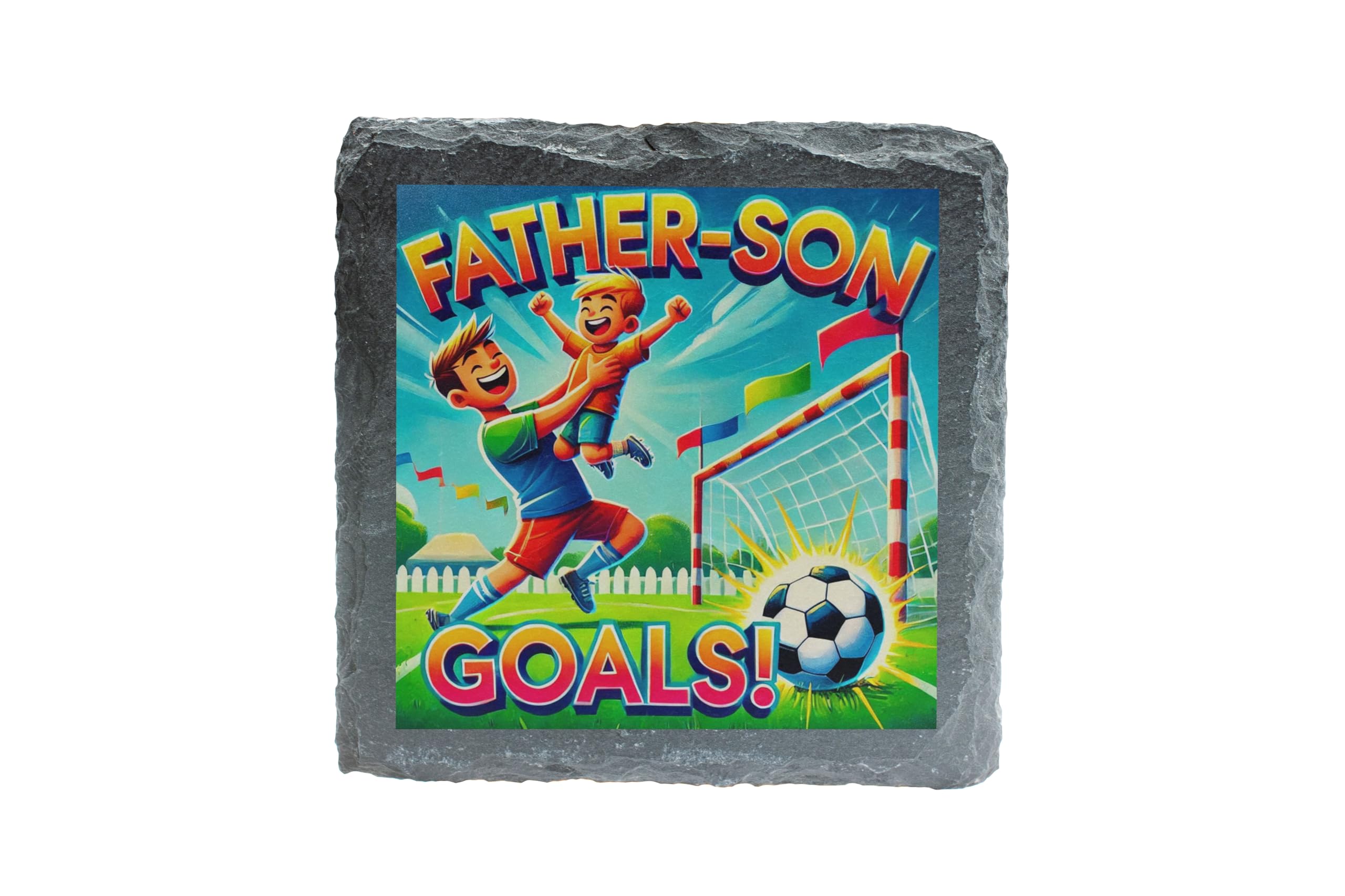 Father-Son Goals! Soccer-Themed Slate Coaster for Soccer Fans & Family Moments (slco-kf25-footballdad&songoalsdb)