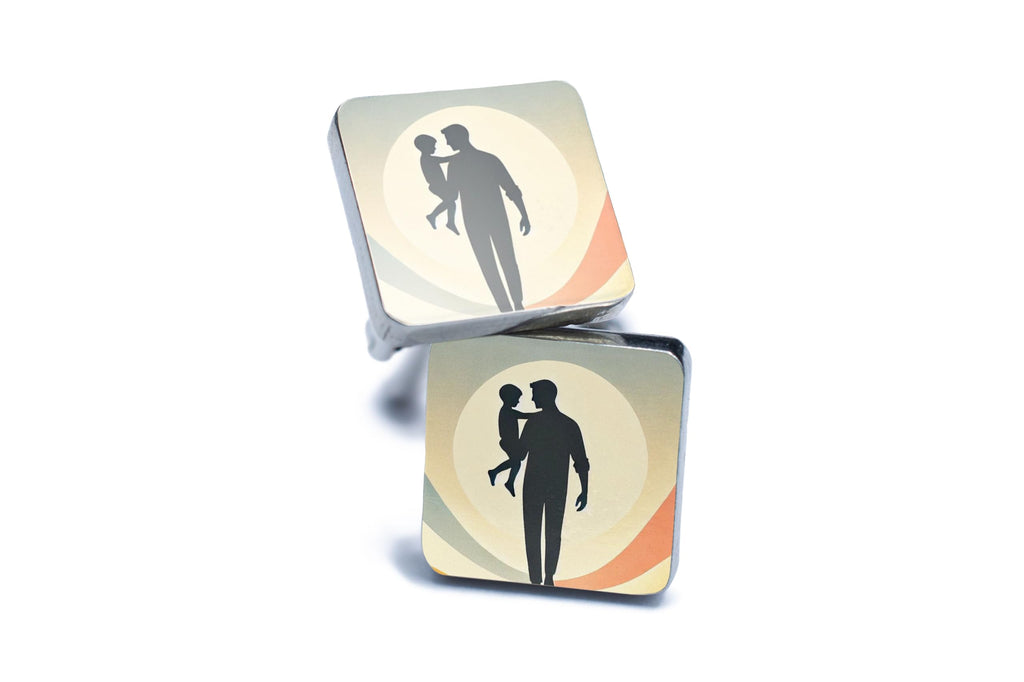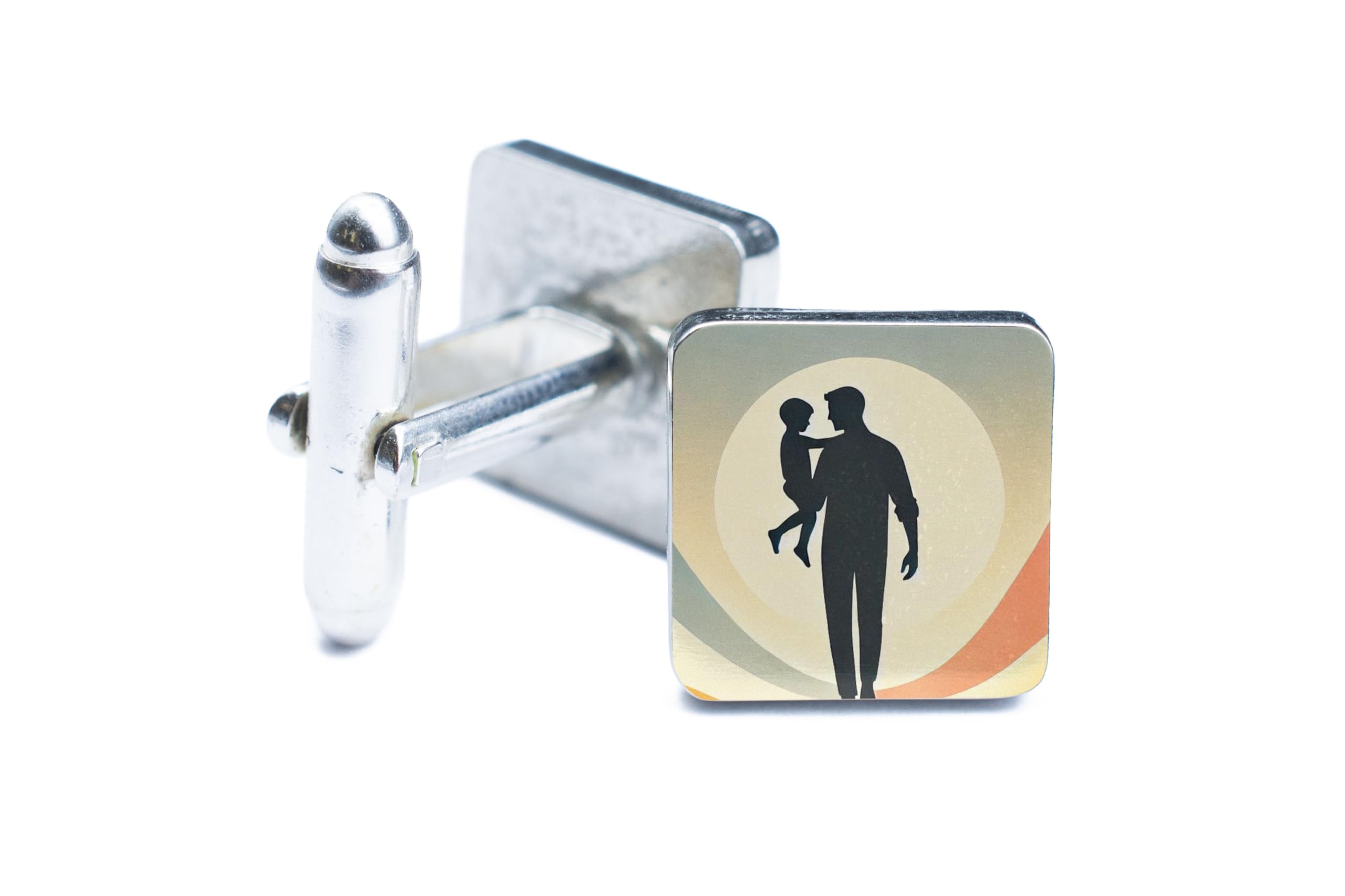 - UV printed cufflinks featuring a heartwarming father-child silhouette design