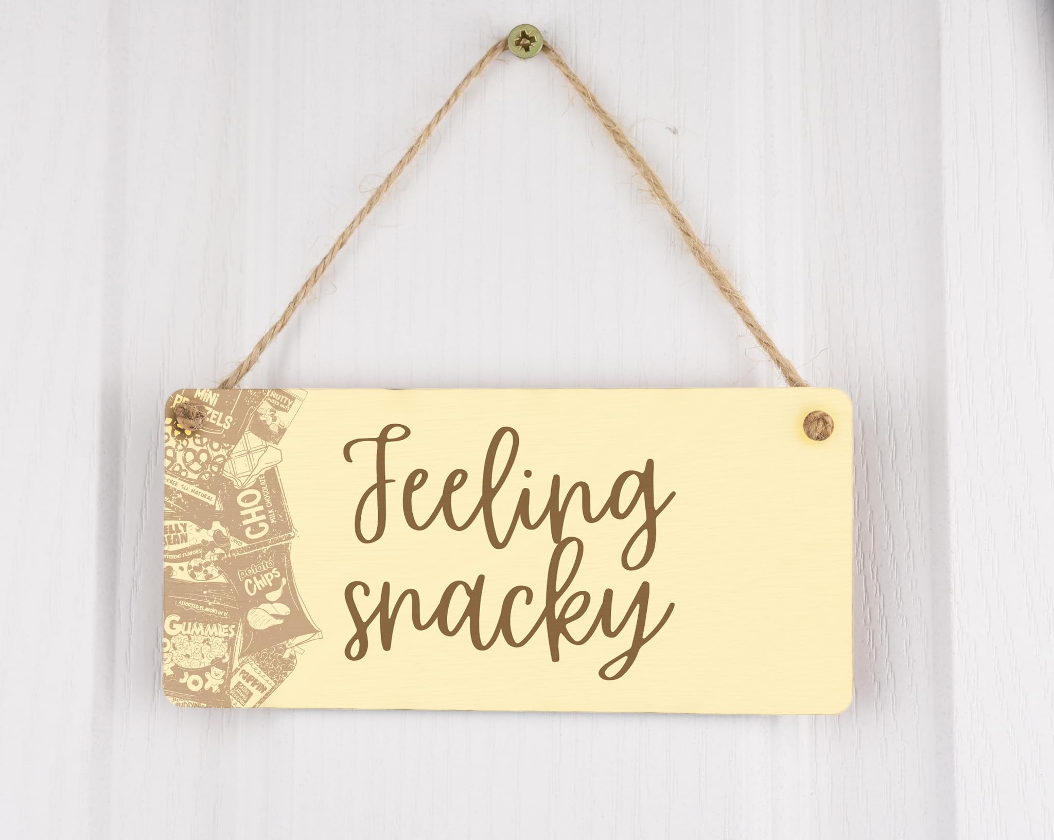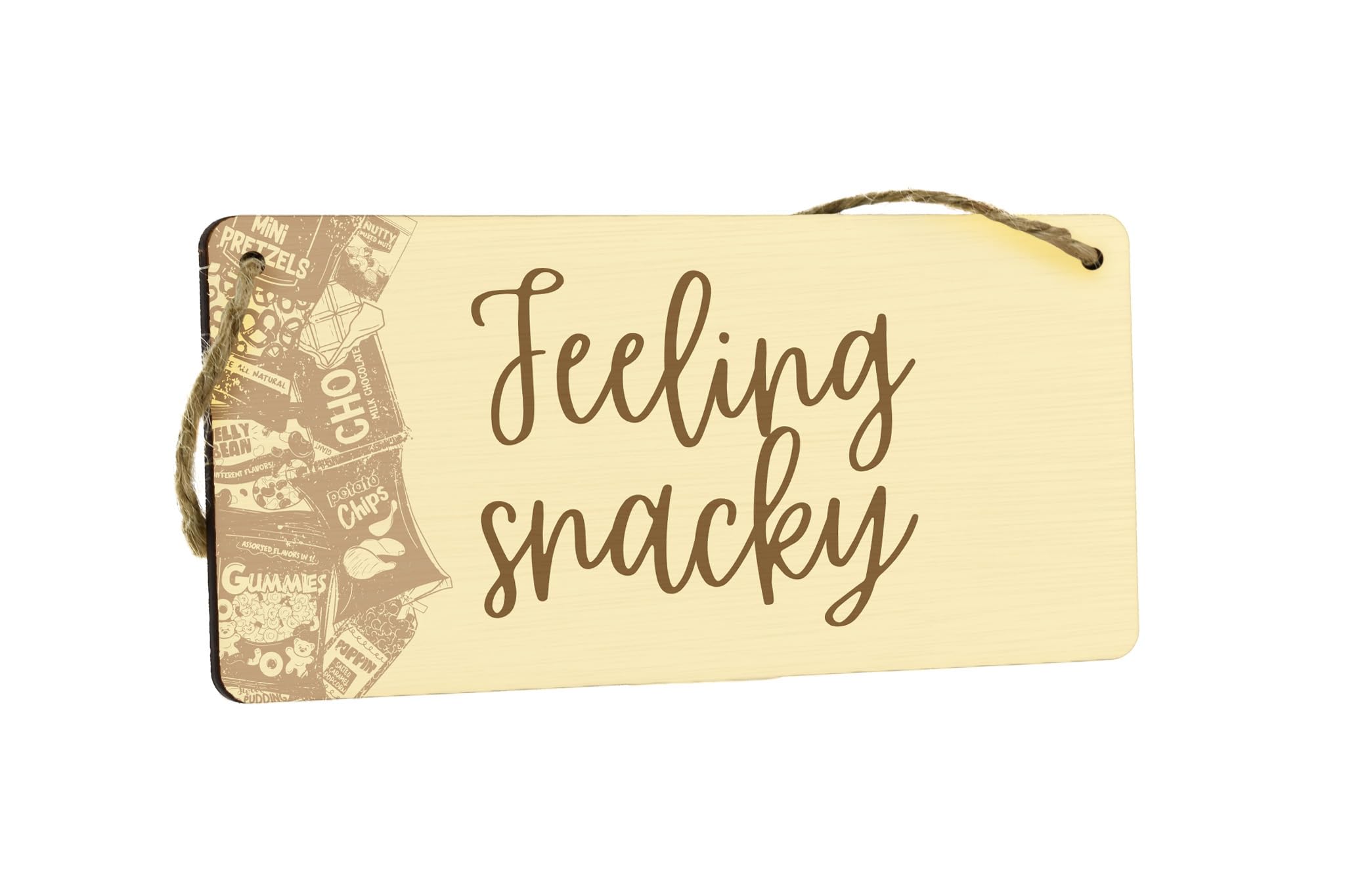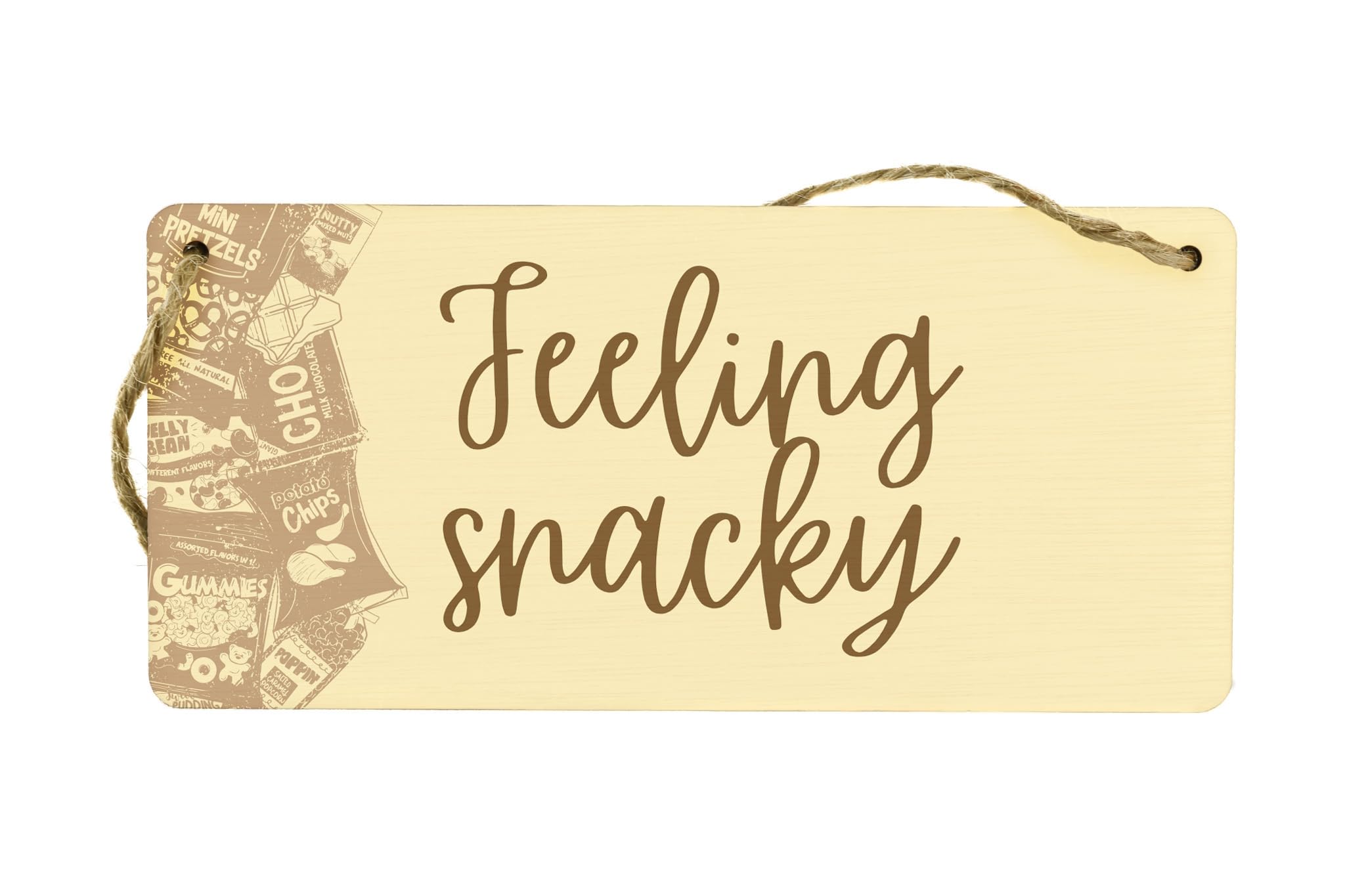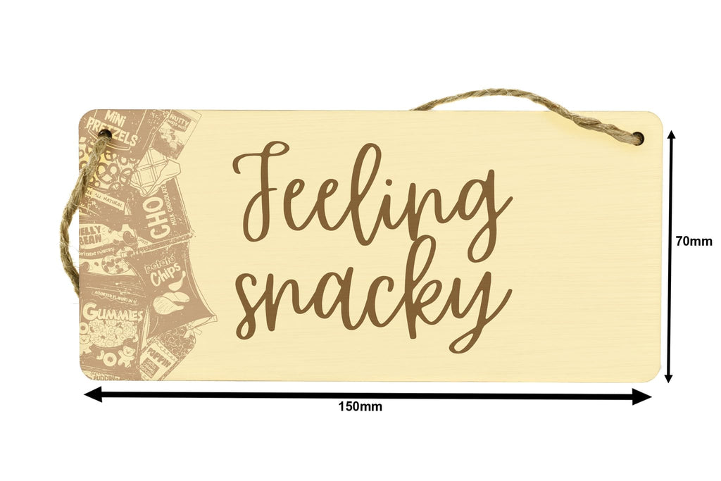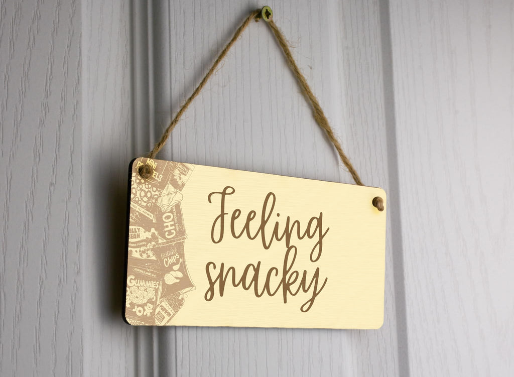 - High-quality plywood sign that reads 'feeling snacky'