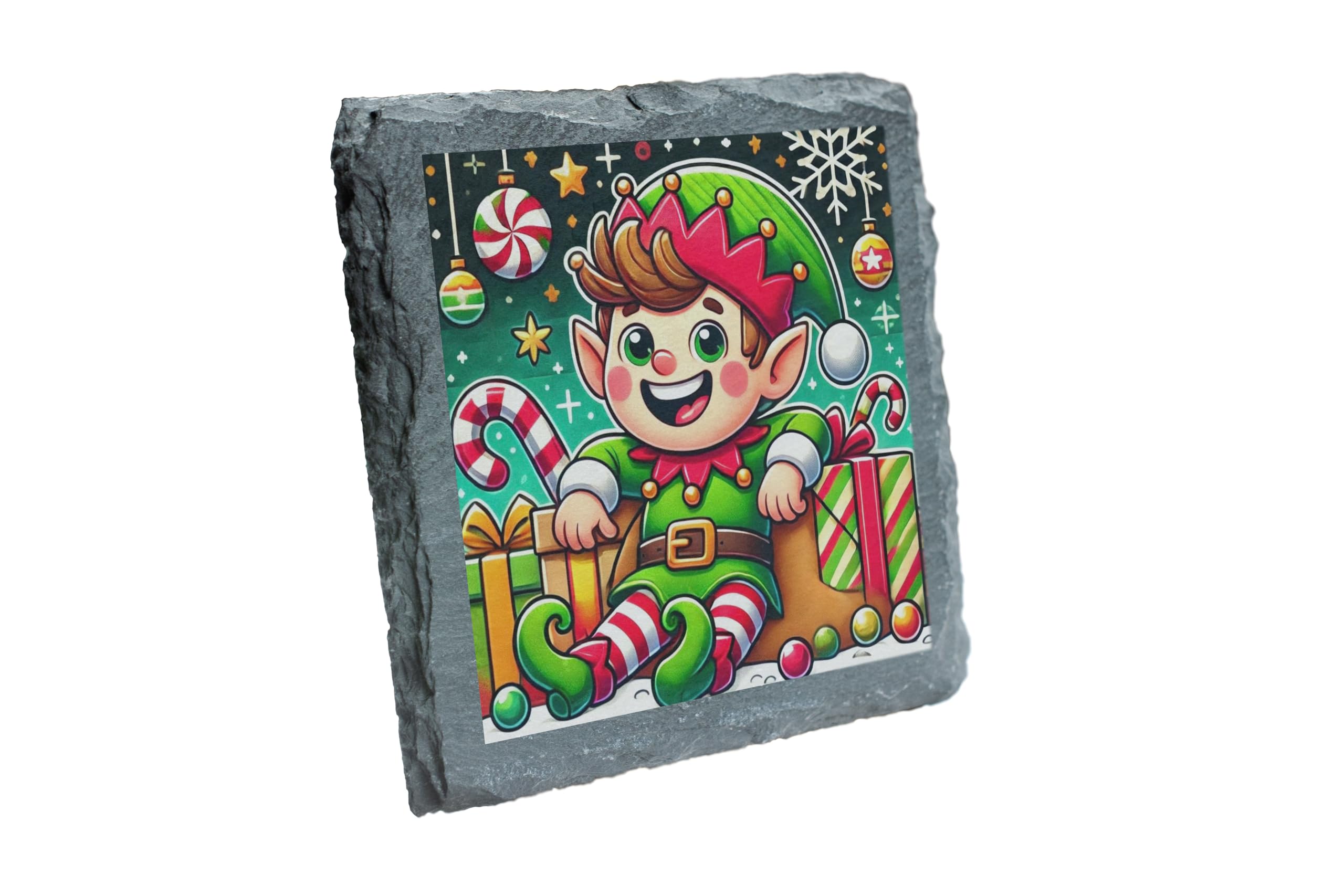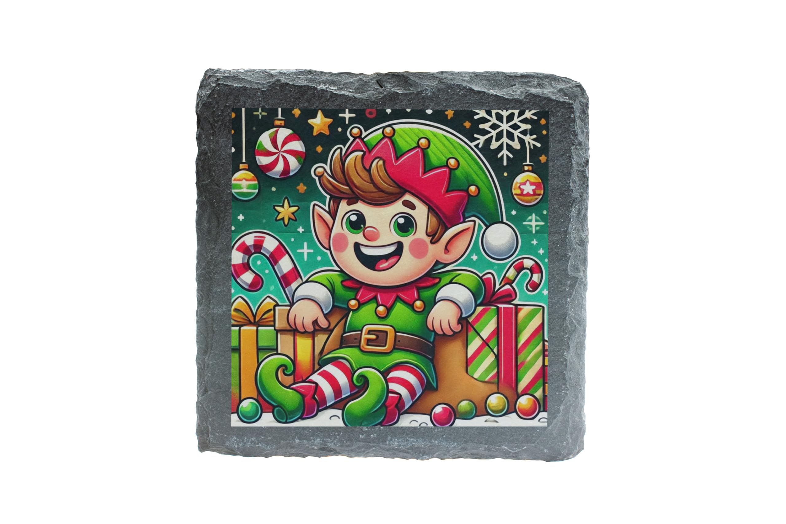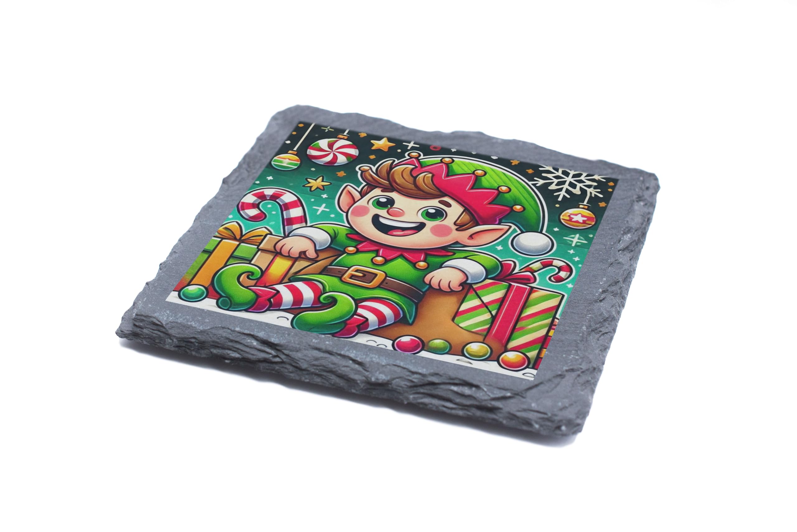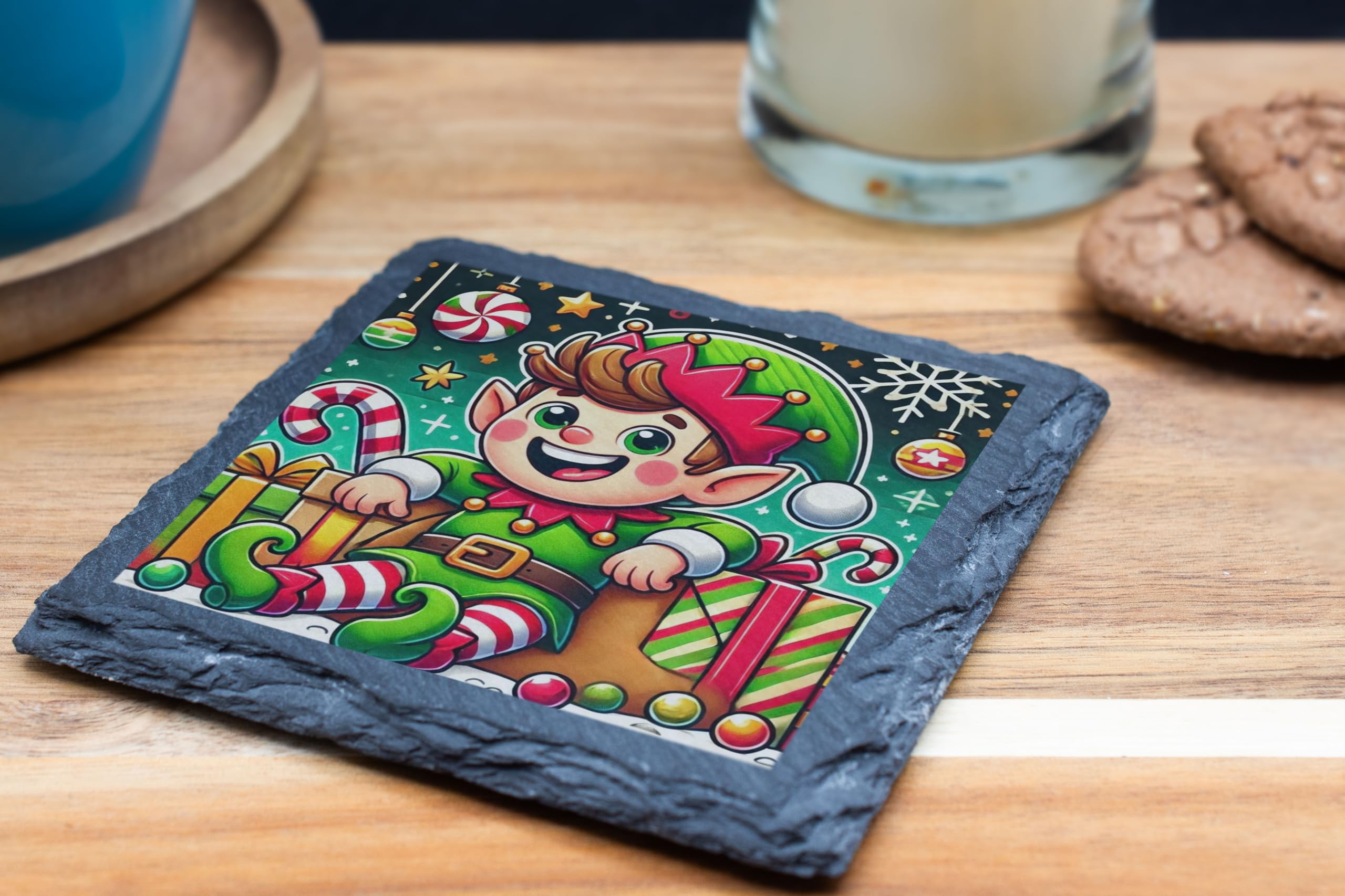 Add a splash of holiday cheer to your home with the festive "Chibi Elf" Slate Coaster! This charming coaster showcases a playful chibi-style elf, surrounded by candy canes, presents, and snowflakes?perfect for capturing the spirit of the season. Made from premium natural slate, this coaster is as functional as it is fun, protecting your surfaces from stains, heat, and scratches. Whether you're hosting a Christmas party or looking for the perfect stocking stuffer, this coaster is sure to delight. Make your holiday celebrations extra magical with this delightful drink accessory!