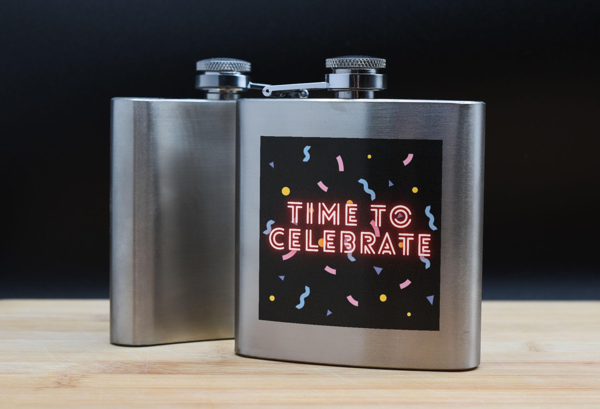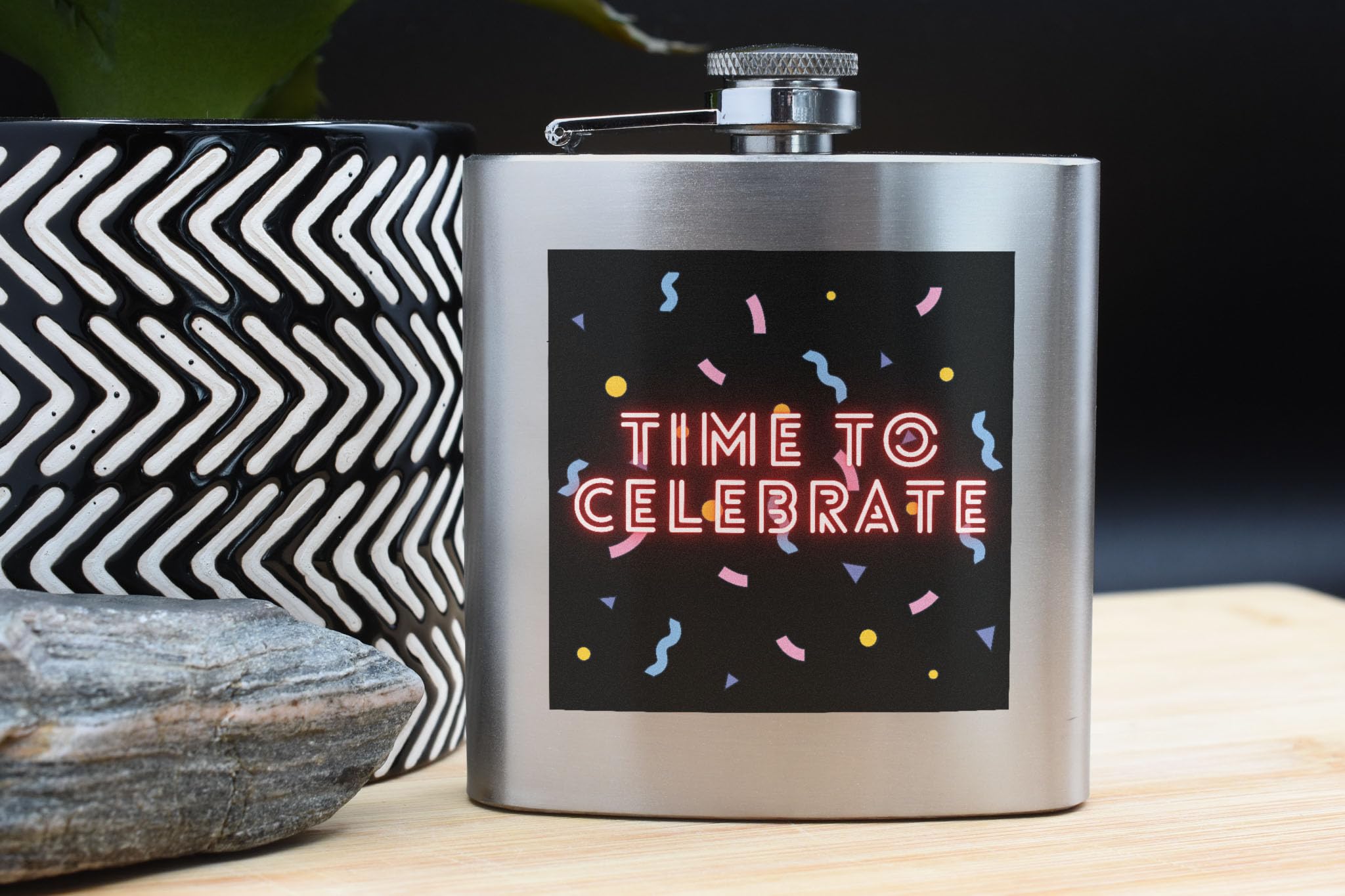 Get the party started with our Festive Confetti Celebration Flask! This vibrant and fun drinkware is the perfect accessory for any social gathering or special occasion. Made of quality stainless steel, this portable flask is durable and perfect for on-the-go celebrations. The UV printed design features a colourful confetti-inspired party design, complete with neon accents and the phrase 'Time to Celebrate' in bold letters. This cheerful and colourful flask is a fun gift idea for party lovers and event enthusiasts. Add a pop of colour to your festivities with our Festive Confetti Celebration Flask!