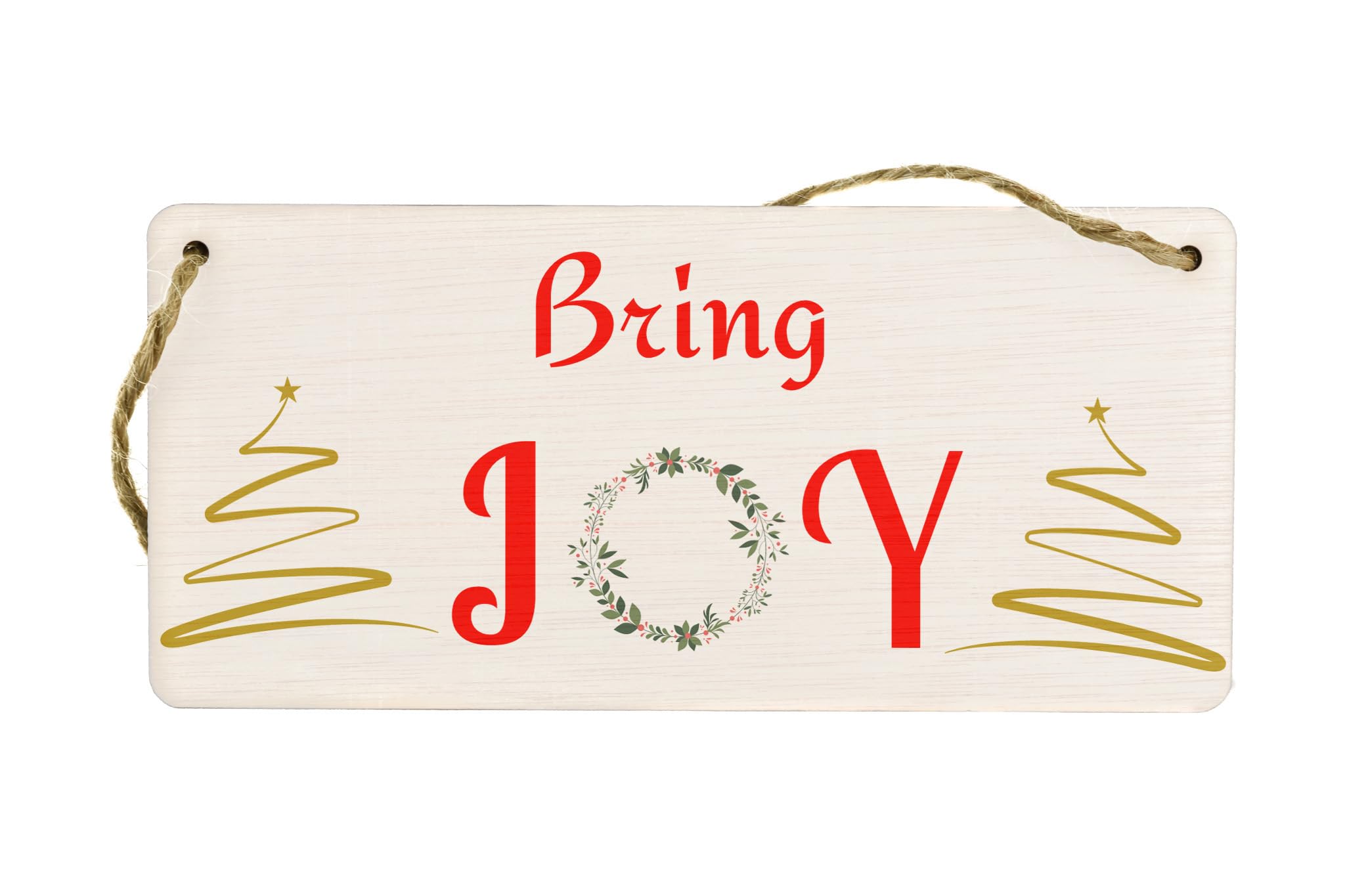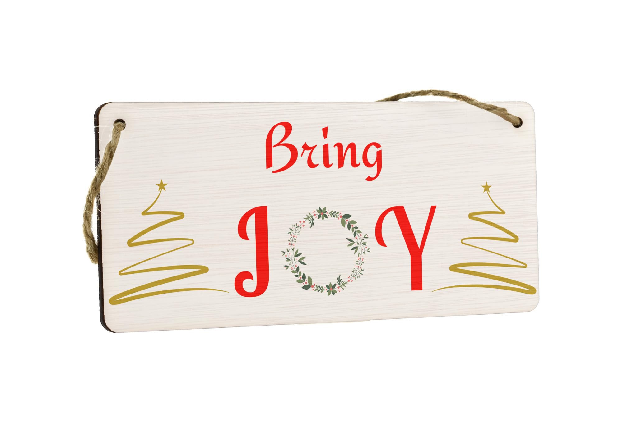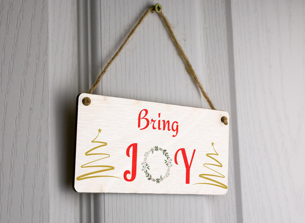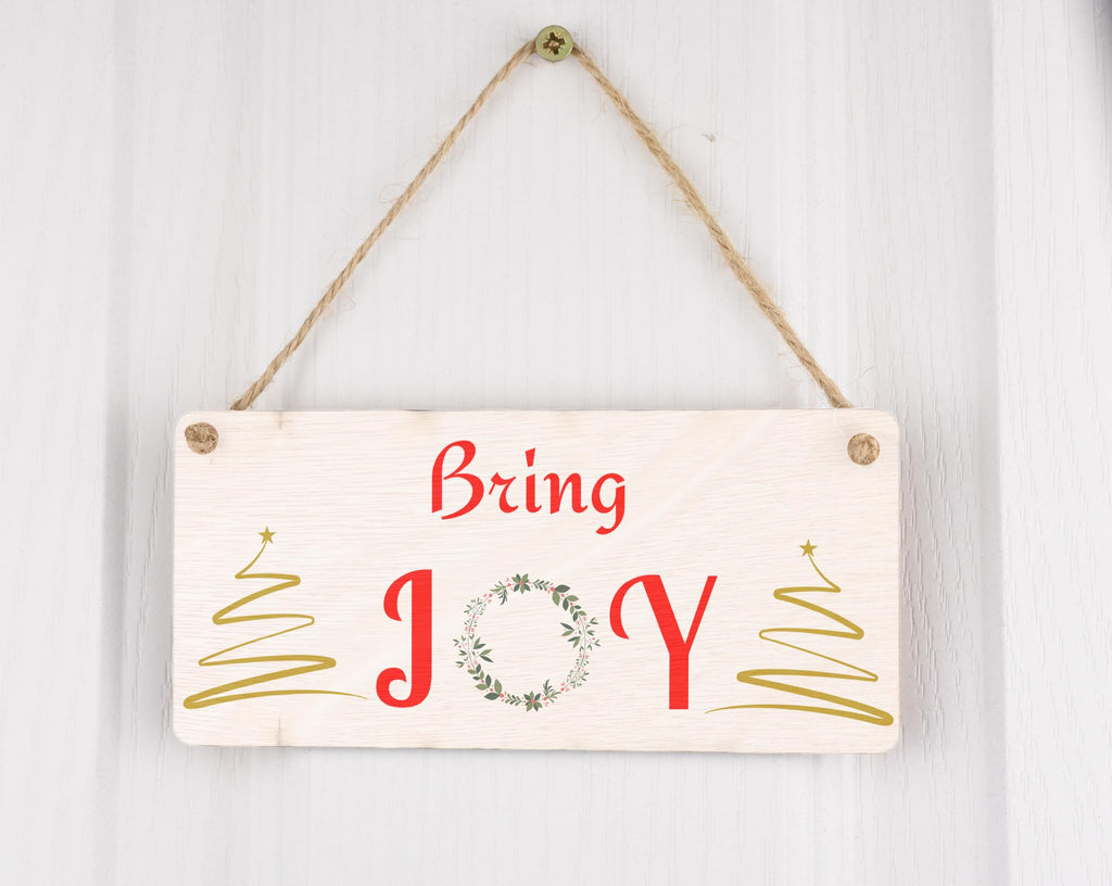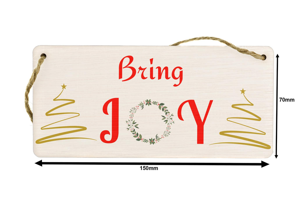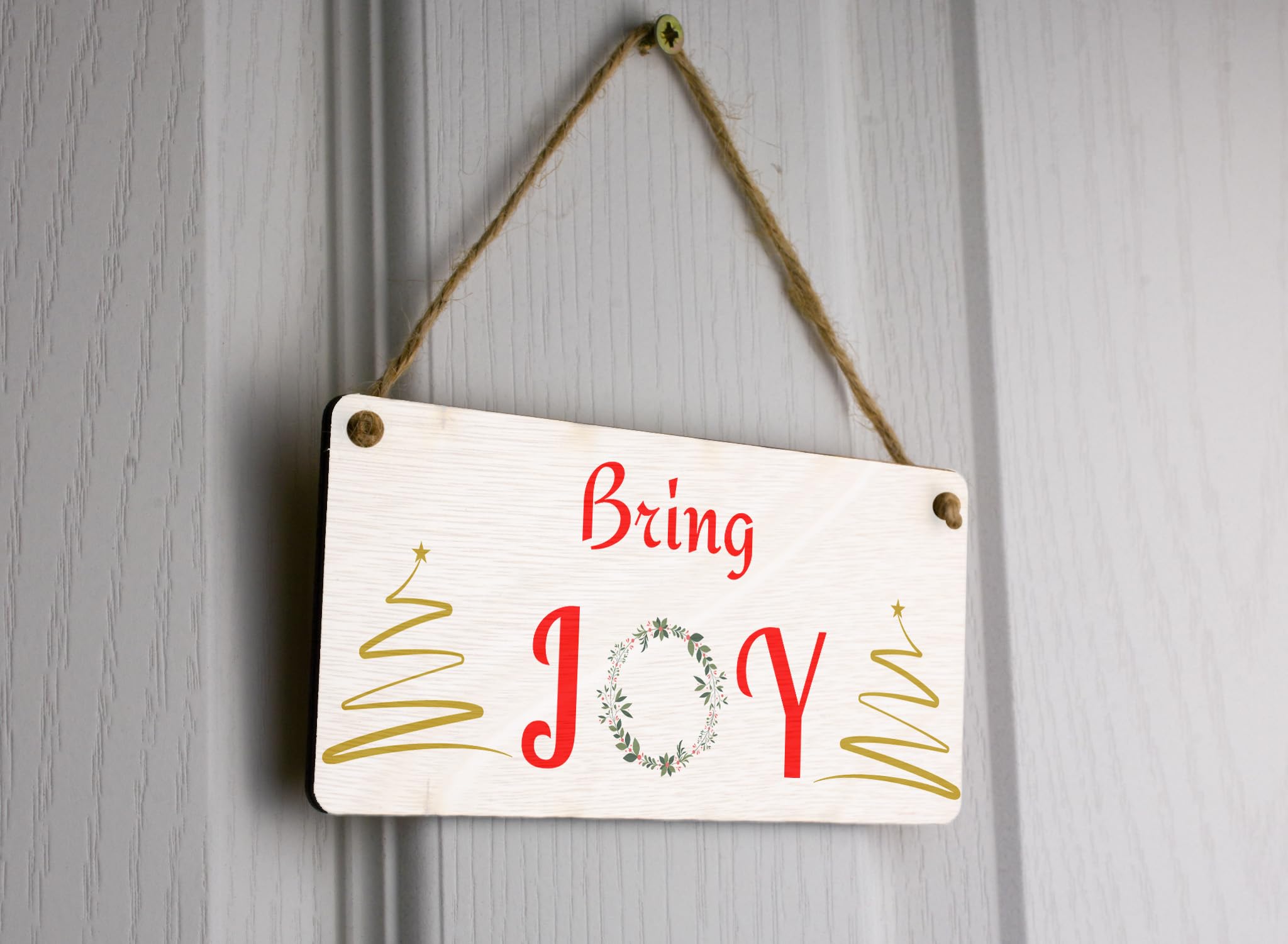Add a touch of festive cheer to your home with this stunning modern design Festive Hanging Sign. Made from quality plywood, this sign features the beautiful phrase 'Bring Joy' written in elegant lettering, perfect for celebrating Christmas. Its colourful and vibrant design will instantly brighten up any room and create a joyful atmosphere. Hang it on your front door or anywhere in your home to spread the holiday spirit. This Hanging Sign is the perfect addition to your Christmas decor, adding a touch of elegance and charm to your festive celebrations.