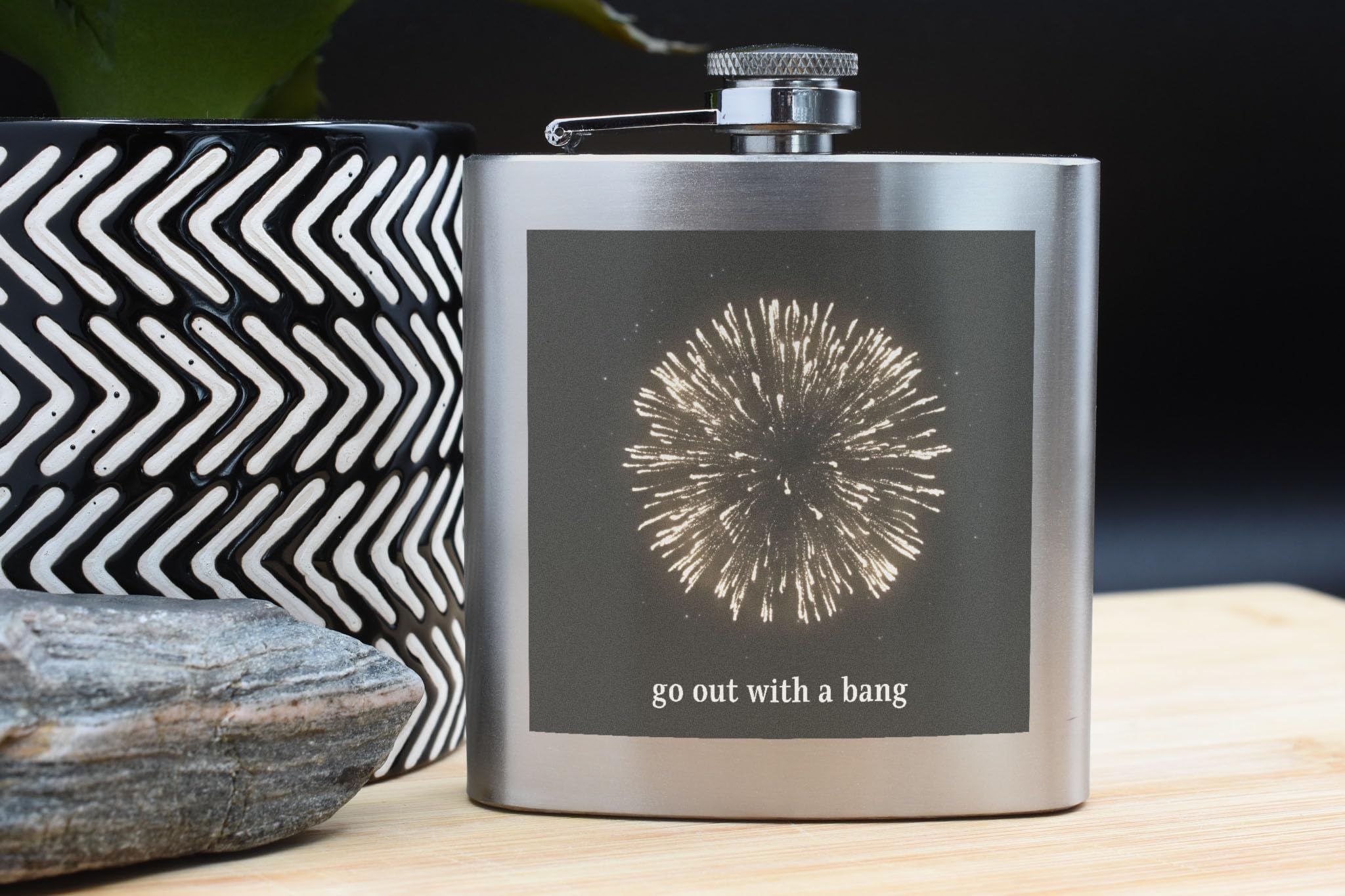 - Fireworks design flask perfect for New Year's Eve and other celebrations