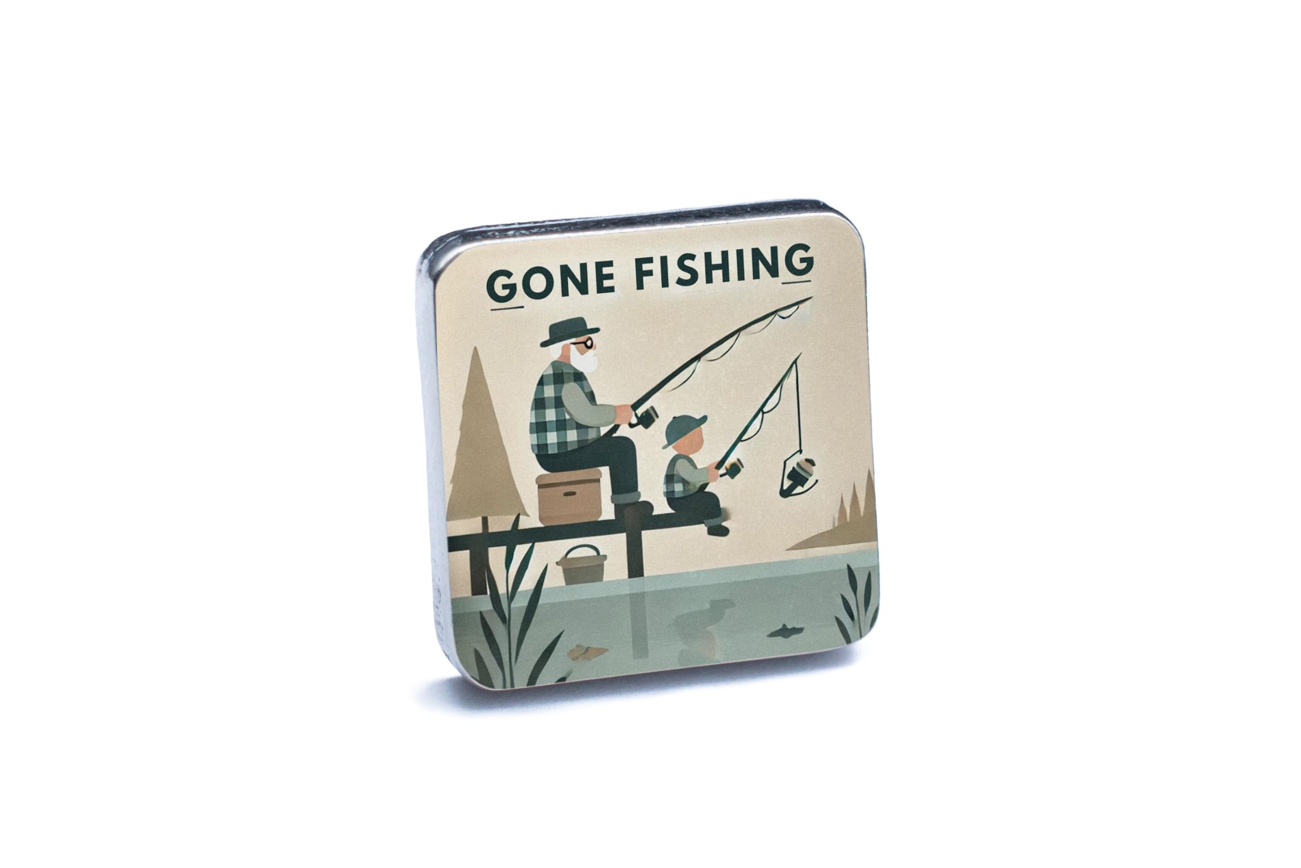 - Unique Fishing Design: Features a charming "Gone Fishing" illustration, perfect for fishermen and outdoorsmen.
