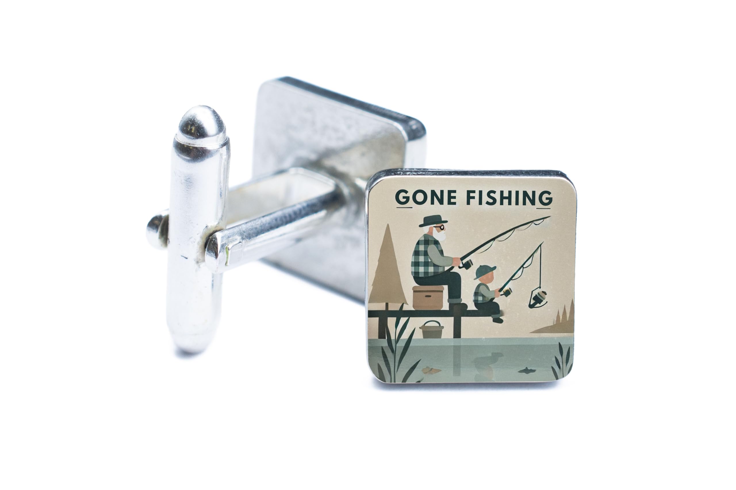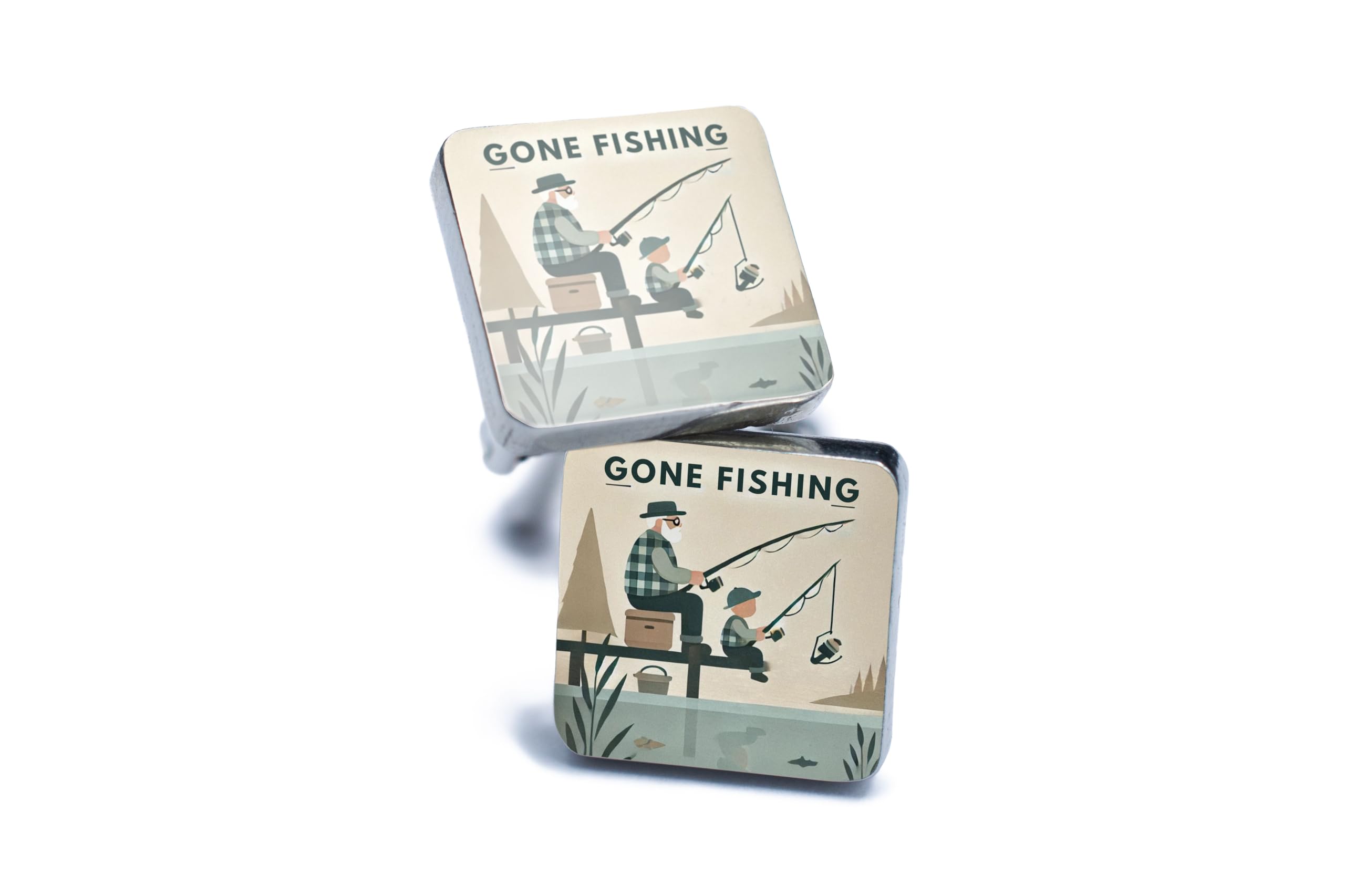 Add a touch of charm and personality to your outfit with these beautifully designed "Gone Fishing" cufflinks. Perfect for fishermen and outdoor enthusiasts, these cufflinks feature a nostalgic illustration of a fishing scene, making them an ideal accessory for casual or formal occasions. Crafted with high-quality metal and a polished finish, they are durable and stylish. Packaged in an elegant gift box, they make a thoughtful gift for Father's Day, birthdays, weddings, or any special occasion.