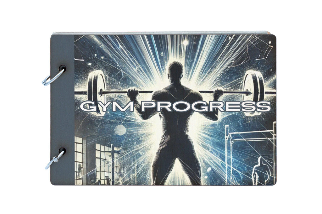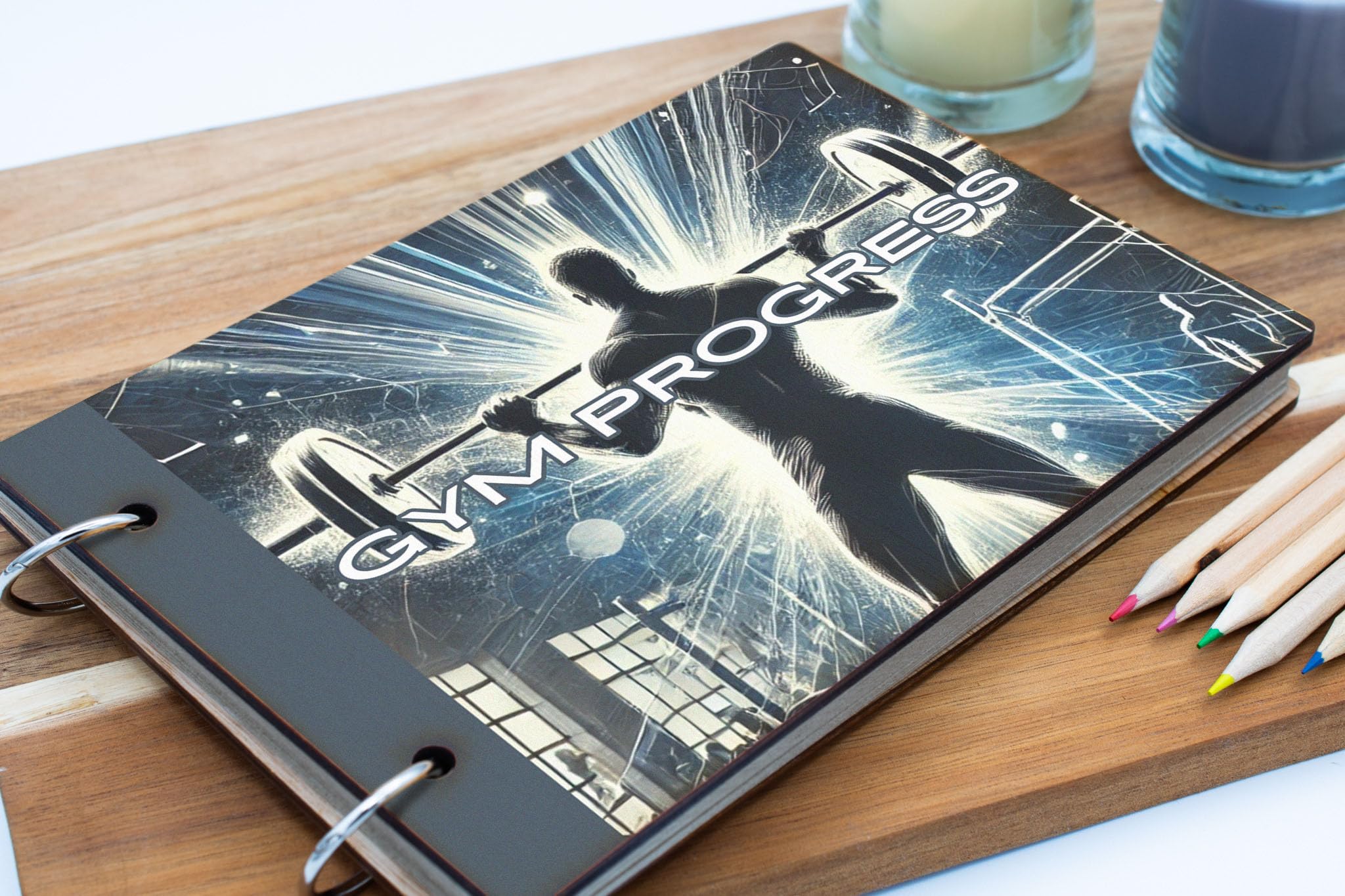 - Wooden cover with a full colour front depicting a man lifting weights, perfect for bodybuilding record and weightlifting routine