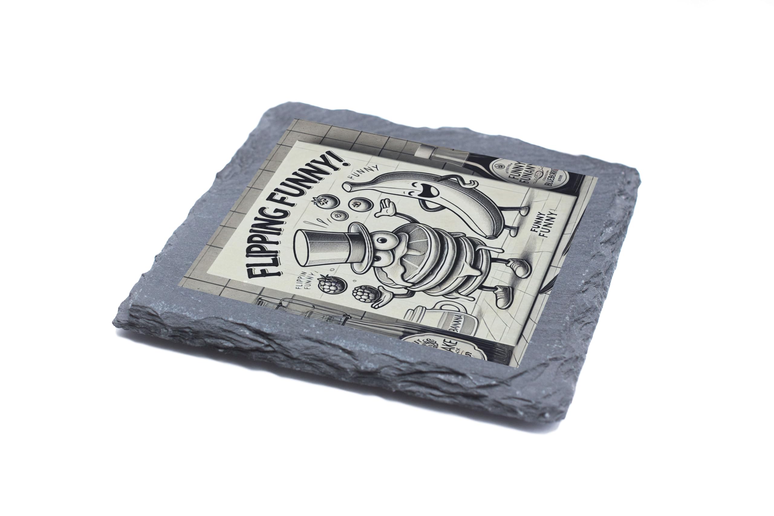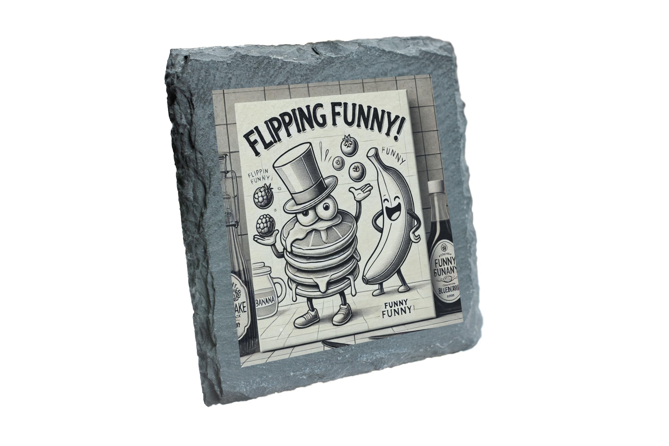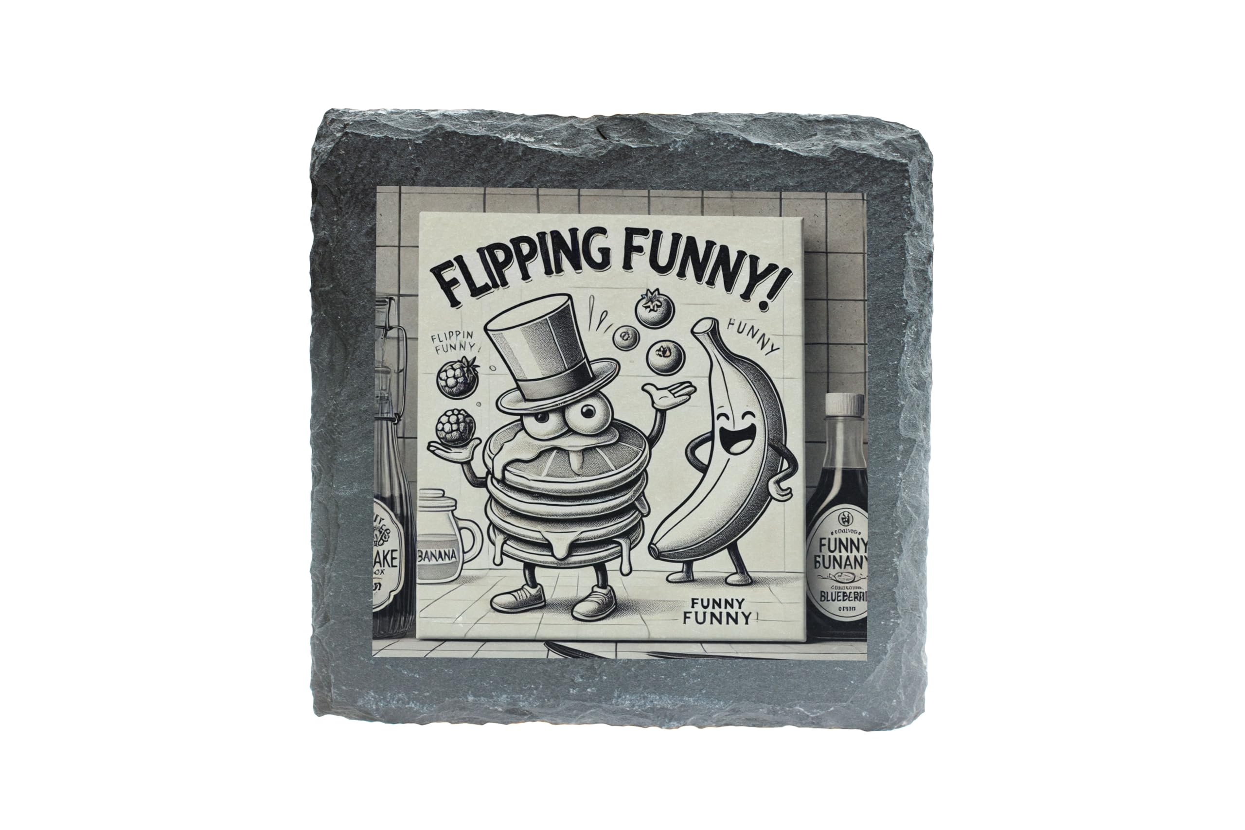Bring a stack of smiles to your home with the "Flipping Funny!" Pancake-Themed Slate Coaster. This hilarious and whimsical coaster features a playful cartoon of a pancake stack, complete with a top hat, surrounded by fun-loving berries and a cheerful banana. Perfect for breakfast lovers and humor enthusiasts, this coaster combines practicality with personality. Crafted from durable natural slate, it offers protection for your surfaces against heat and moisture while providing a non-slip grip for your beverages. Whether it?s a hot cup of coffee or a refreshing glass of juice, this coaster adds charm to every sip. Looking for a unique gift? The "Flipping Funny!" Pancake-Themed Slate Coaster is a delightful choice for foodies, kitchen enthusiasts, or anyone who enjoys a good laugh. Add this quirky piece to your kitchen d?cor or surprise a loved one with a touch of humor. Order yours today and let the fun flip into your space!