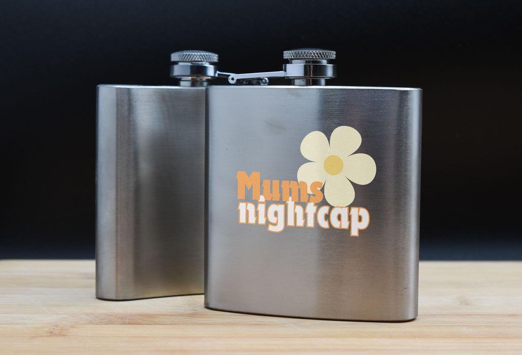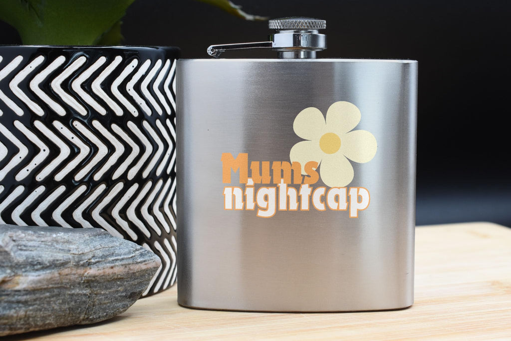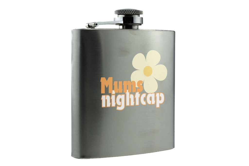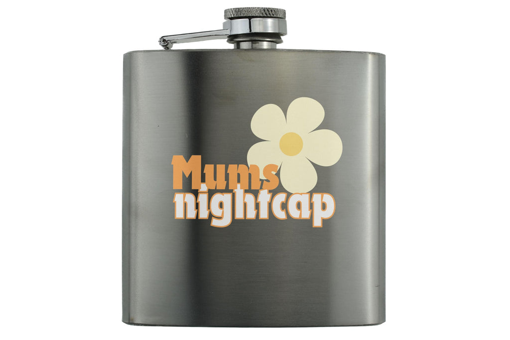 • Retro style flask with UV printed 'mum's nightcap' design - quirky mum accessory