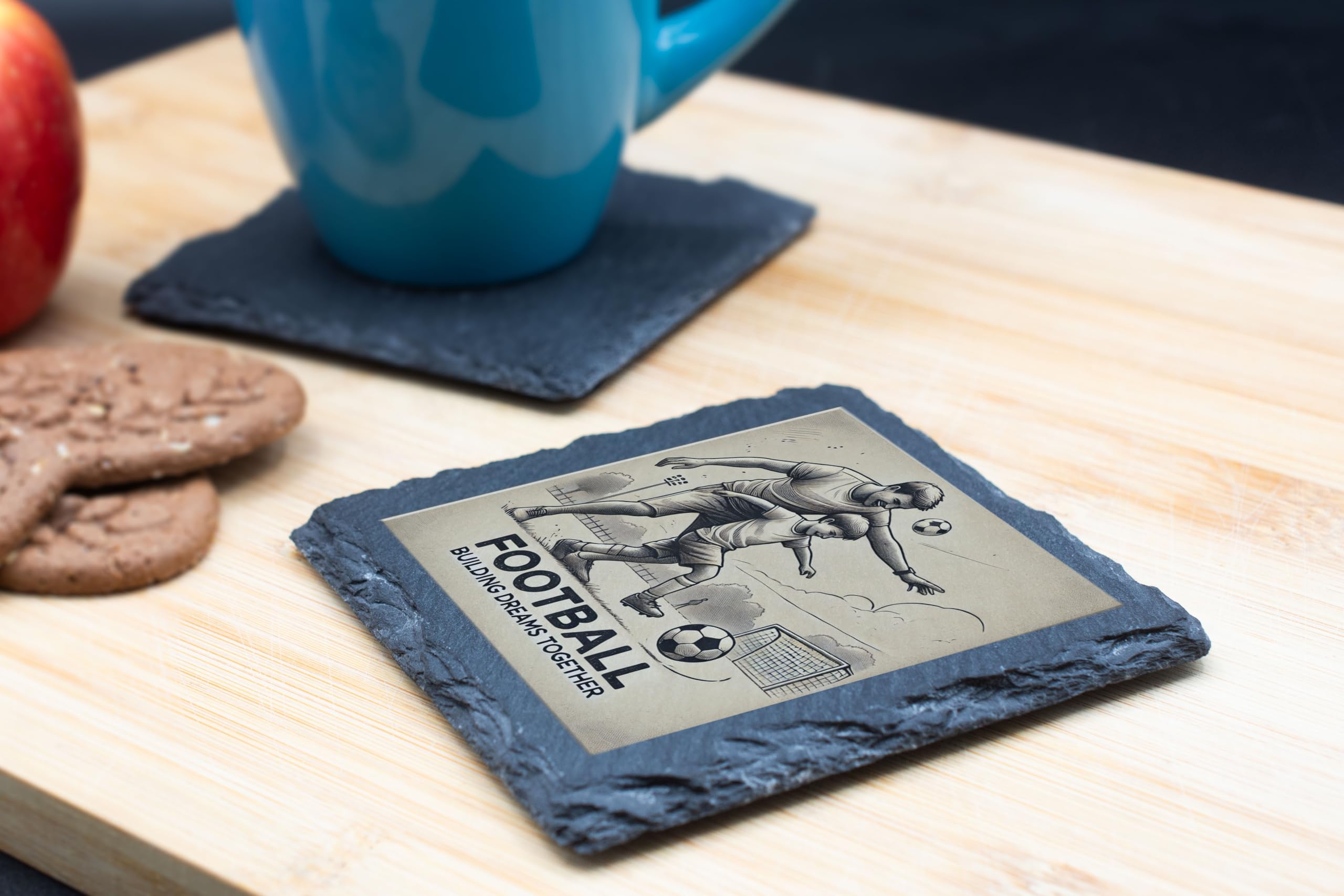 Football ? Building Dreams Together Slate Coaster for Dads & Sports Enthusiasts (slco-kf25-footballdad&sondb)