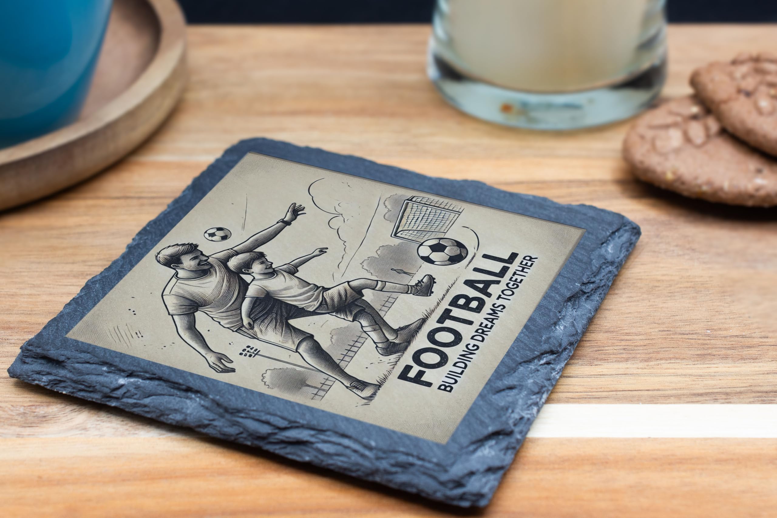 Celebrate the beauty of shared dreams and family moments with the "Football ? Building Dreams Together" Slate Coaster. Featuring a touching illustration of a father and son enjoying a game of soccer, this coaster captures the bond formed through sports and the memories built on the field. Crafted from durable natural slate, this coaster is designed to protect your surfaces from heat and moisture while adding a stylish touch to your space. Its non-slip surface ensures drinks stay in place, making it perfect for both hot and cold beverages. Looking for the perfect gift for a soccer-loving dad or a family-oriented sports fan? This coaster is a meaningful and practical choice for Father?s Day, birthdays, or any special occasion. Add it to your living room, man cave, or office and showcase the love of football and family. Order the "Football ? Building Dreams Together" Slate Coaster today and inspire connection through the love of the game.
