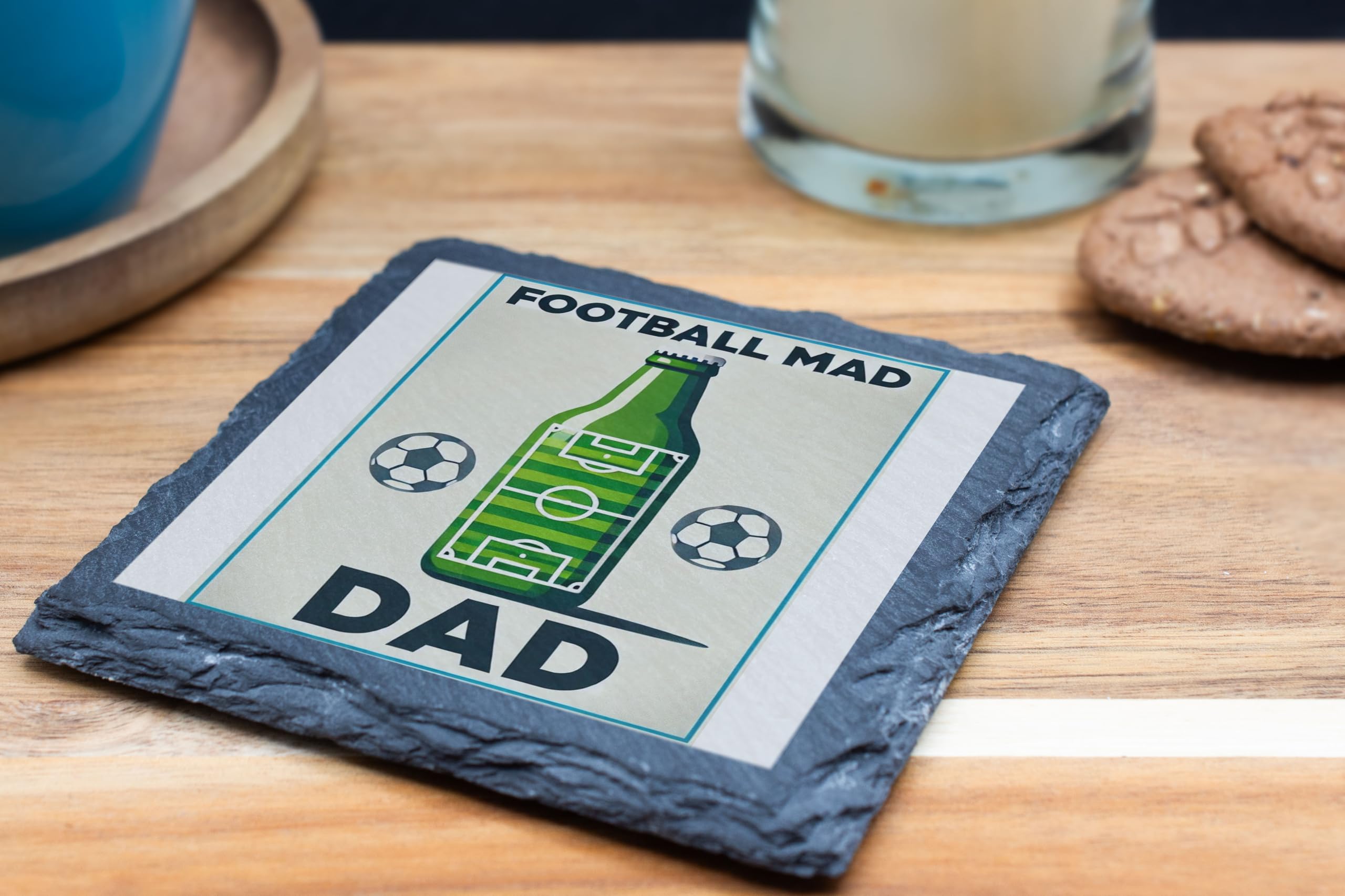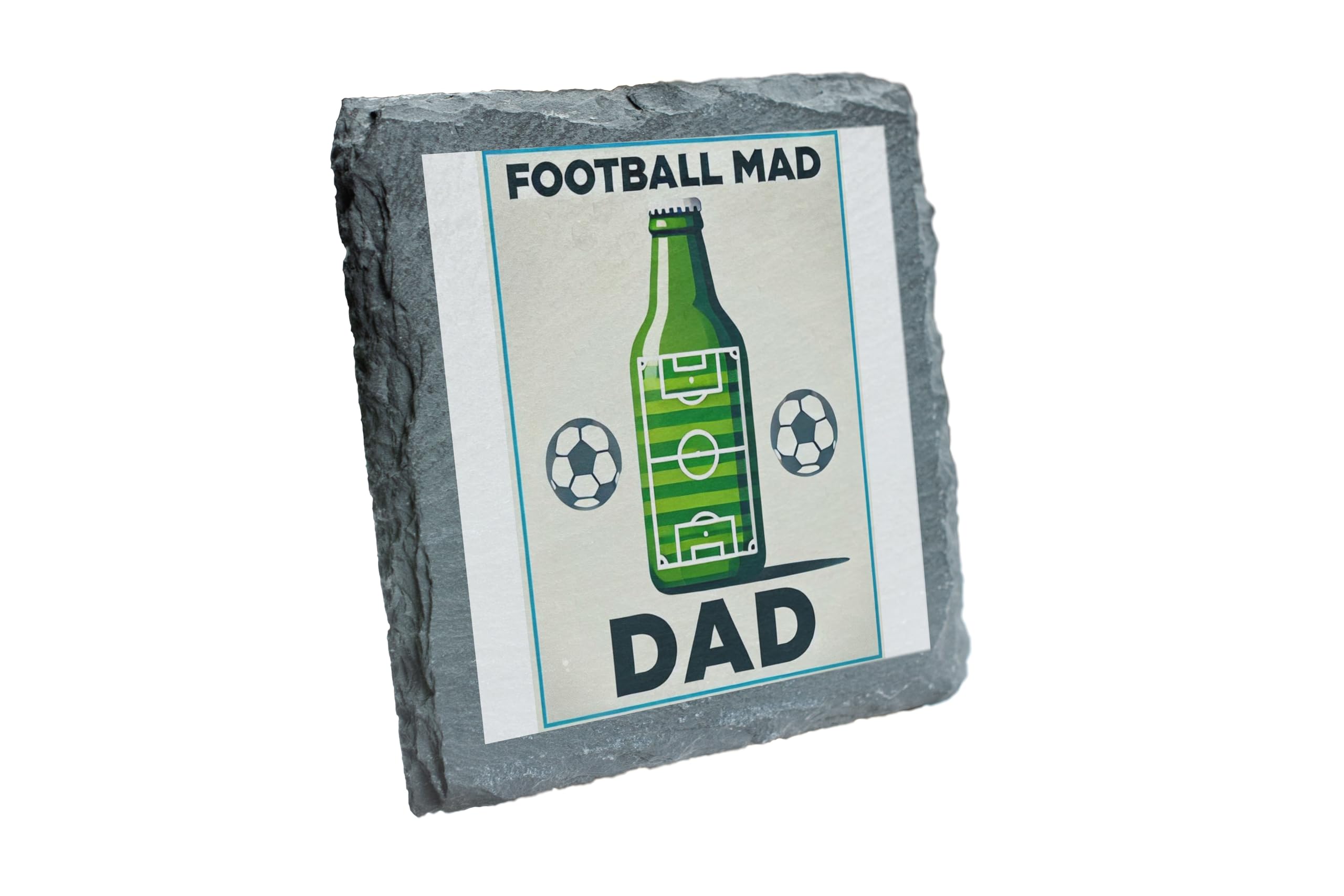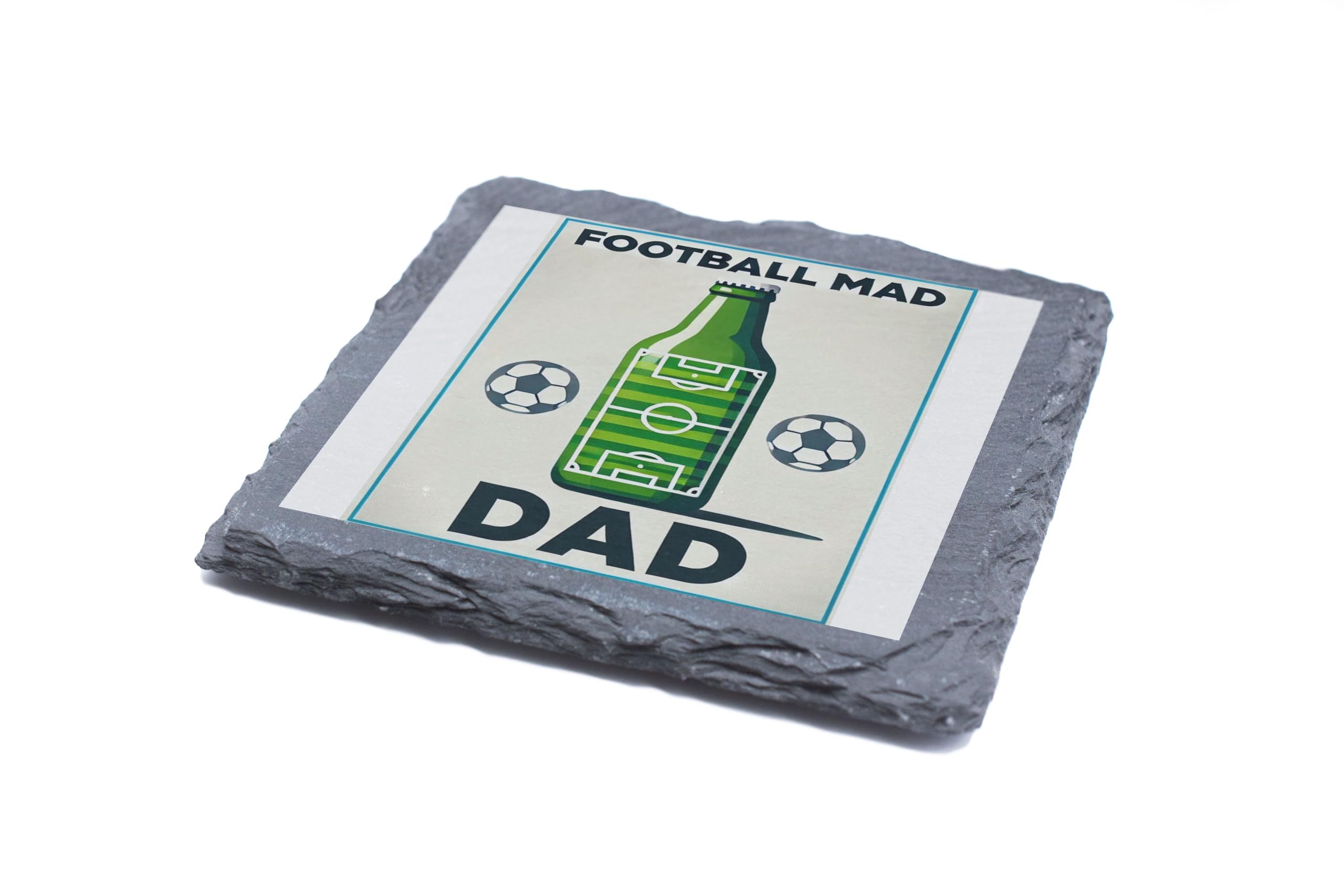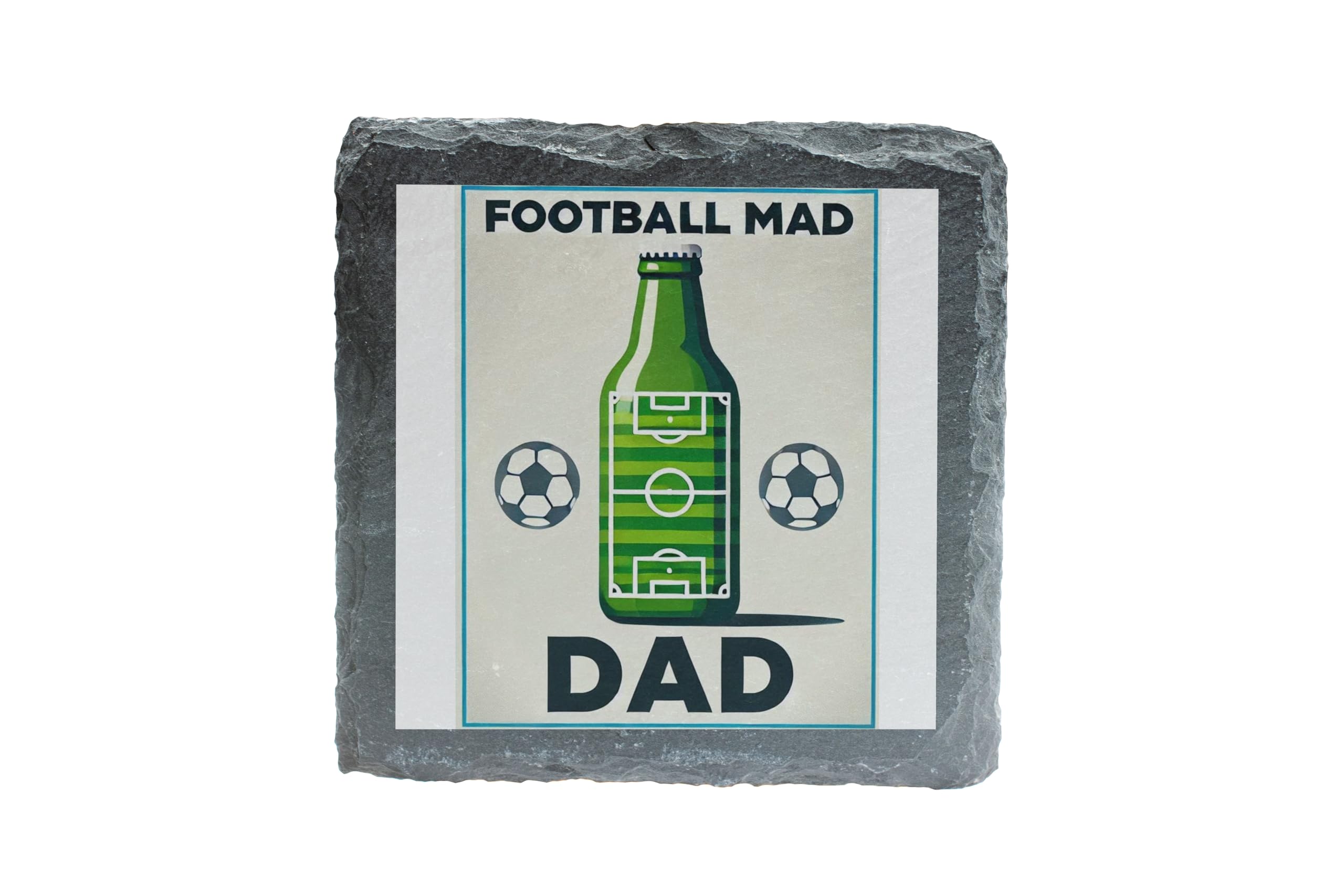 Celebrate your football-loving dad with this premium slate coaster, designed especially for soccer enthusiasts. The "Football Mad Dad" design features a creative and sporty illustration, making it the perfect gift for any proud football fanatic. Crafted from high-quality natural slate, this coaster combines durability and charm, protecting surfaces from drink spills and heat while serving as a fun decor piece. The rustic edges and smooth finish add a touch of sophistication, making it ideal for any setting?be it a home, office, or man cave. Whether for Father?s Day, birthdays, or simply to show appreciation, this coaster is a thoughtful and practical gift. Easy to clean and long-lasting, it?s the perfect blend of style and functionality for the football-obsessed dad. Make your dad?s day with this one-of-a-kind coaster!